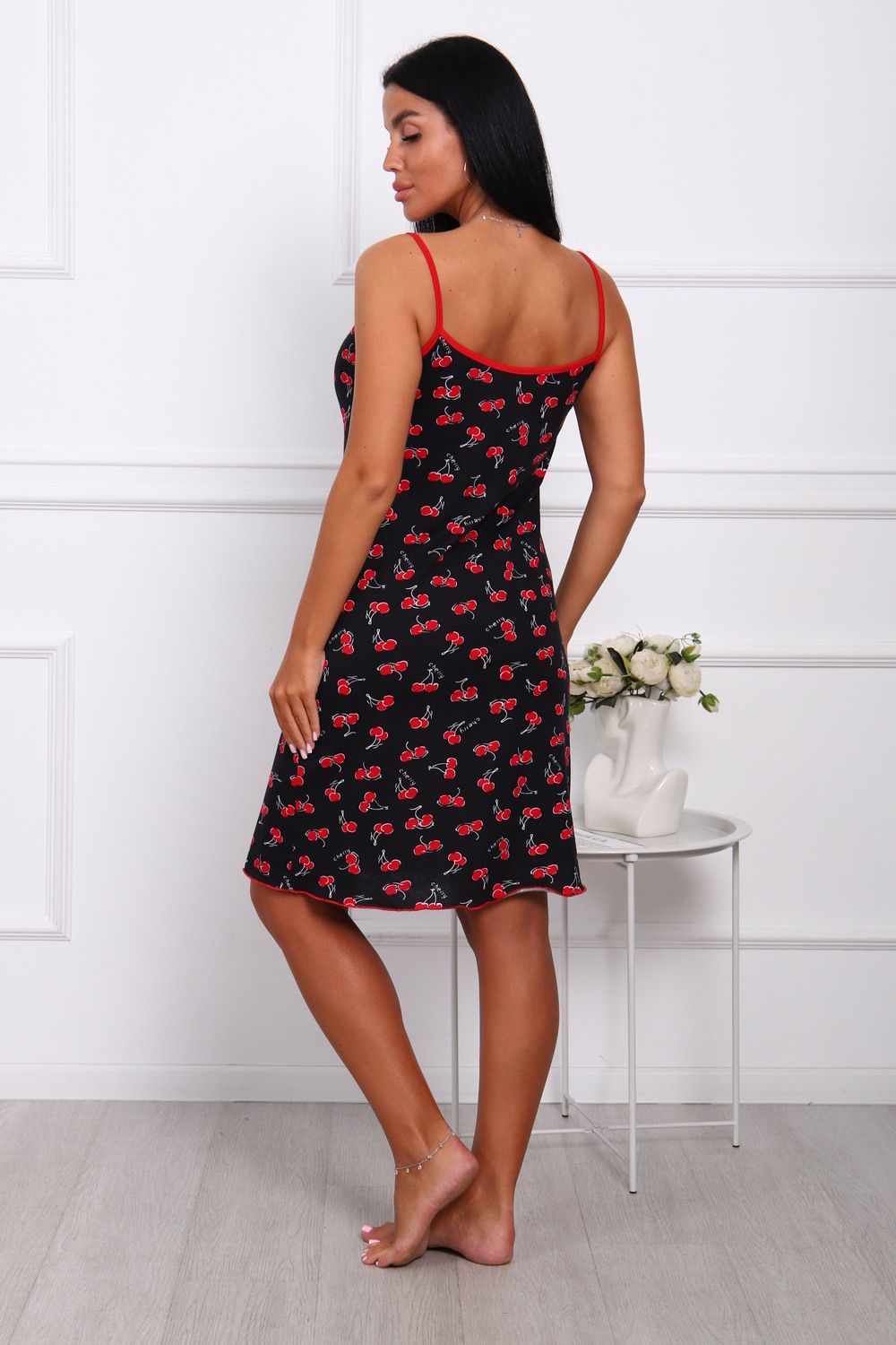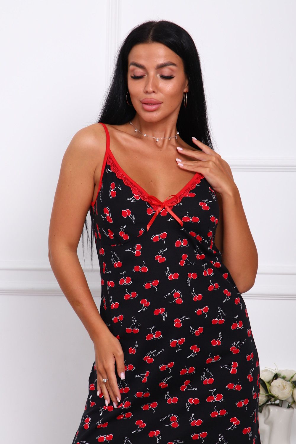 Ночная сорочка женская выполнена из набивного трикотажного полотна кулирка. Сорочка на бретельках, полуприлигающего силуэта.