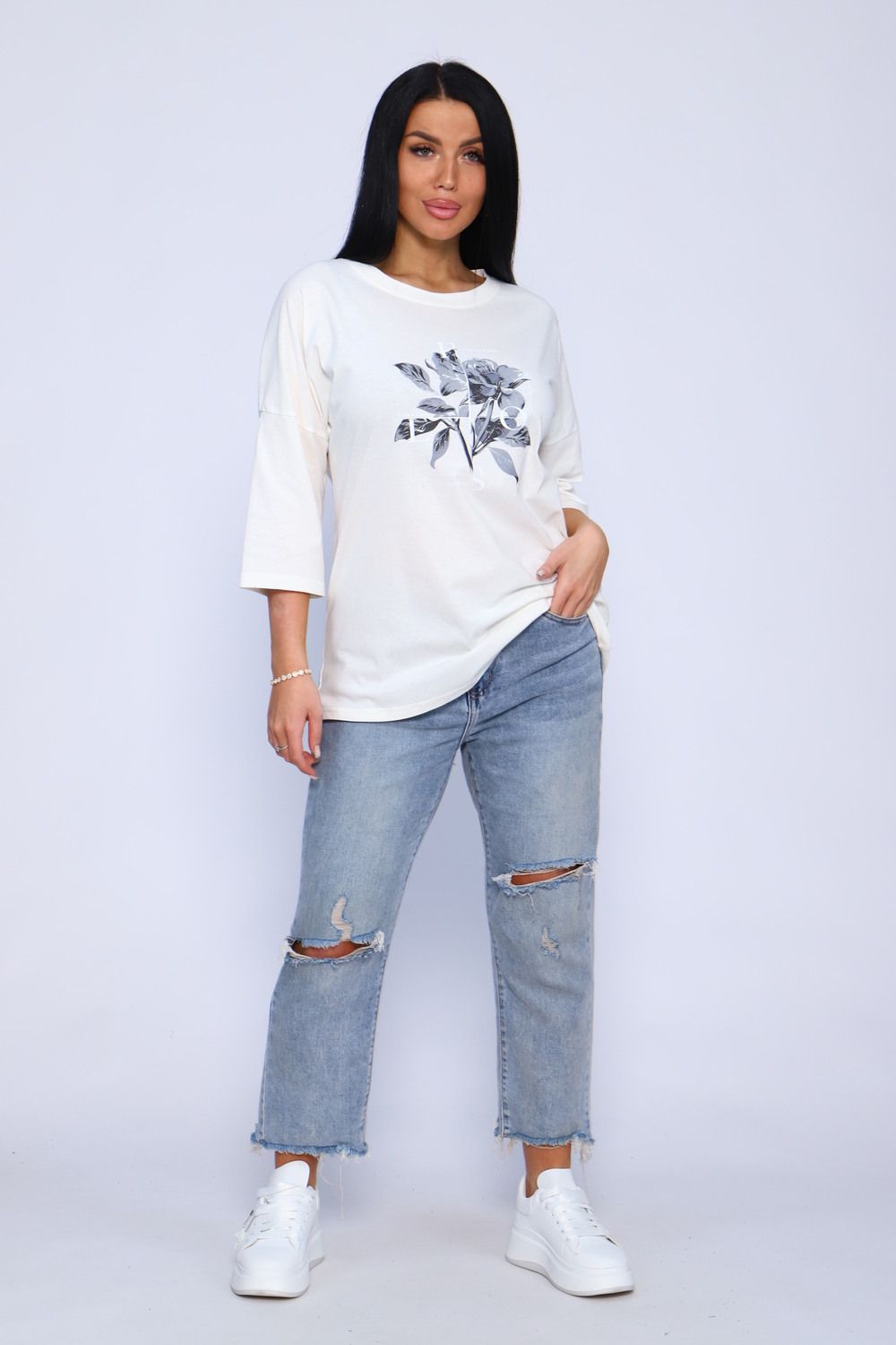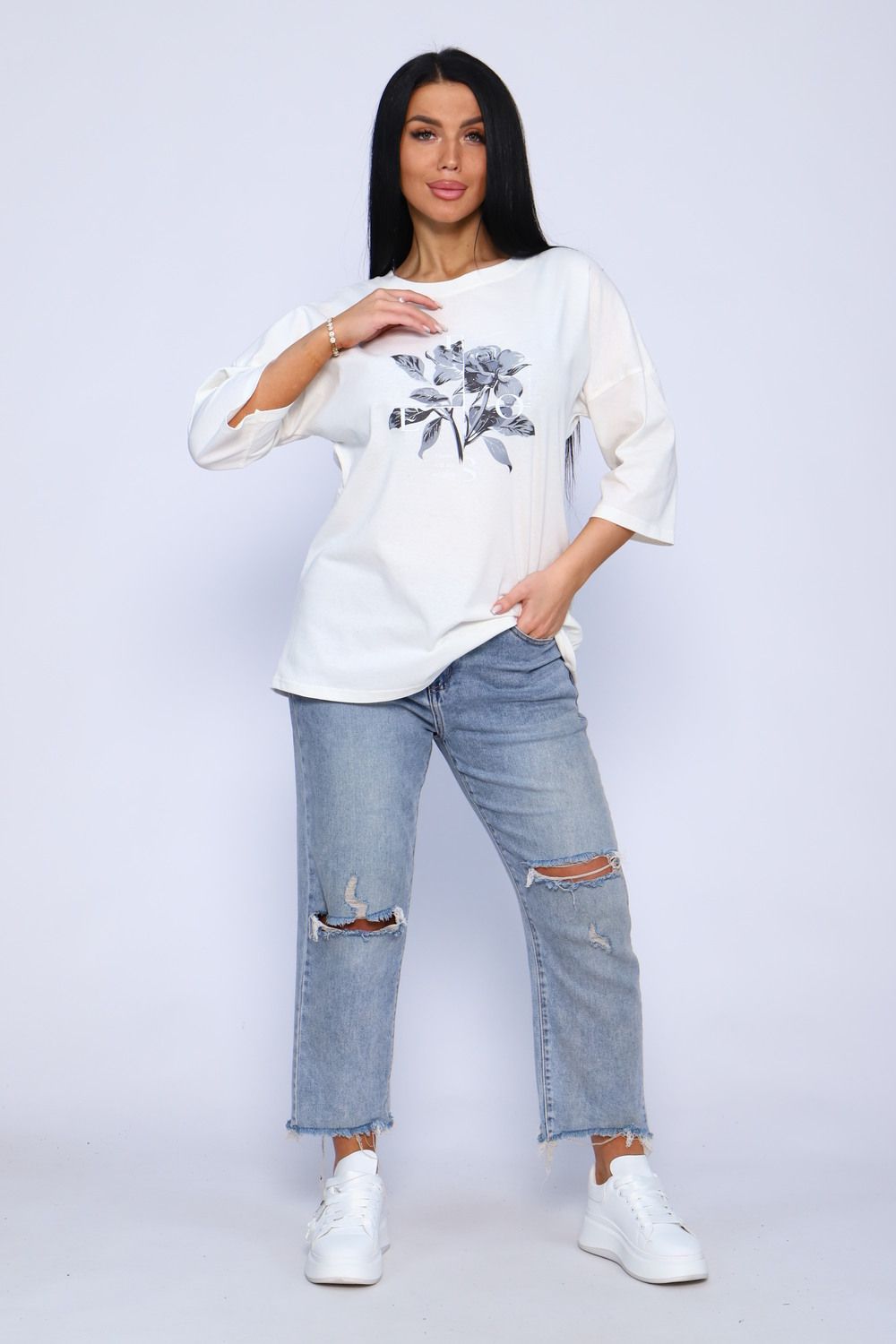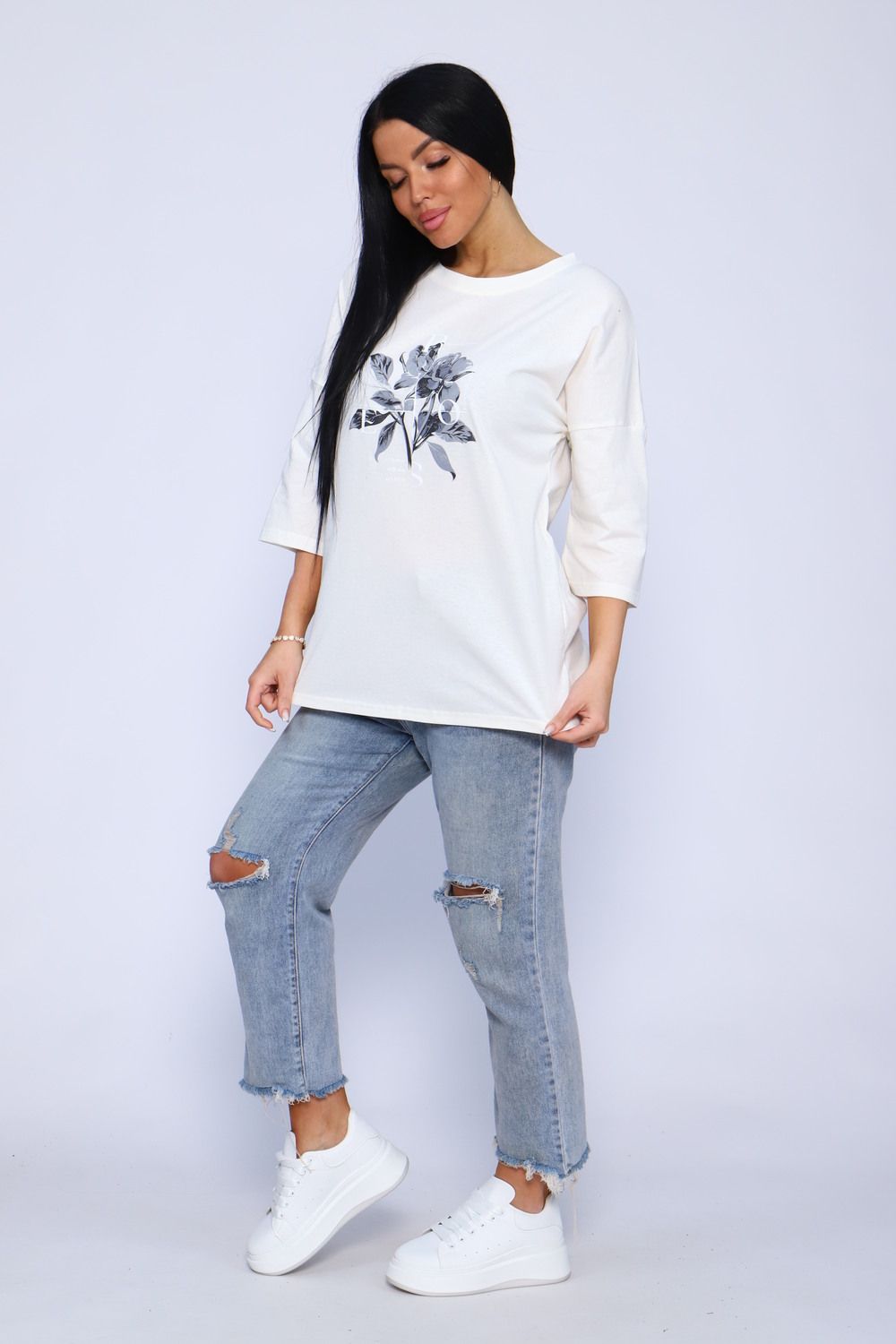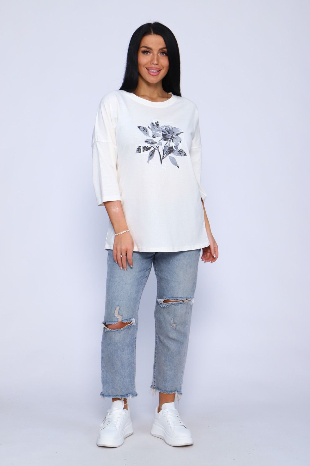 Туника женская удлиненная, повседневная с принтом от хозяева brand идеально подойдет для повседневной носки. Рукав 3/4 имеет свободный крой, поэтому туника обеспечит Вам комфорт в течение всего дня. Широкая размерная сетка - чтобы каждая смогла подобрать для себя лучшее!