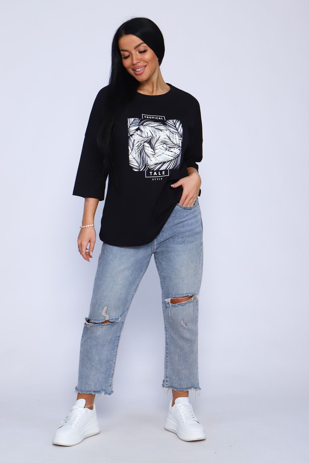 Туника женская удлиненная, повседневная с принтом от хозяева brand идеально подойдет для повседневной носки. Рукав 3/4 имеет свободный крой, поэтому туника обеспечит Вам комфорт в течение всего дня. Широкая размерная сетка - чтобы каждая смогла подобрать для себя лучшее!