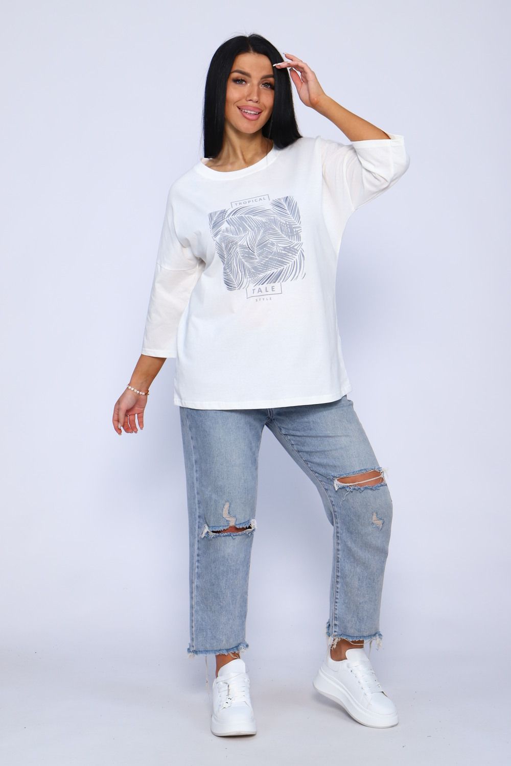 Туника женская удлиненная, повседневная с принтом от хозяева brand идеально подойдет для повседневной носки. Рукав 3/4 имеет свободный крой, поэтому туника обеспечит Вам комфорт в течение всего дня. Широкая размерная сетка - чтобы каждая смогла подобрать для себя лучшее!