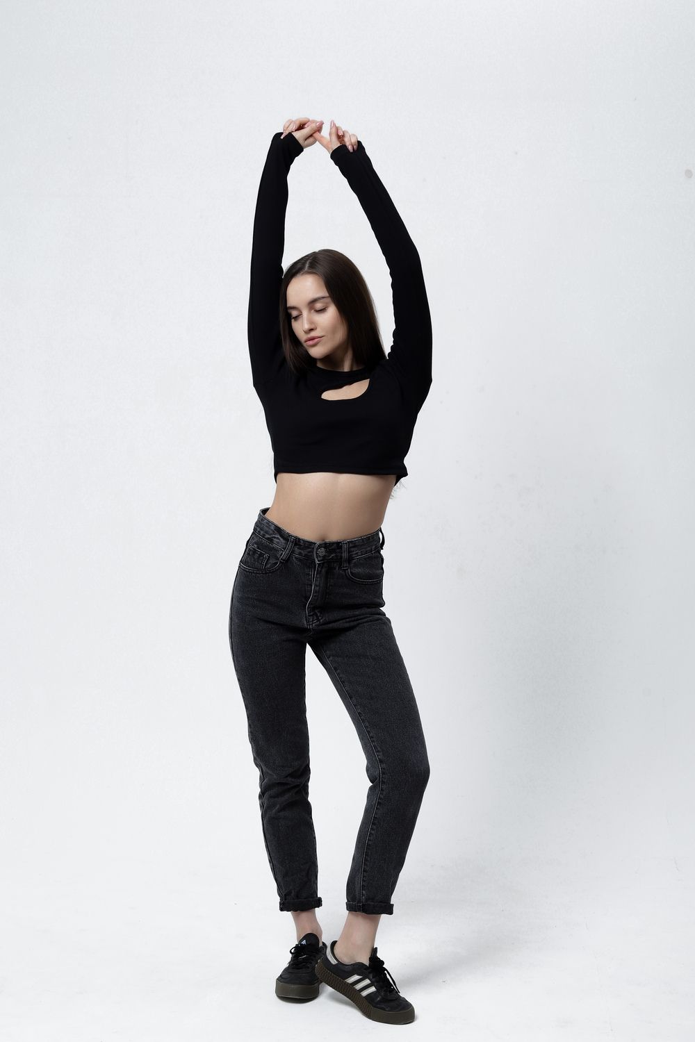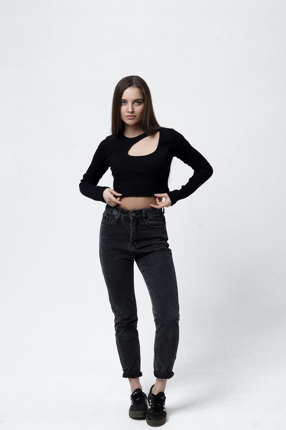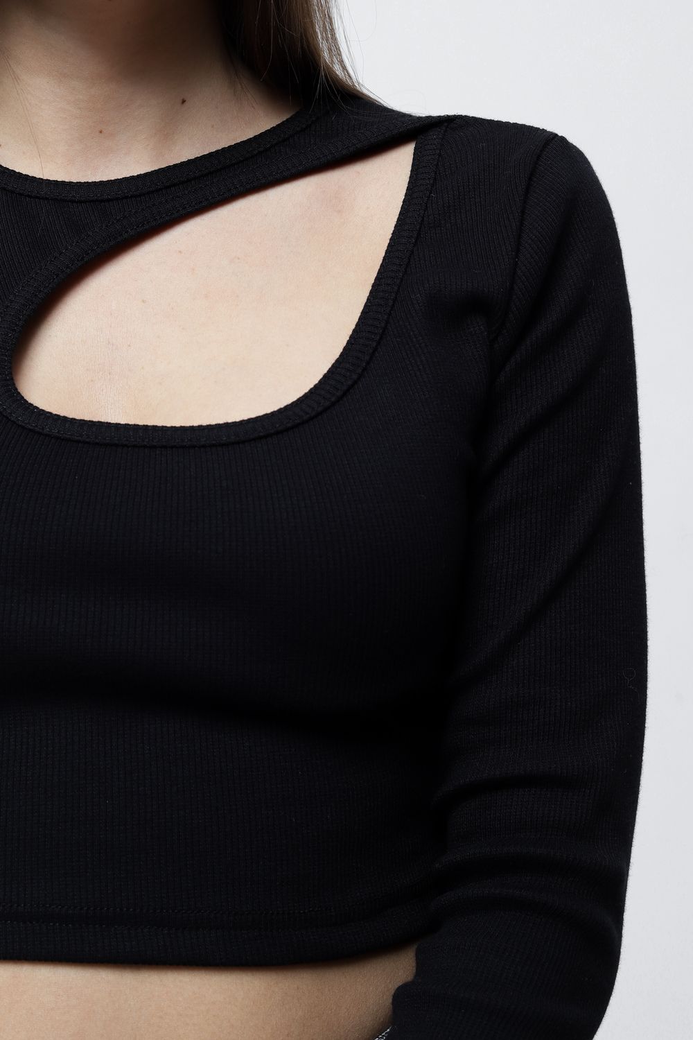 Представляем Вам обтягивающий лонгслив с вырезом на груди и длинными рукавами. ВНИМАНИЕ: Вам может прийти изделие с вырезом как справа, так и слева, мы не можем на это повлиять!