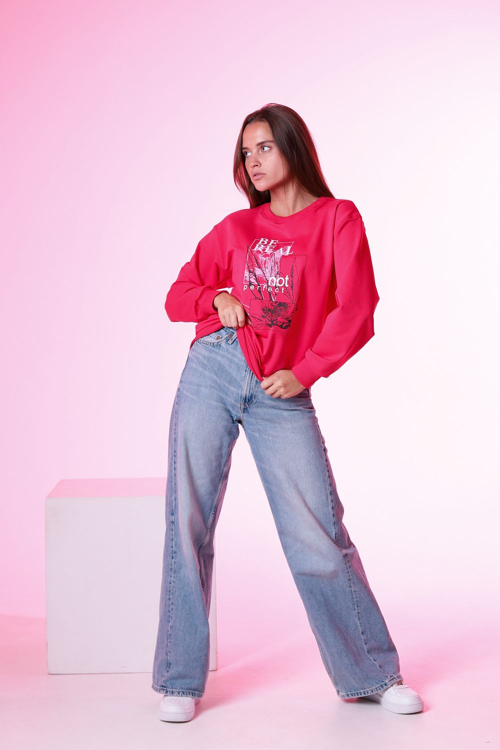 Свитшот оверсайз – это не только модный выбор, но и практичное решение для тех, кто ценит комфорт. Данная модель выполнена из качественного футера 2х нитки, это легкий и приятный на ощупь материал. Свитшот отлично комбинируется с различными элементами гардероба, будь то джинсы, юбки или спортивные брюки. В пошиве использованы модные цвета и лаконичный принт. Материал отделки пояса, горловины и манжет - кашкорсе, плотная хлопковая ткань.