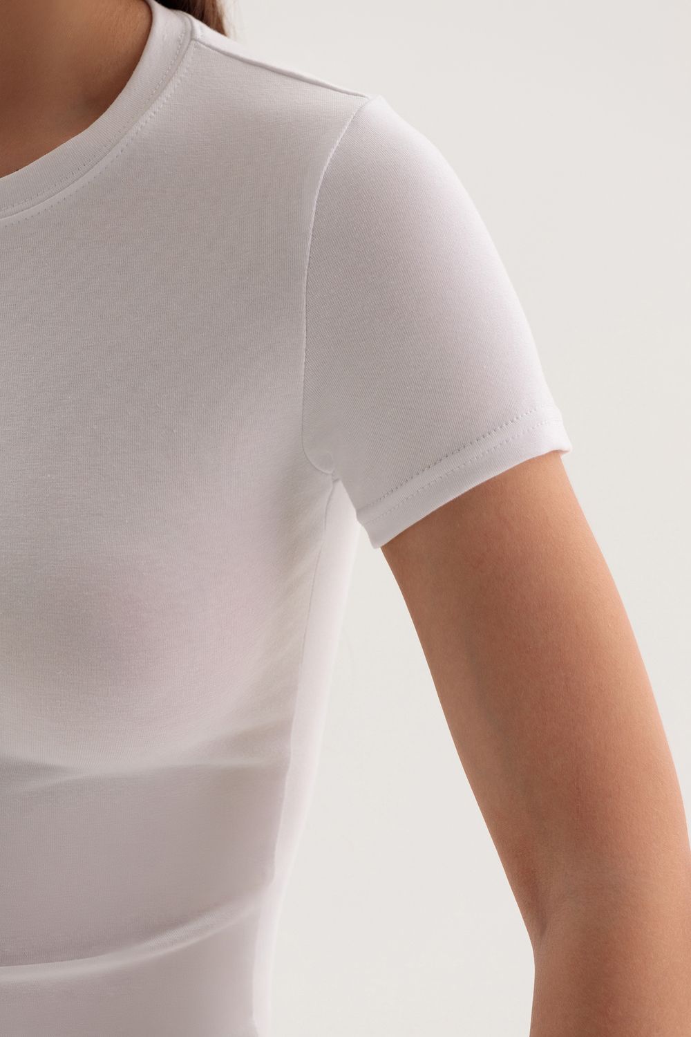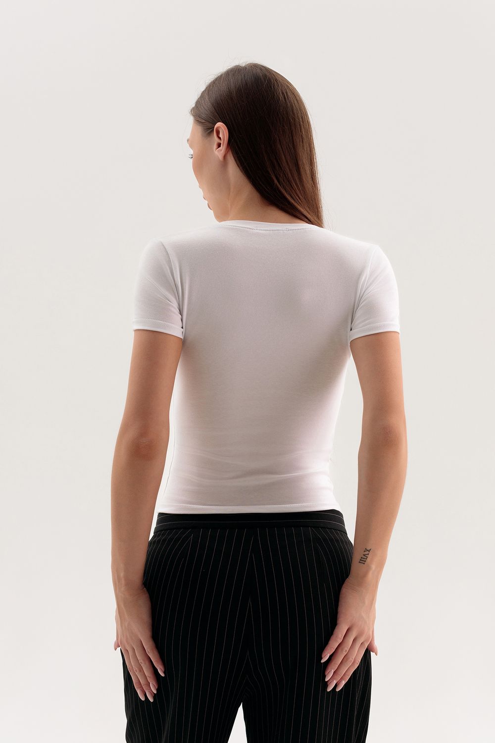 Базовая однотонная футболка скинни с коротким рукавом прекрасно подойдет для повседневной носки, дома, офиса или даже для активных тренировок и бега. Приталенный крой и облегающий фасон придают ей современный и модный вид.