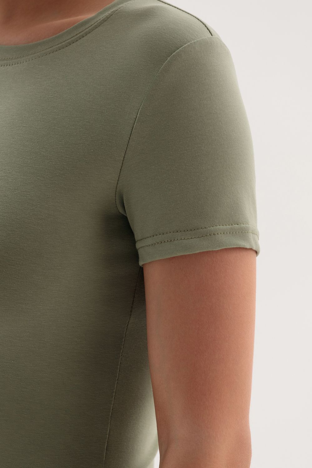 Базовая однотонная футболка скинни с коротким рукавом прекрасно подойдет для повседневной носки, дома, офиса или даже для активных тренировок и бега. Приталенный крой и облегающий фасон придают ей современный и модный вид.