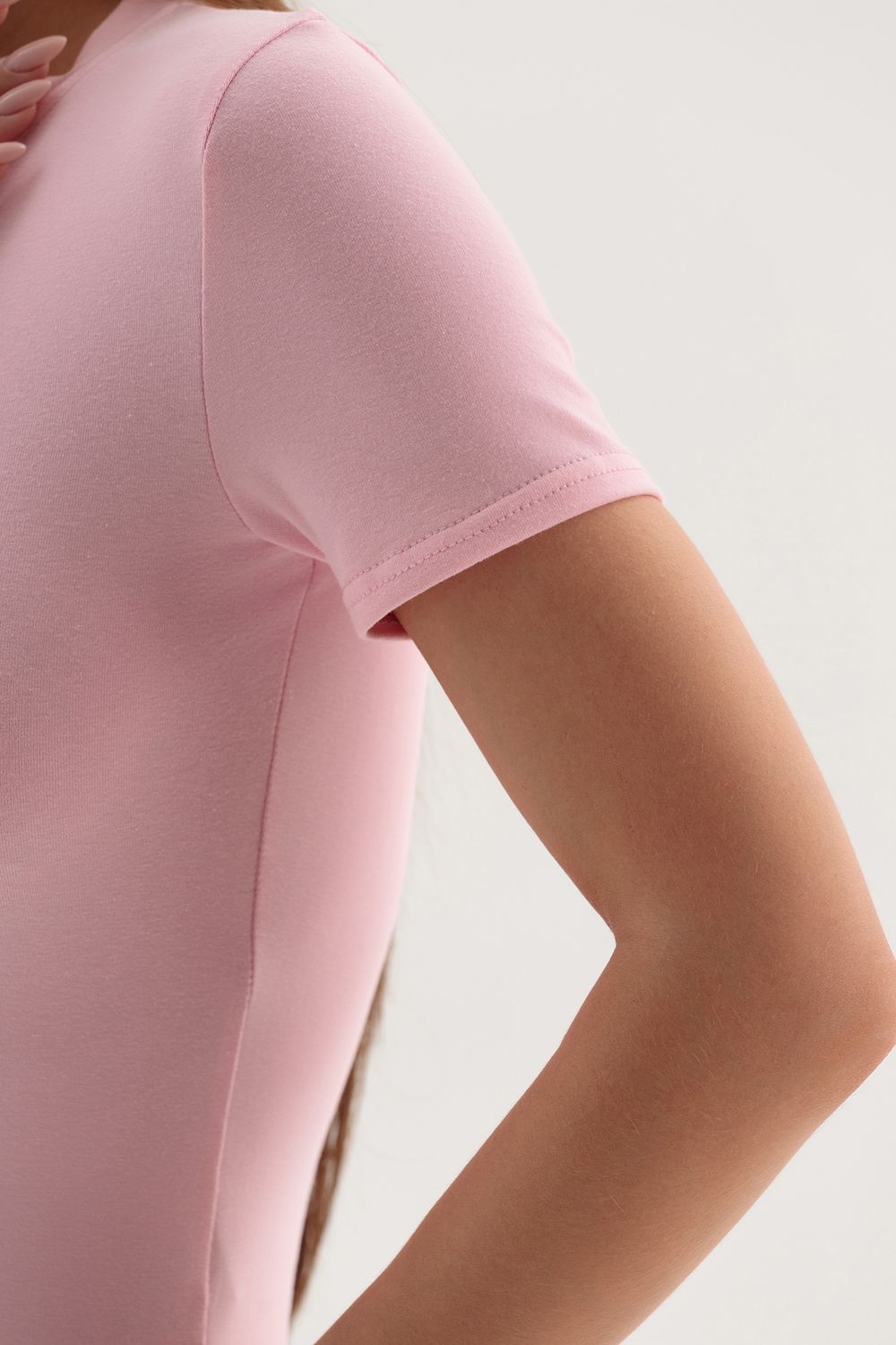 Базовая однотонная футболка скинни с коротким рукавом прекрасно подойдет для повседневной носки, дома, офиса или даже для активных тренировок и бега. Приталенный крой и облегающий фасон придают ей современный и модный вид.