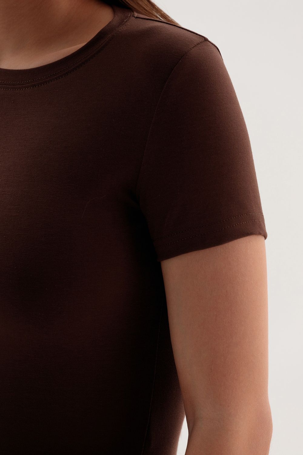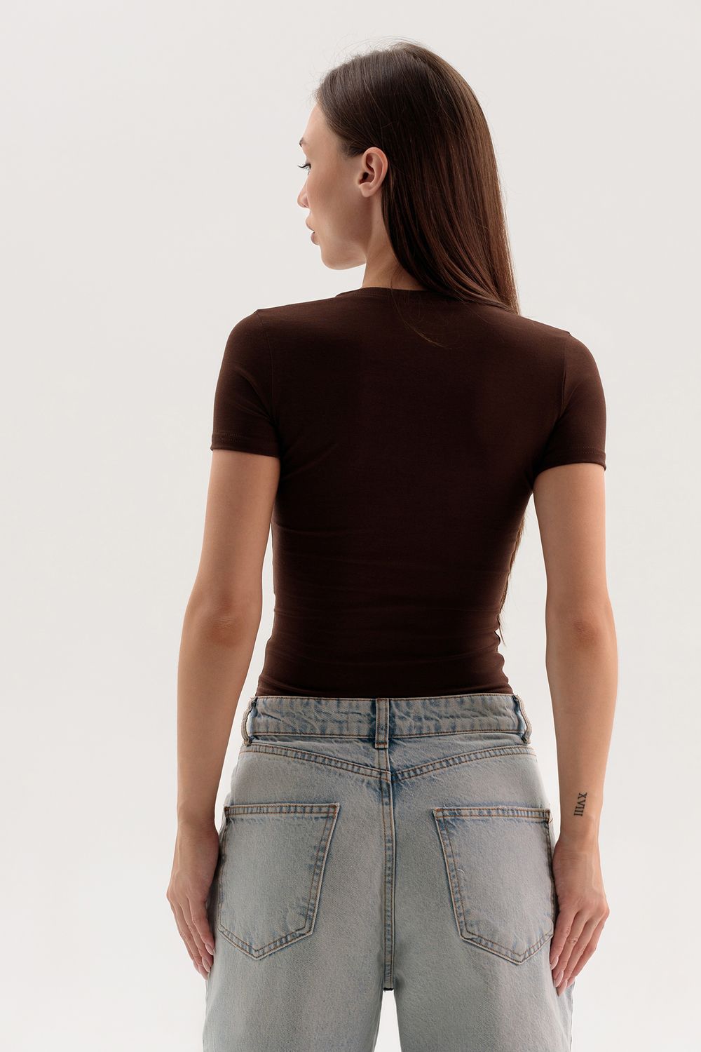 Базовая однотонная футболка скинни с коротким рукавом прекрасно подойдет для повседневной носки, дома, офиса или даже для активных тренировок и бега. Приталенный крой и облегающий фасон придают ей современный и модный вид.
