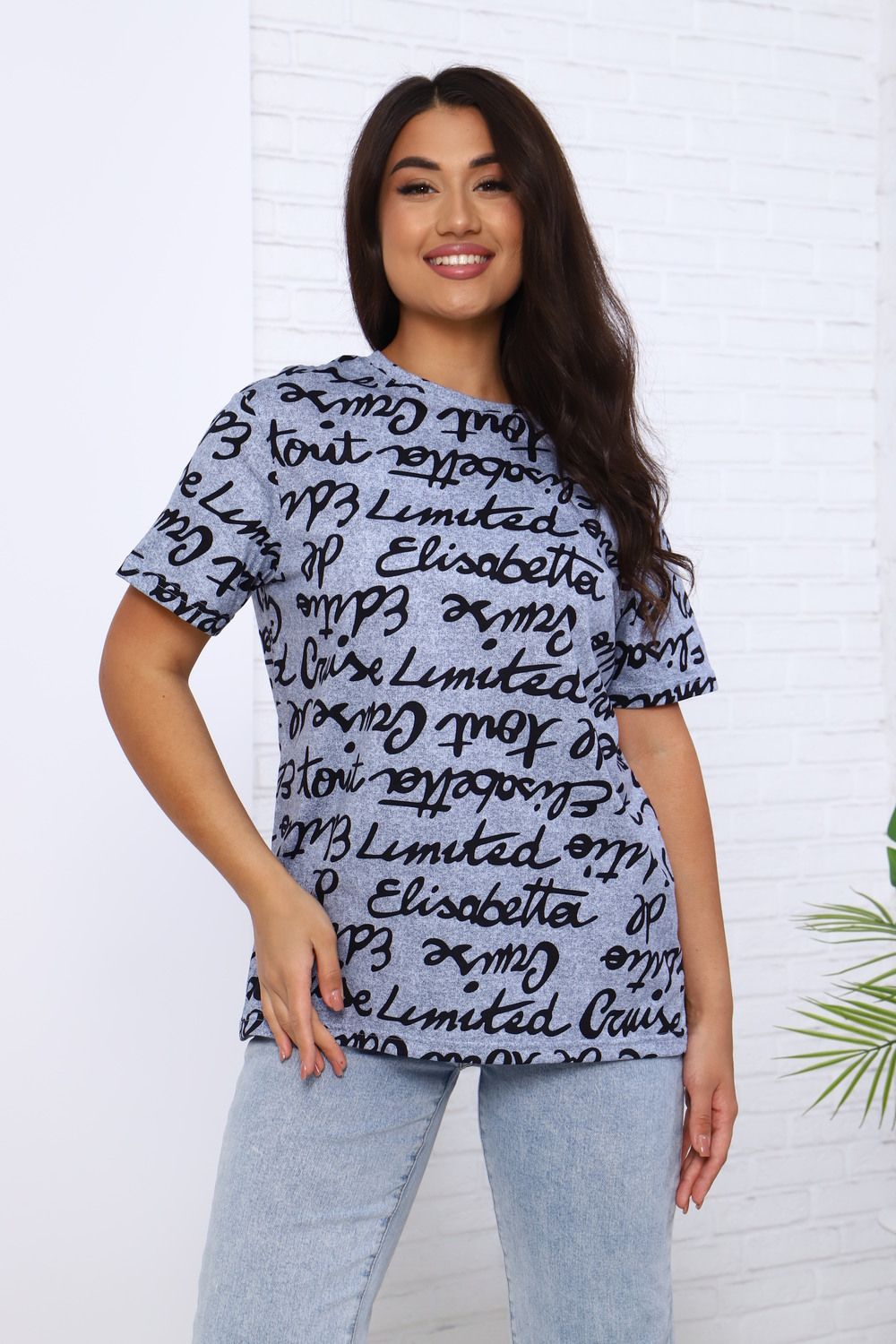 Футболка женская выполнена из трикотажного полотна кулирка. Футболка свободного силуэта.