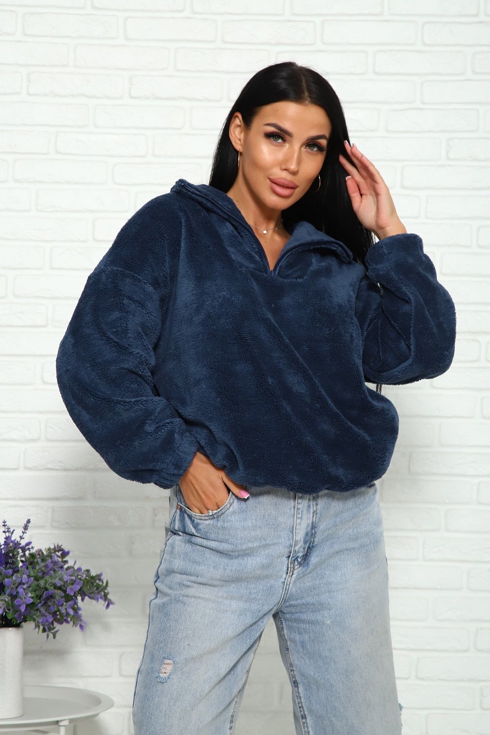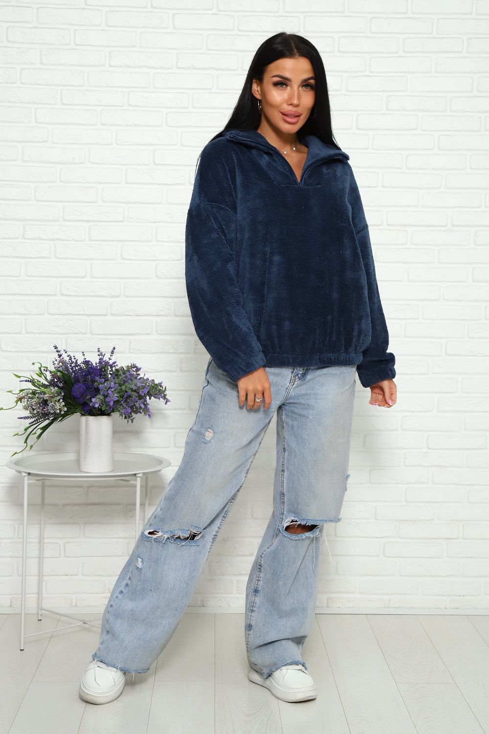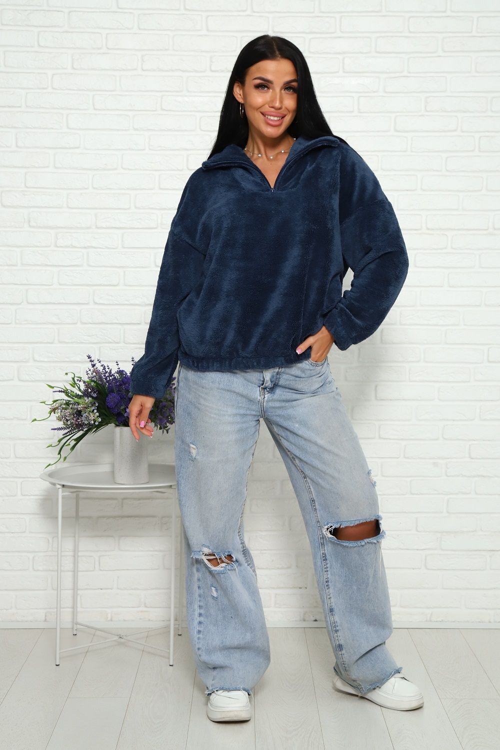 Толстовка женская из велсофта, воротник - стойка с молнией, рукава со спущенным плечом, с резинкой на запястье. Удобный и стильный крой, отличная посадка на любом типе фигуры.