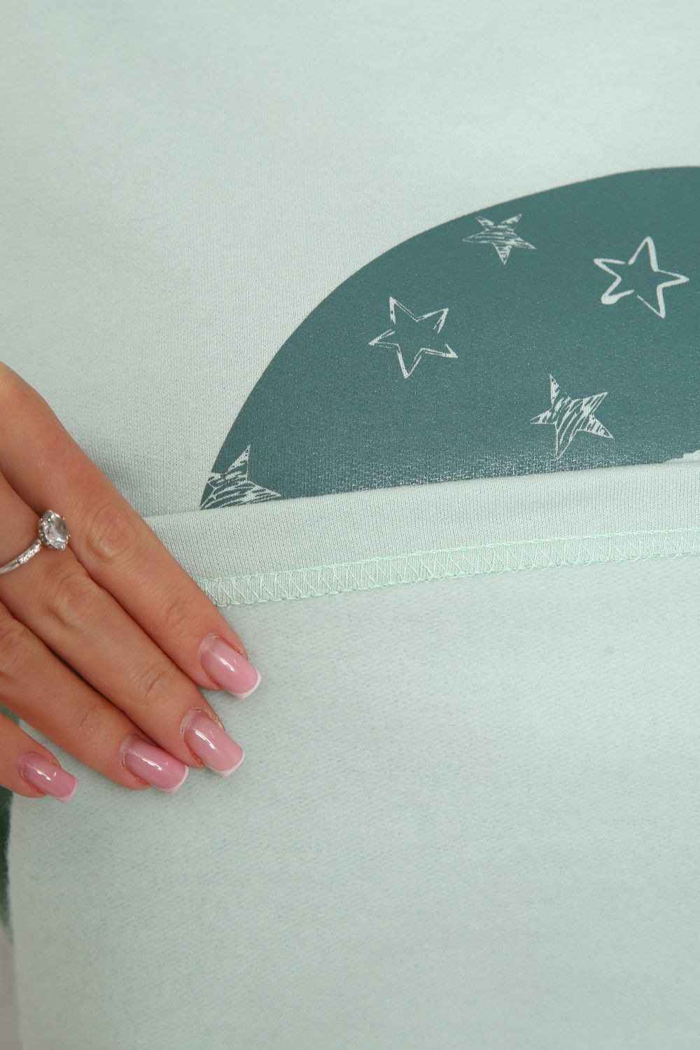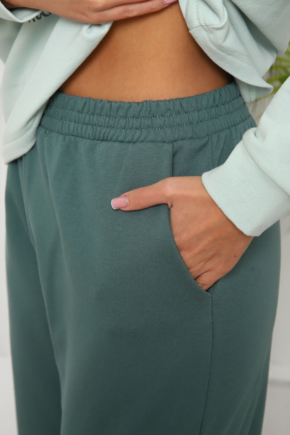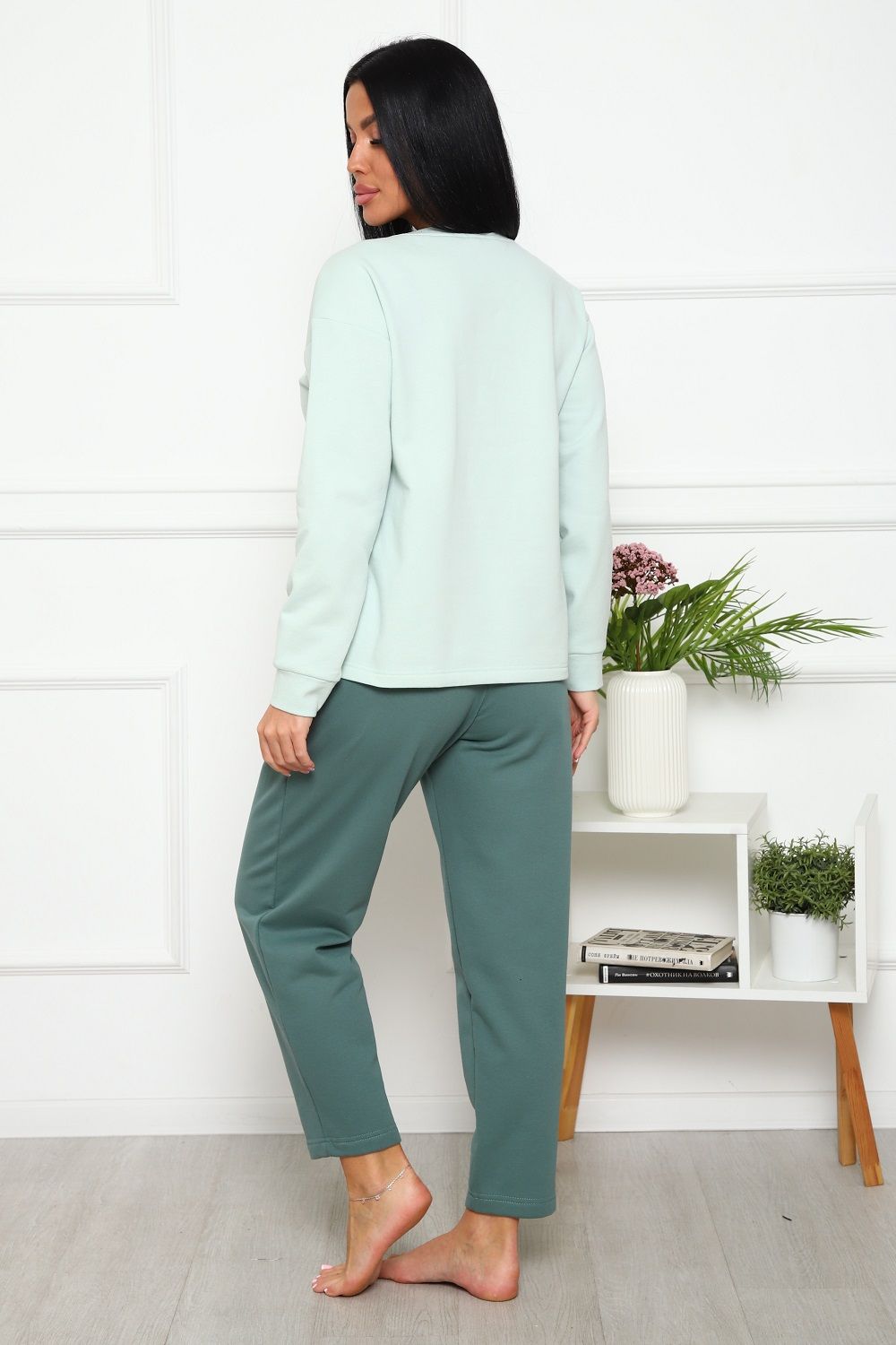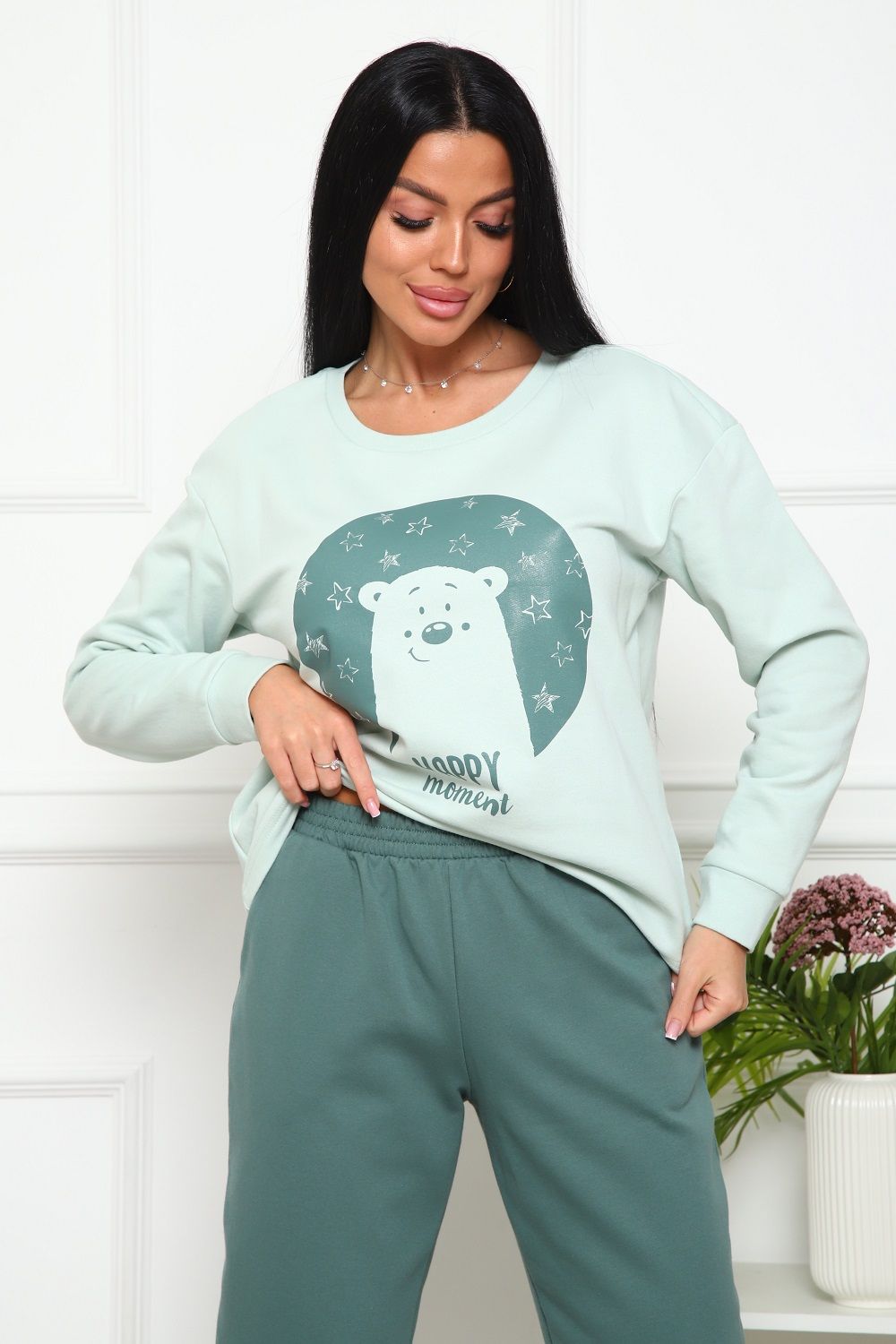 Пижама женская теплая: футболка прямого кроя со спущенным плечом и милым принтом на груди, бриджи "бананы" с карманами в боках. Комфортный хлопковый трикотаж - футер 2-нитка с начесом на изнаночной стороне.
