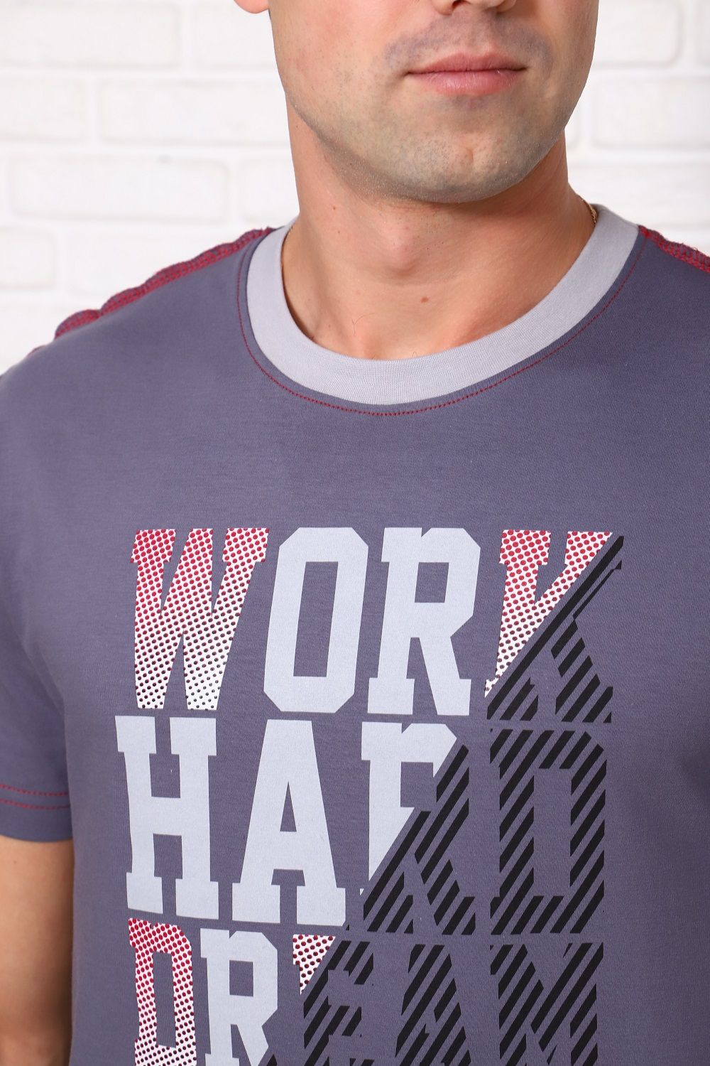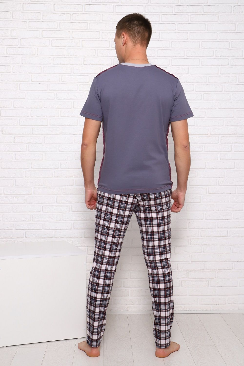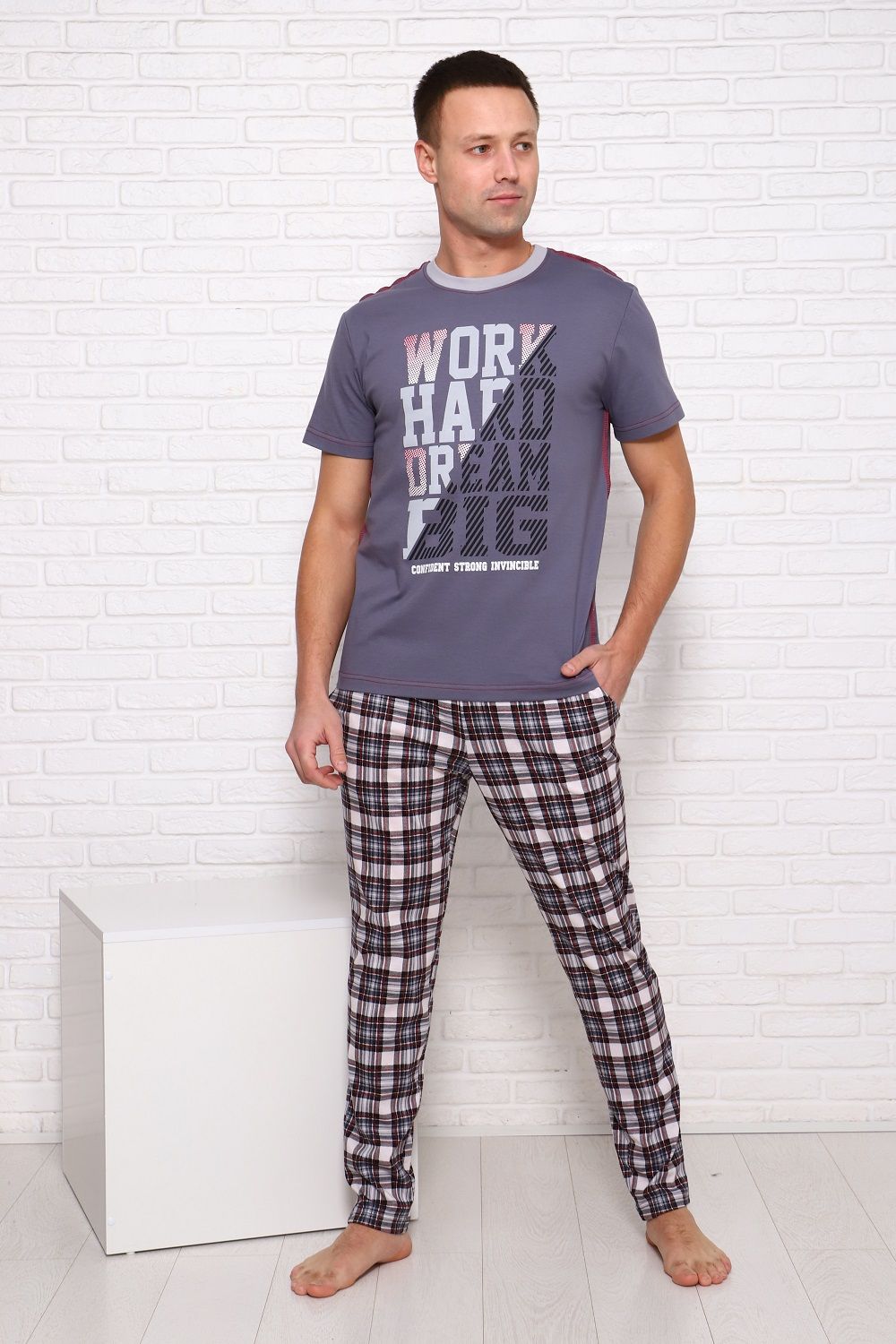 Стильная мужская пижама, 100% хлопок: брюки на поясе, с боковыми карманами; футболка с декоративными швами "наружу" с контрастной ниткой, с брутальным принтом на груди.