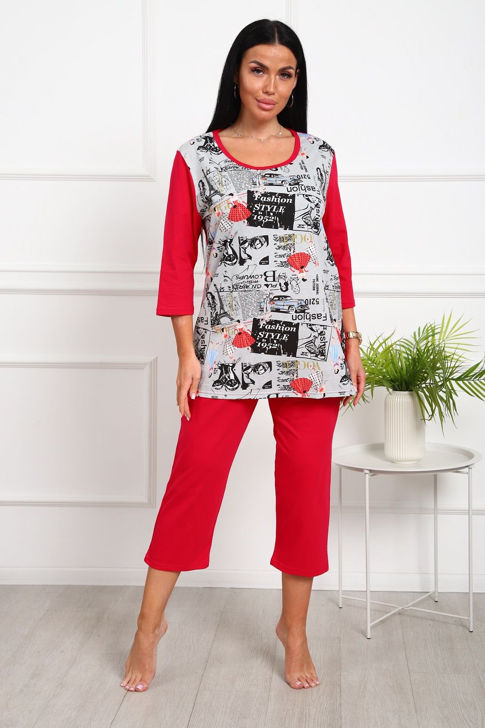 Костюм женский домашний свободного силуэта, состоит из бридж и удлинённой футболки. Хлопок 100%. Комфортно и уютно.