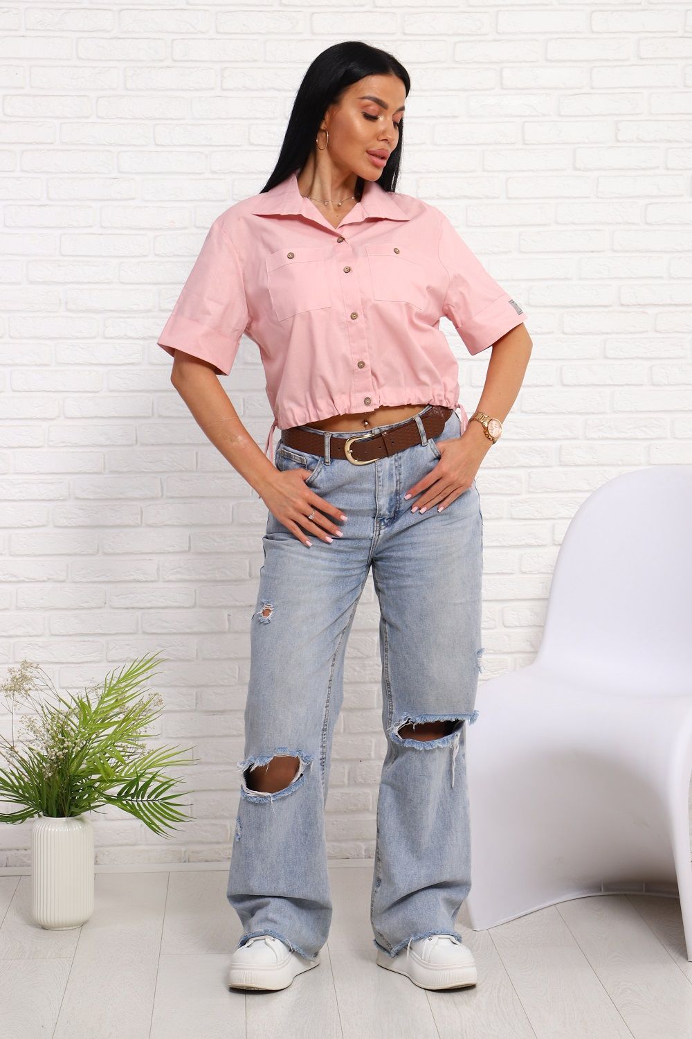 Рубашка женская с завязками, укороченная, в молодежном спортивном стиле. Два нагрудных кармана, рукав короткий. Стойка воротника без фиксации на пуговицу. Степень присборивания низа рубашки регулируется на Ваш вкус, длину завязок можно уменьшить (отрезать). Ткань: 100% хлопок, комфорт нежного мягкого сатина. Отлично сочетается с деним и с классической одеждой. Удобная и стильная рубашка станет любимой в Вашем гардеробе!