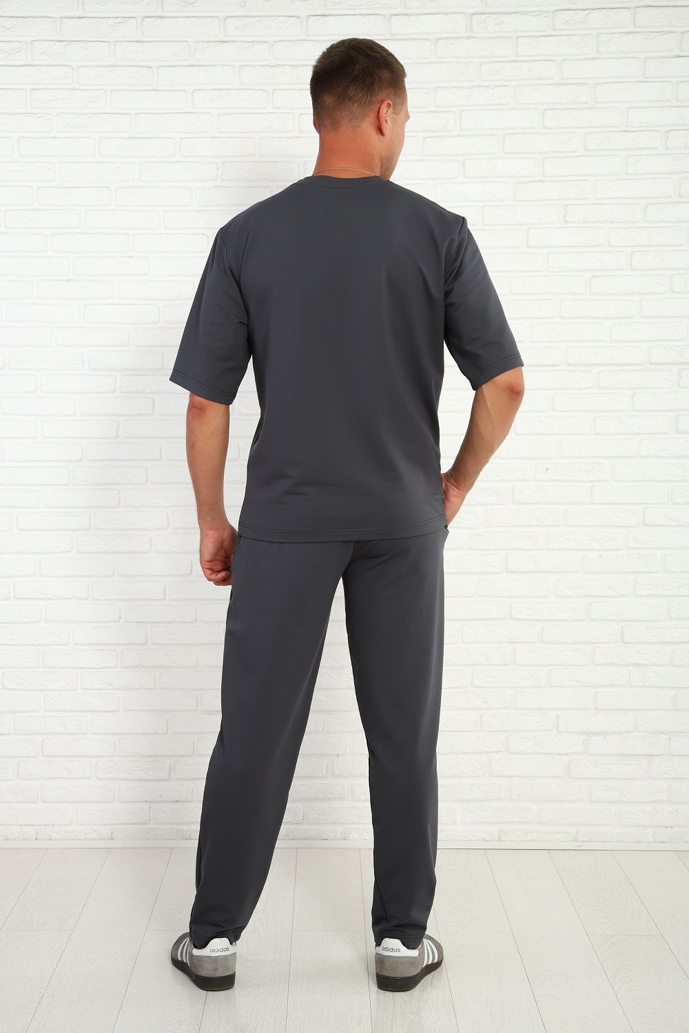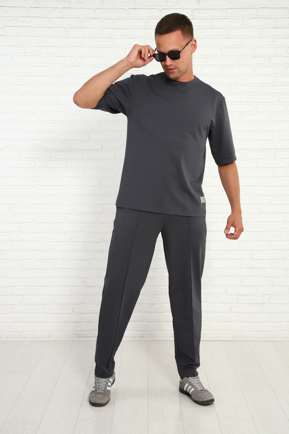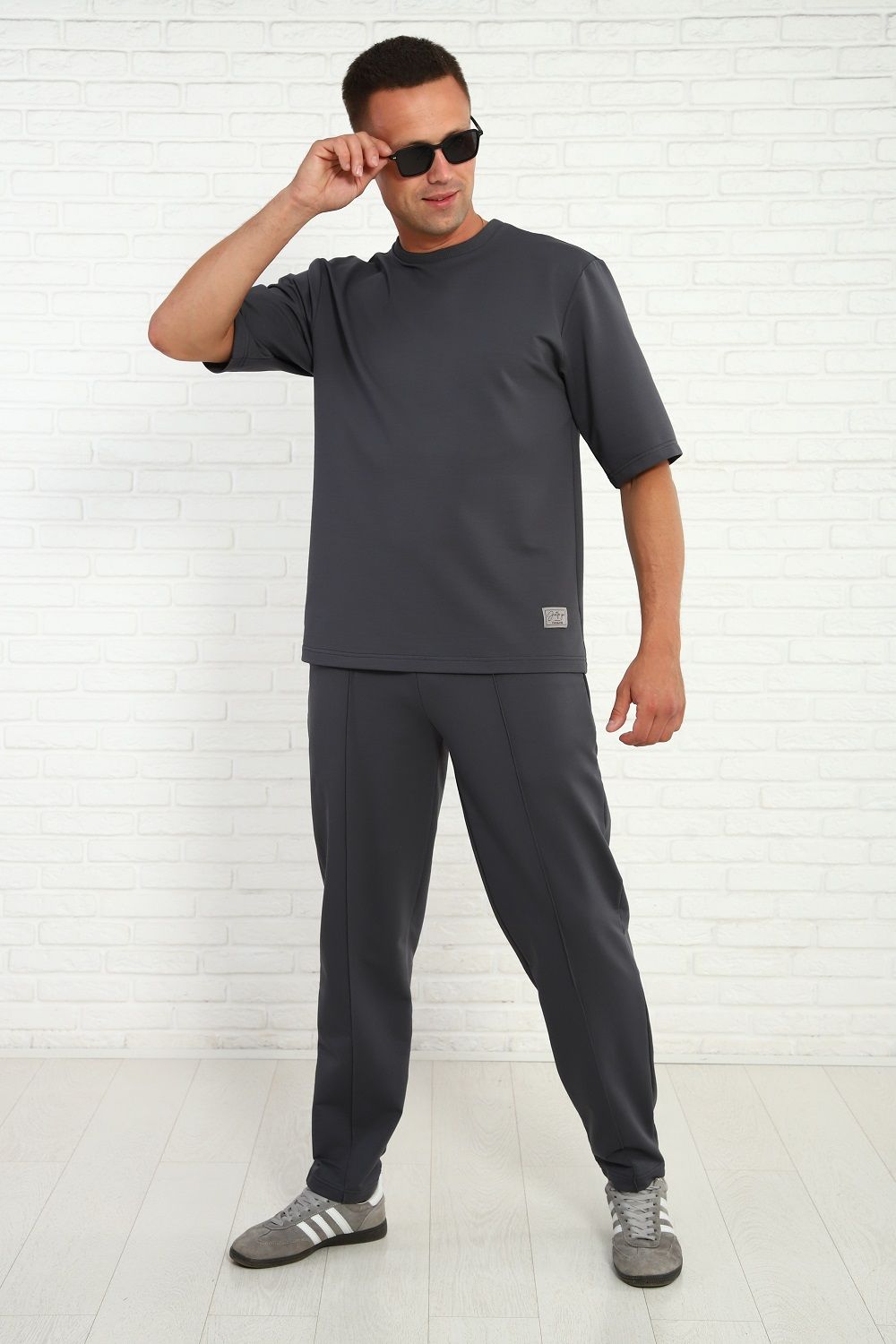 Мужской брючный костюм с футболкой, комфортный материал с хлопком, маломнущийся, удобный крой и отличная посадка на фигуре. Брюки на широком комфортном поясе, два боковых кармана.