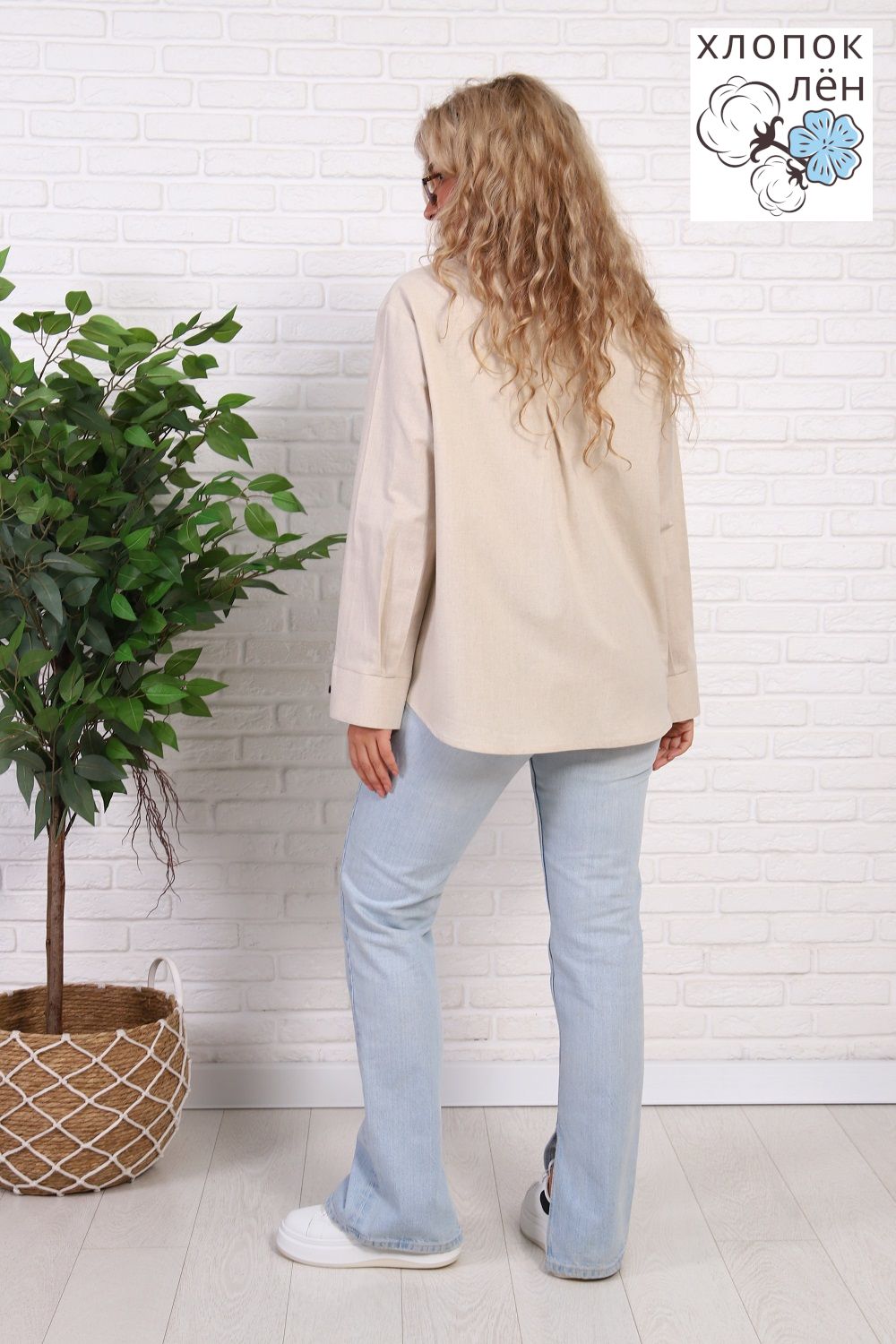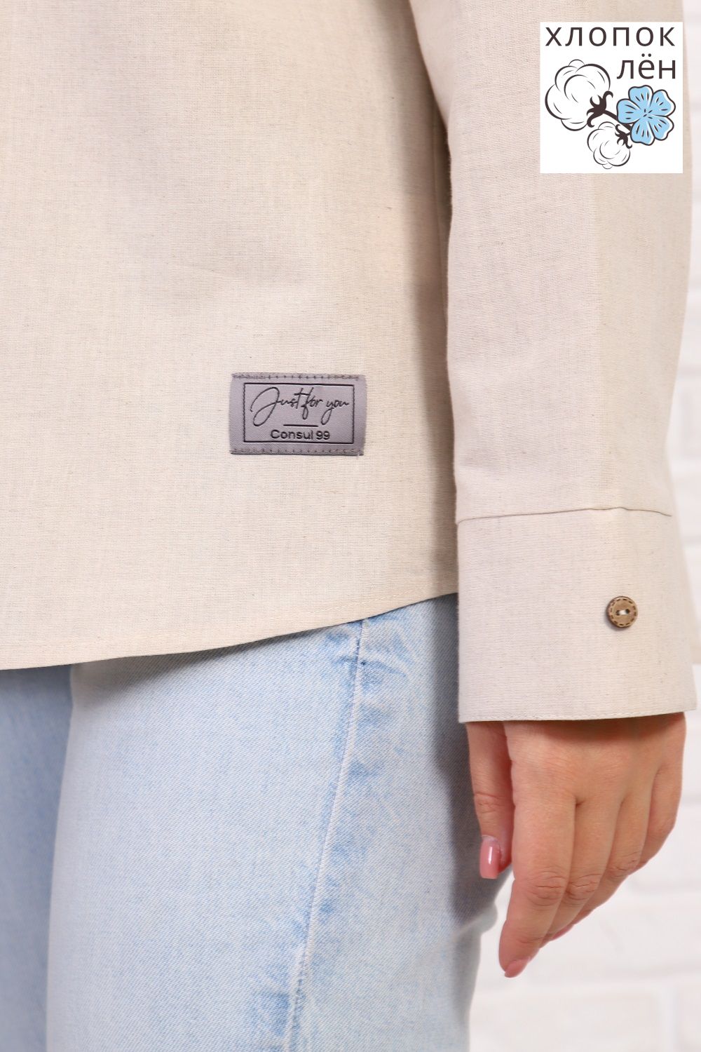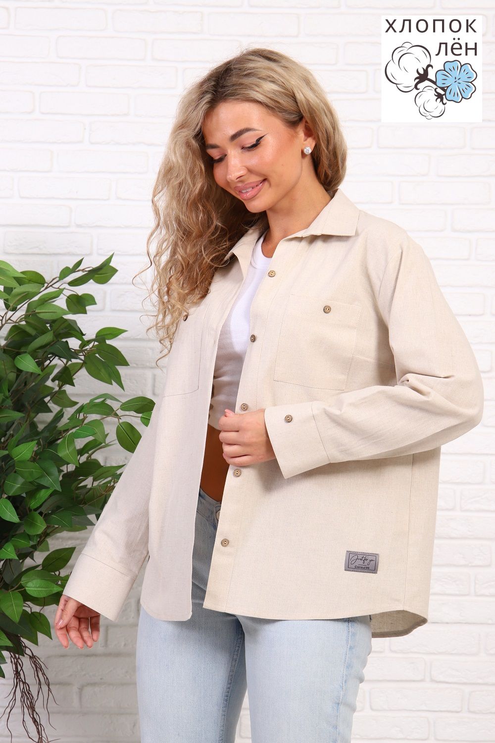 Рубашка женская офисная, свободного силуэта, длинный рукав. Из 100% натуральной ткани (хлопок 70% и лён 30%). Рубашка очень комфортная: рукава не сковывают движения; удобная длина, прикрывающая зону бедер; два нагрудных кармана, дышащая ткань. Трендовый силуэт и акцентные кокосовые пуговицы создают стиль этой рубашки. Сочетается и с денимом и с классической одеждой.