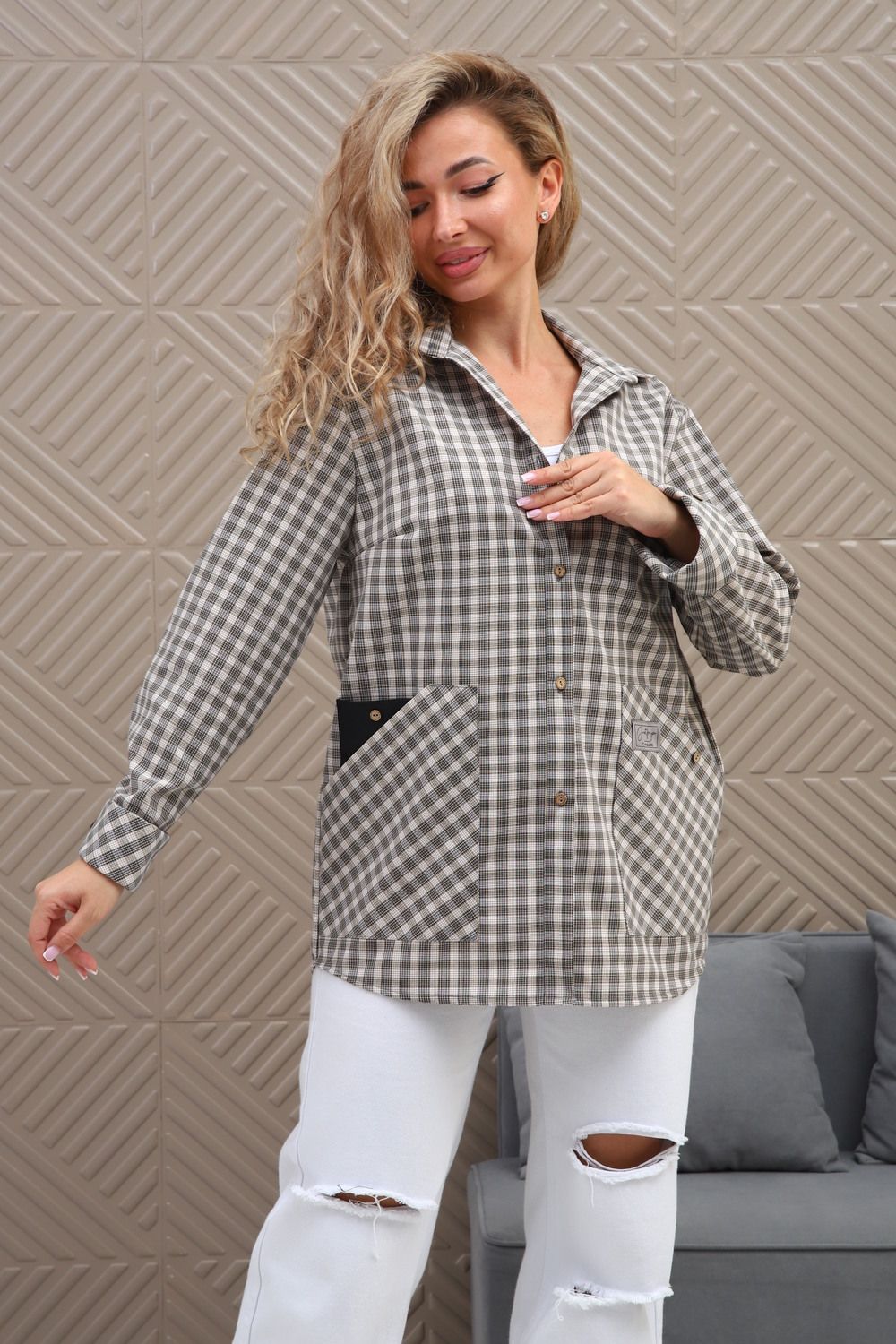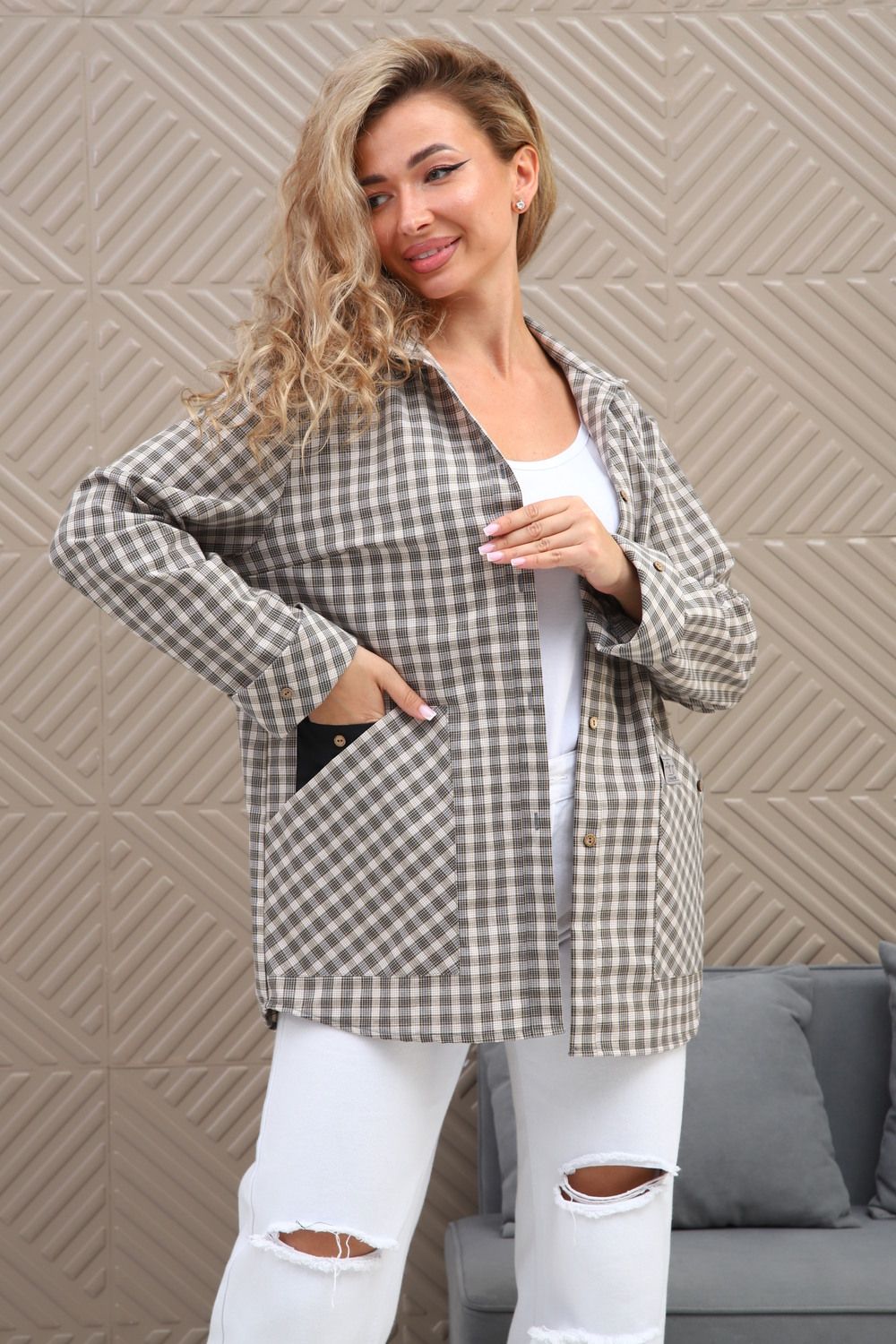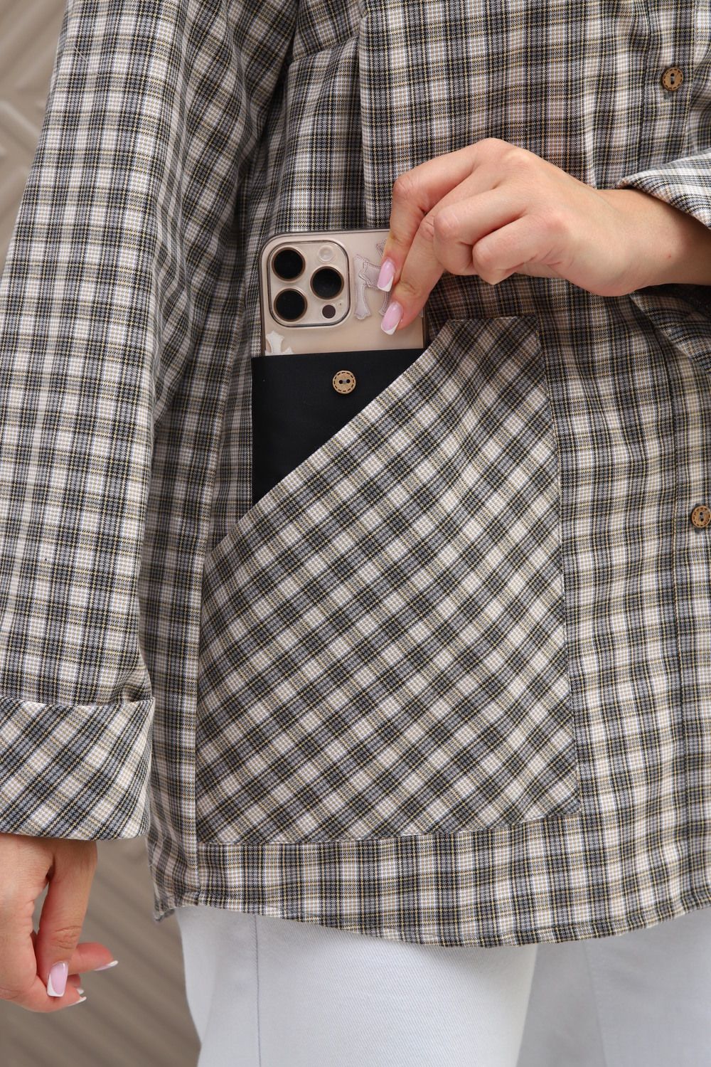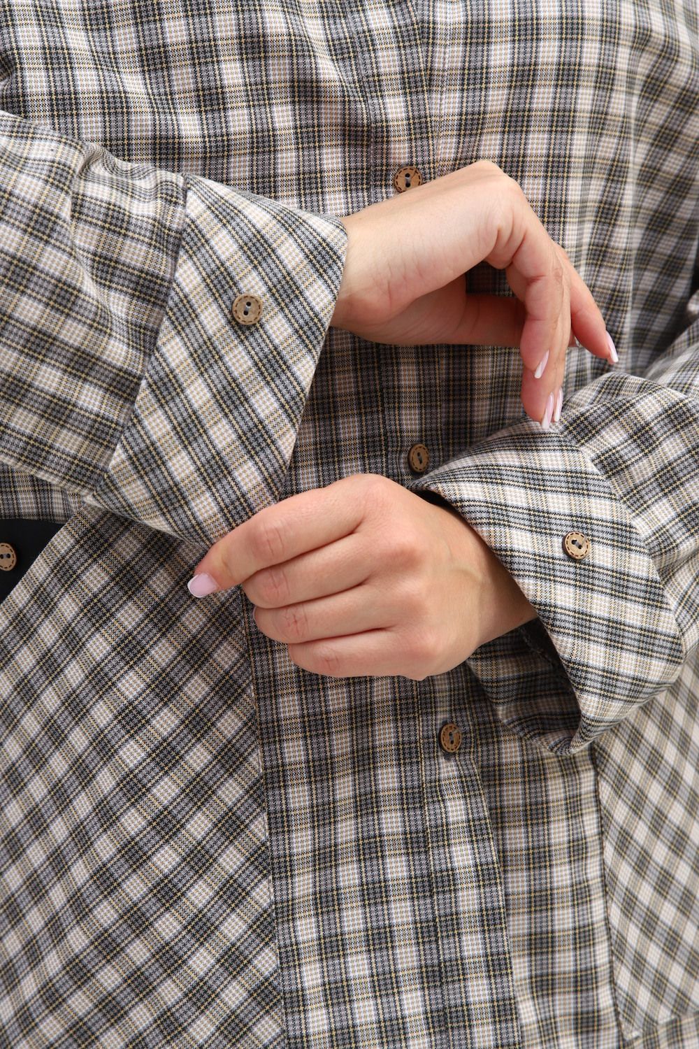 Женская рубашка с очень удобными карманами-кенгуру и специальным акцентным карманом для смартфона (пластиковых карт, ручек, очков и т.п.), один из карманов-кенгуру можно застегивать петелькой на пуговицу. Рукава с манжетом, который подгибается - благодаря этому длина рукава регулируется в пределах 5 см (можно сделать чуть короче, чуть длинне). Крой рубашки очень комфортный в ношении, не сковывает движений. Прямой силуэт стройнит. Ткань шотландка (относительно плотный материал, похожий на лён/полулен), 100% хлопок. Замечательный выбор для прогулок, для работы. Наверняка, станет Вашей любимой рубашкой.