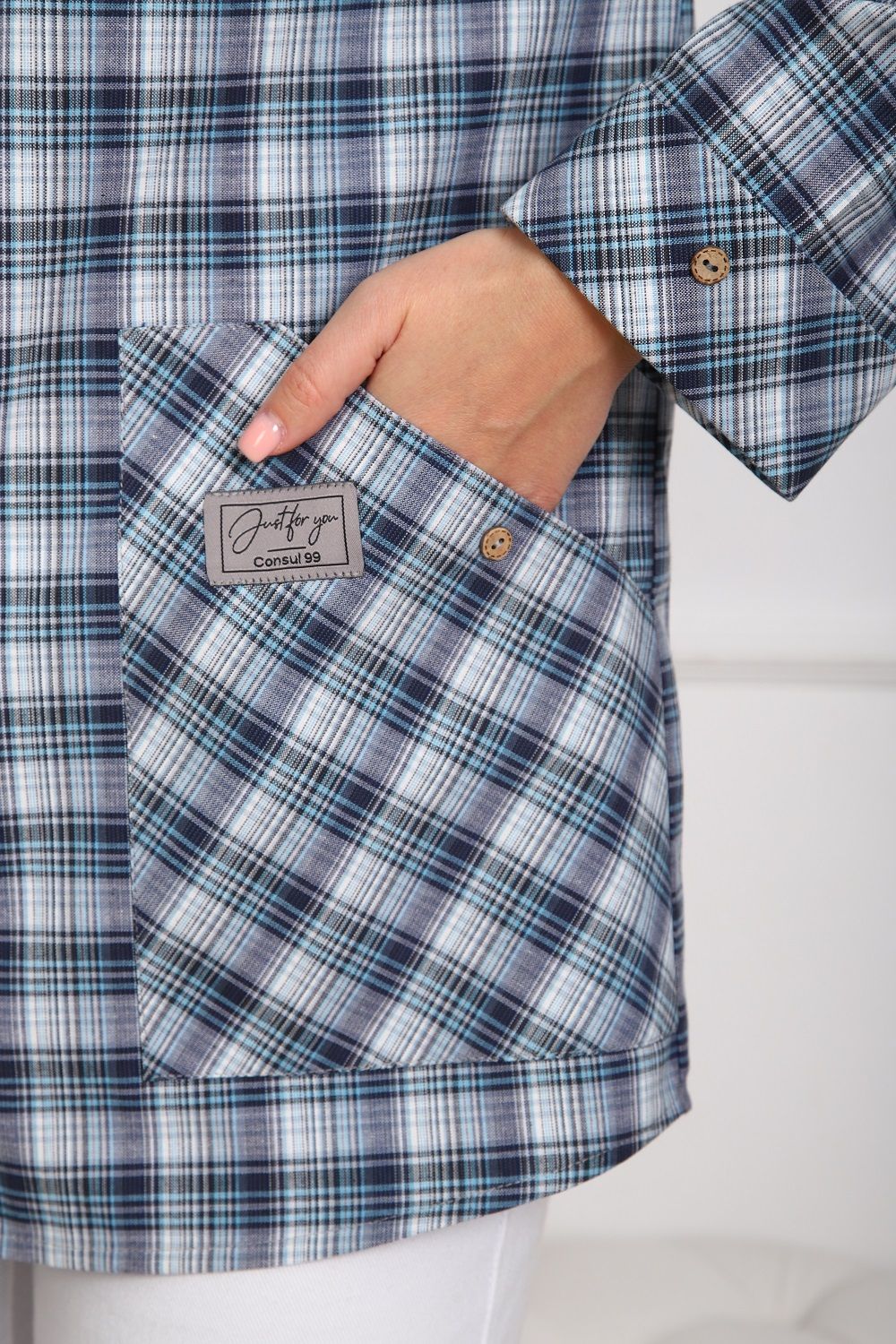 Женская рубашка с очень удобными карманами-кенгуру и специальным акцентным карманом для смартфона (пластиковых карт, ручек, очков и т.п.), один из карманов-кенгуру можно застегивать петелькой на пуговицу. Рукава с манжетом, который подгибается - благодаря этому длина рукава регулируется в пределах 5 см (можно сделать чуть короче, чуть длинне). Крой рубашки очень комфортный в ношении, не сковывает движений. Прямой силуэт стройнит. Ткань шотландка (относительно плотный материал, похожий на лён/полулен), 100% хлопок. Замечательный выбор для прогулок, для работы. Наверняка, станет Вашей любимой рубашкой.