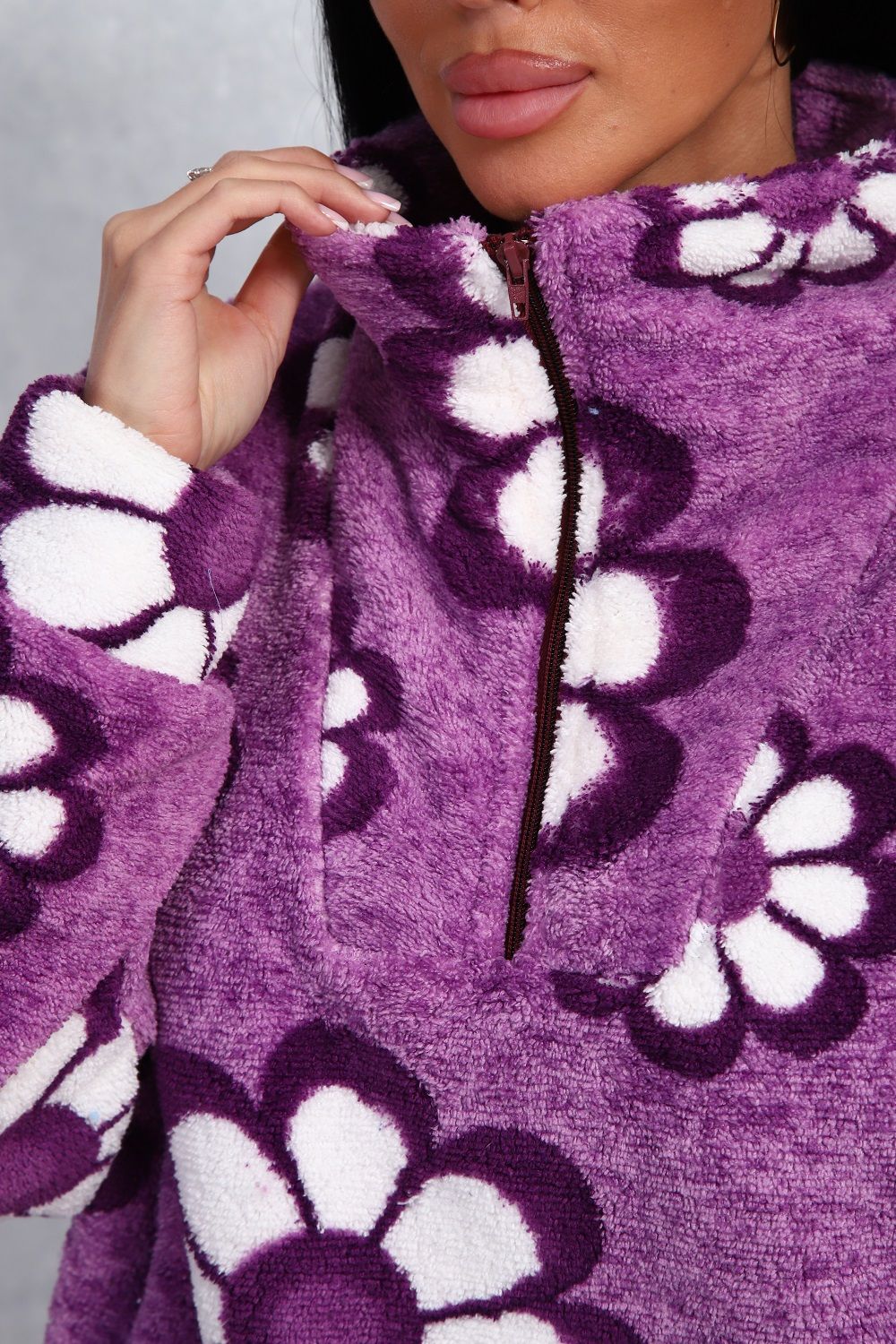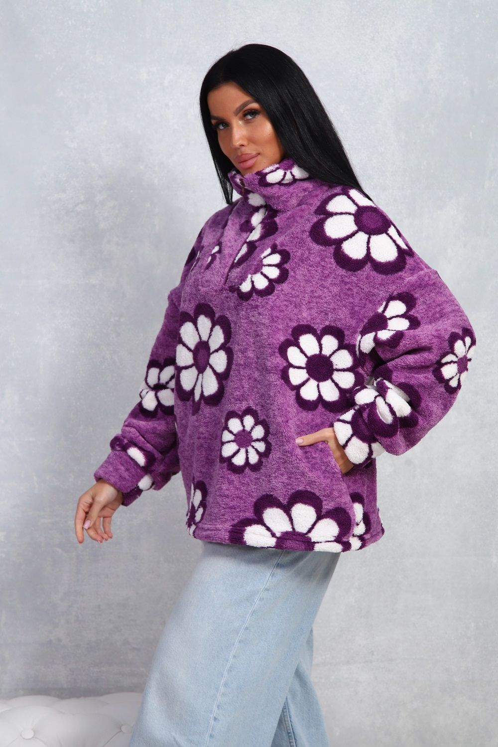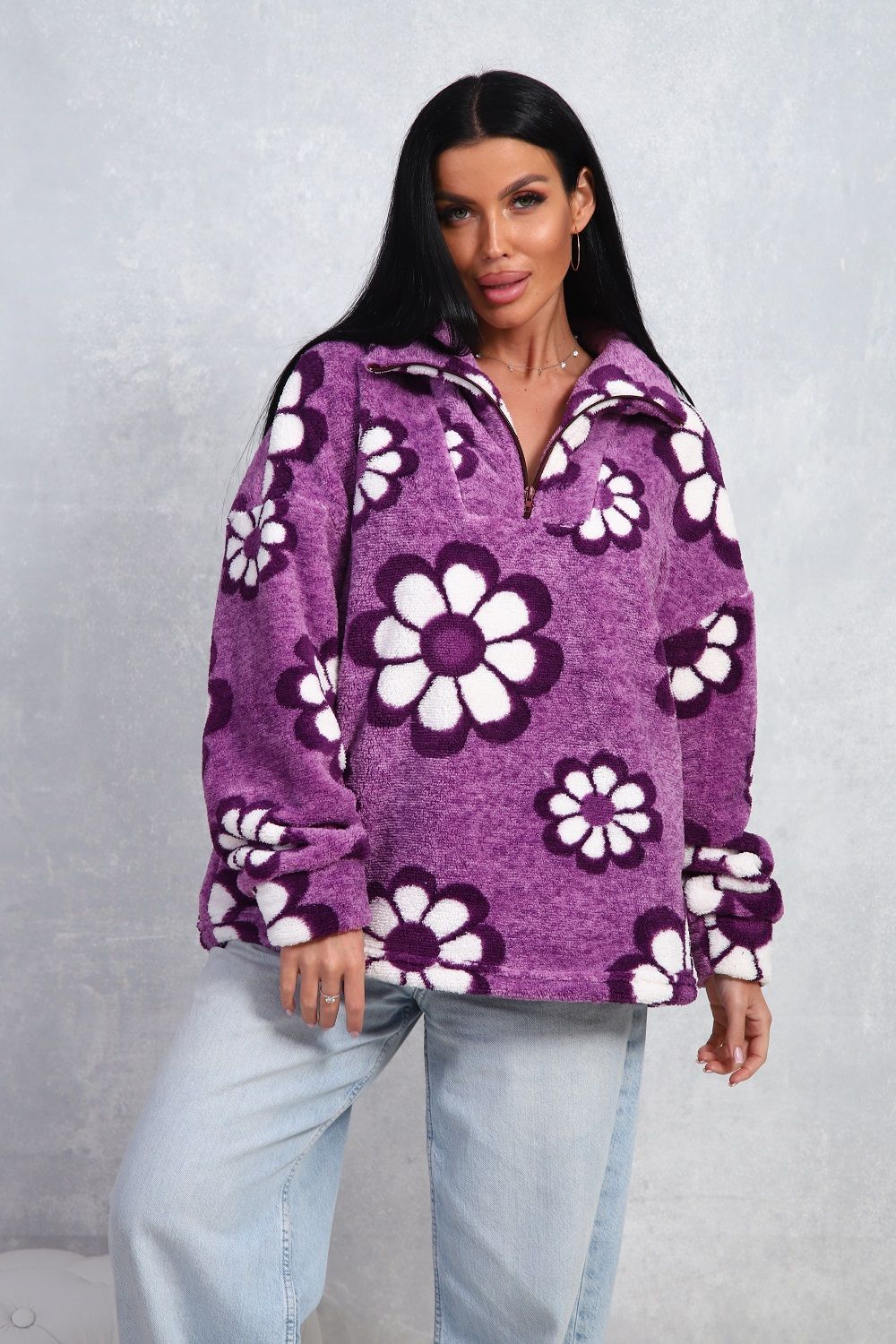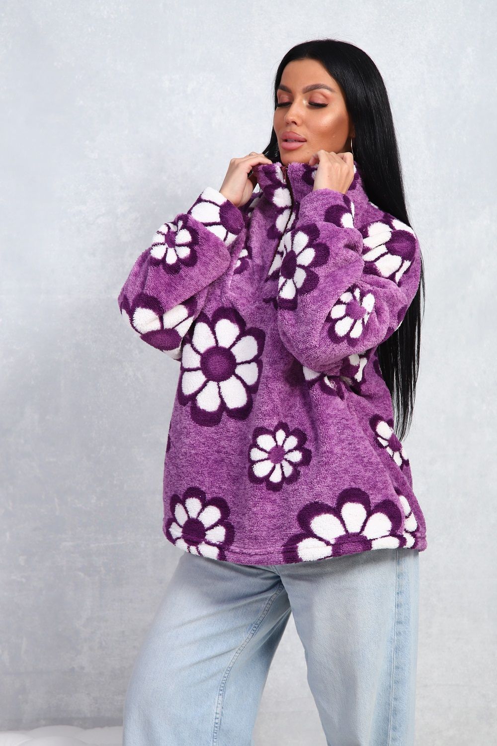 Толстовка женская свободного кроя, из уютного теплого велсофта, с комфортным воротом на молнии, с двумя боковыми карманами. Не мнётся, легко стирается.