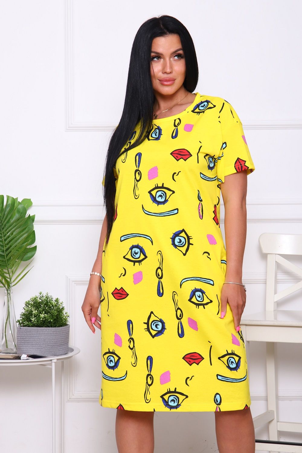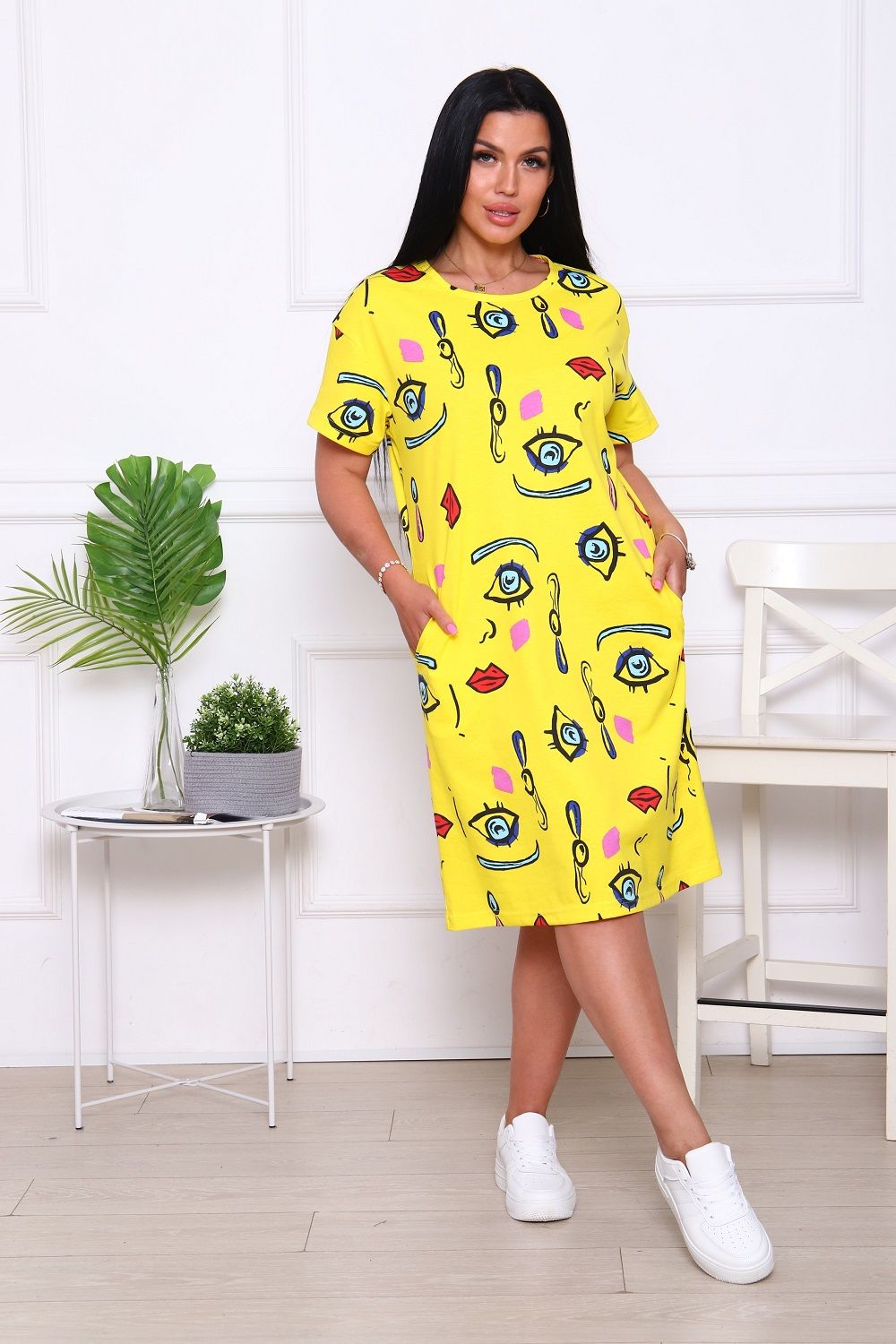 Туника- платье женская с короткими рукавами и боковыми карманами. Яркая модель для лета.