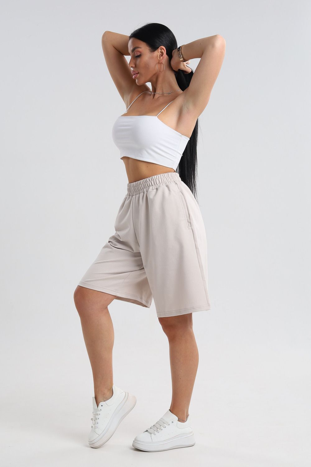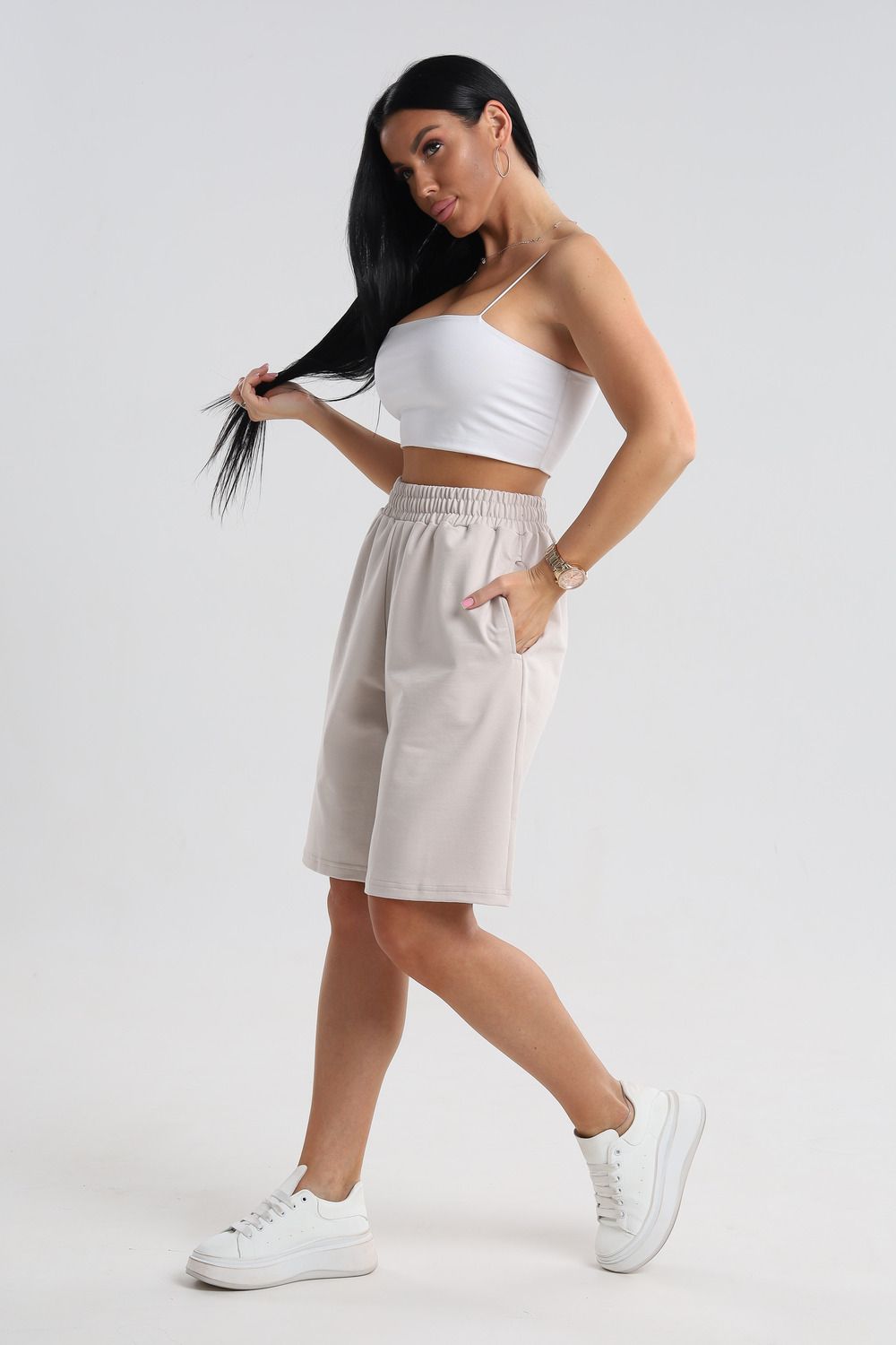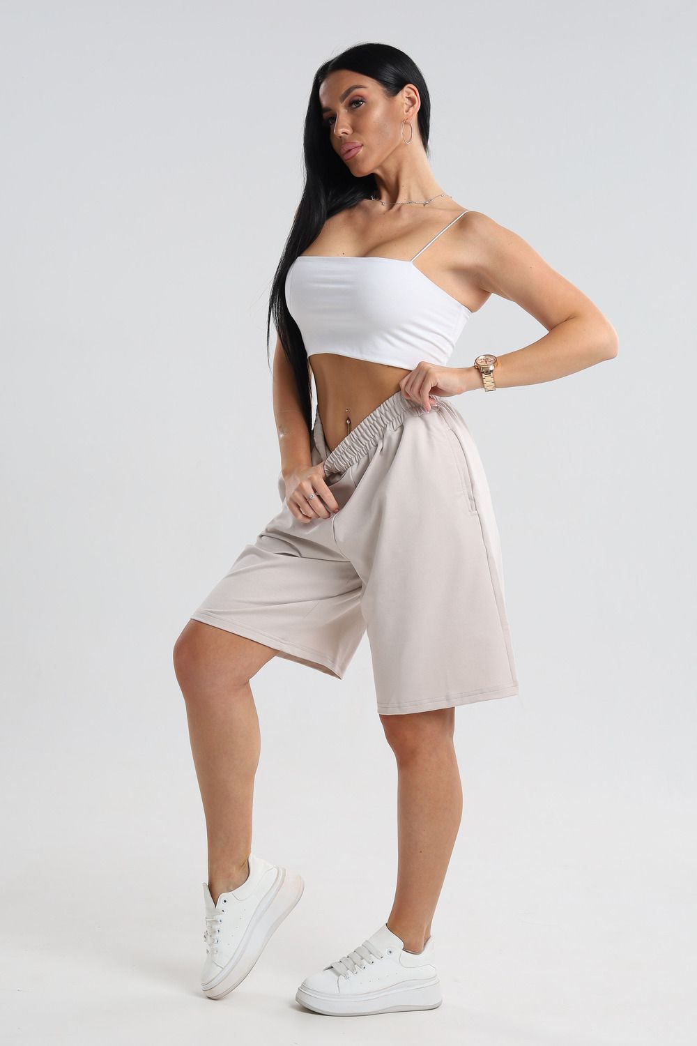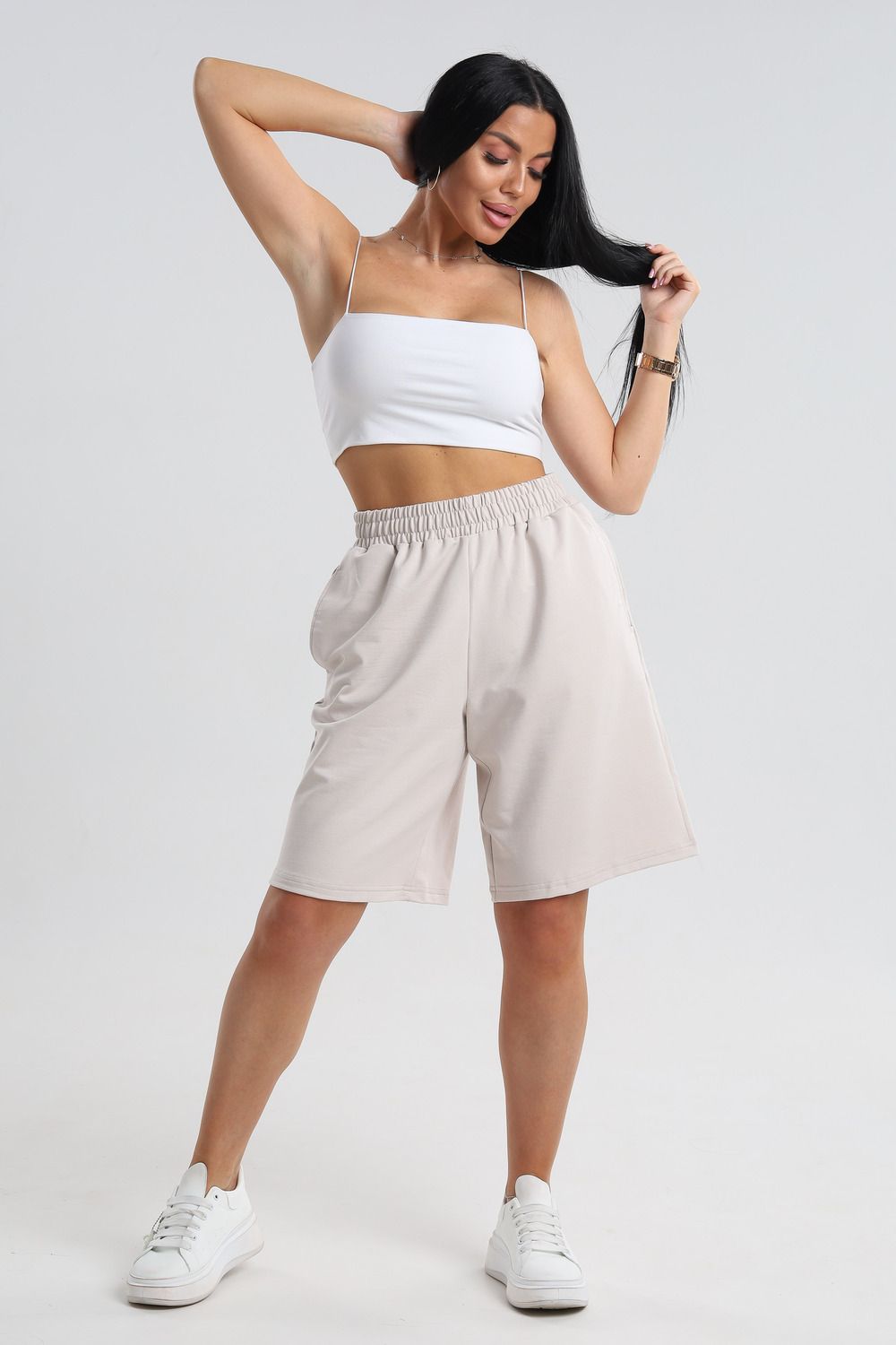 Универсальный дизайн: Шорты легко сочетаются с любым верхом – от простых футболок до элегантных блузок.
