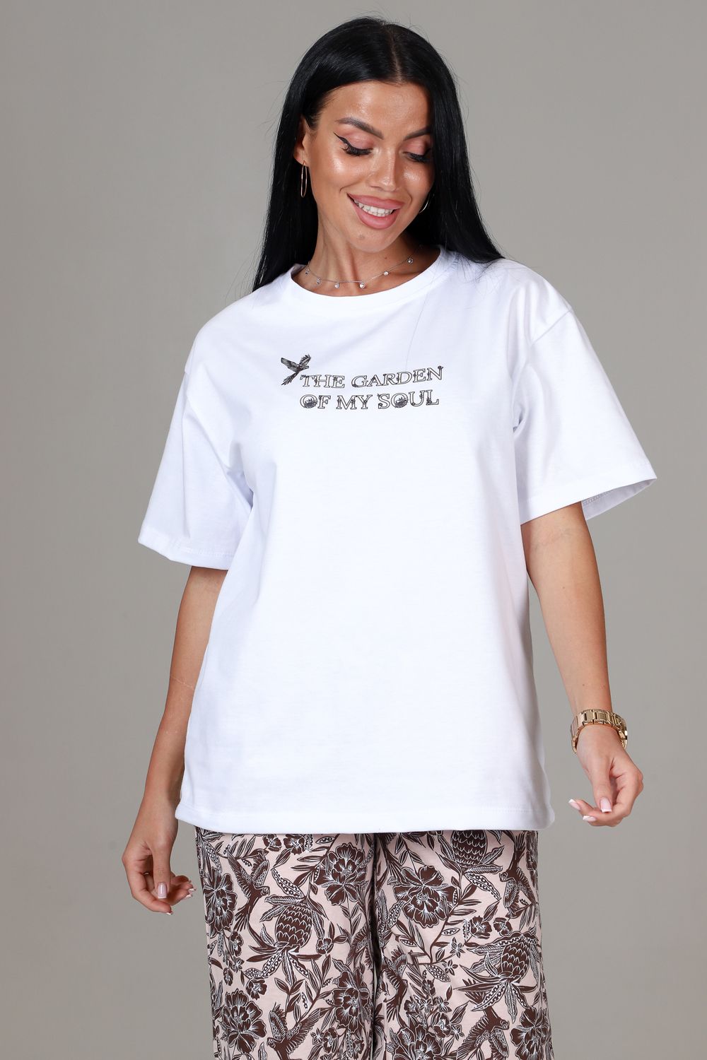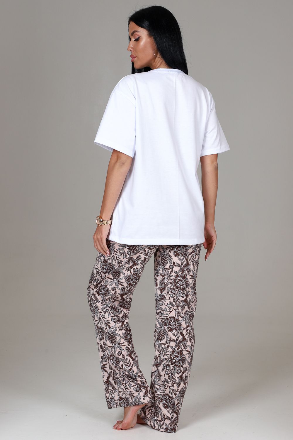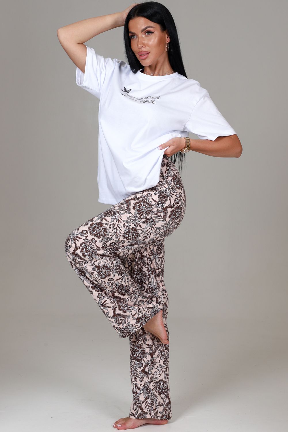 Представляем вам уютный и стильный женский домашний костюм от бренда DANi.TEX BRAND. Этот костюм изготовлен из высококачественной кулирки, состоящей на 100% из натурального хлопка, что обеспечивает комфорт и приятные тактильные ощущения при ношении. В комплект входят прямые брюки с удобными карманами и футболка. Брюки прямого кроя и комфортная посадка обеспечат свободу движений, а круглый вырез на футболке добавит женственности и элегантности вашему образу.