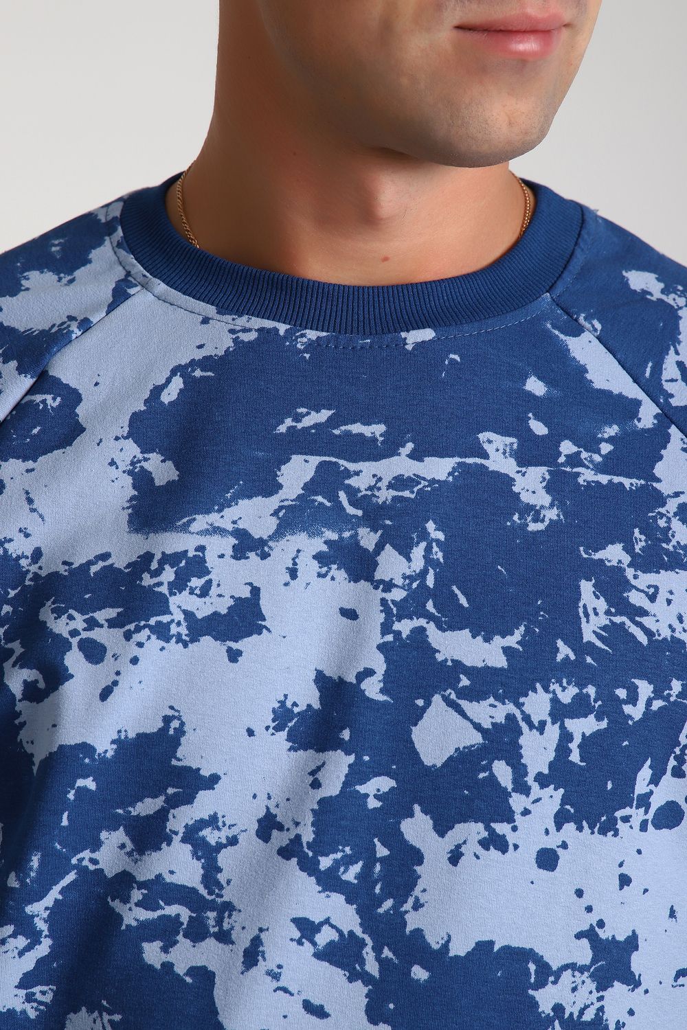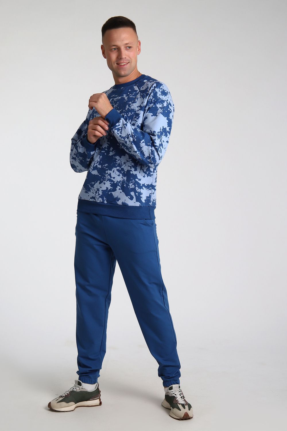 Стильный мужской костюм из футера 2-х нитки. Состоит из свитшота и брюк, выполненных из ткани разных расцветок, что добавляет эффектности. Свитшот с рукавом реглан, с округлым вырезом горловины обработан обтачкой. Низ изделия и рукава обработаны манжетами из эластичного материала. Брюки с притачным широким поясом, карманами формы «хулиган», низ подогнут с резинкой.