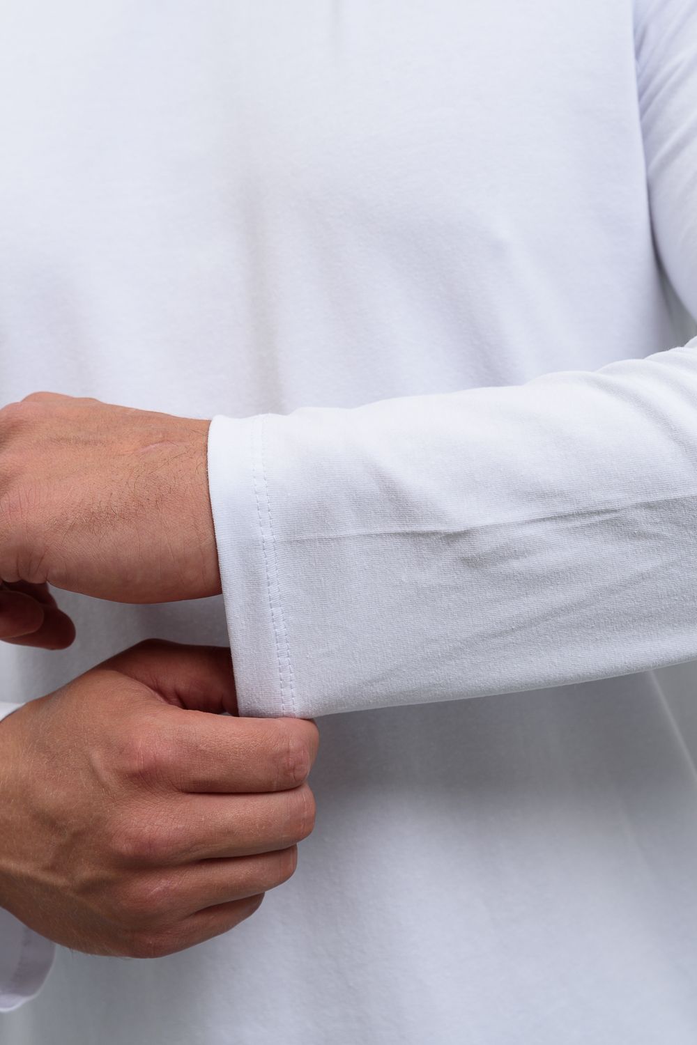 Лонгслив снова в моде и прочно обосновался в базовом гардеробе современного человека. Удобная трикотажная кофта представляет собой футболку с длинным рукавом, которую можно использовать как самостоятельный элемент, так и носить под пиджак, толстовку или рубашку. Лонгслив выполнен из высокоплотного хлопкового трикотажа и является невероятно комфортным и удобным. Футболка с длинными рукавами имеет прямой базовый крой и классическую линию плеча. Лонгслив - это неформальный стиль, когда на футболку можно надеть клетчатую рубашку и сочетать с кедами и джинсами. За счет натуральной ткани лонгслив можно носить в качестве домашней одежды или нательного белья, одежды для сна, тренировочной спортивной одежды и военной экипировки. Если вы хотите силуэт "оверсайз" нужно взять на размер или два больше, ориентируйтесь по таблице замеров.