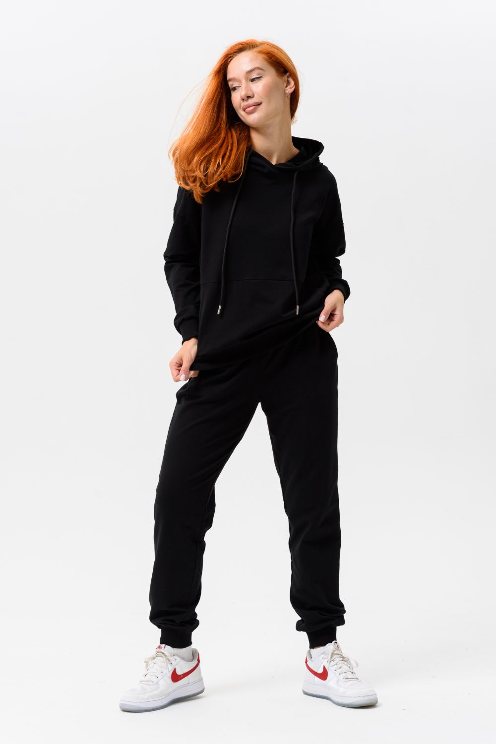 Спортивный костюм женский незаменимая часть гардероба современных девушек и подростков. Модный комплект для занятий спортом от бренда Натали - это стильные худи с капюшоном, с прямыми длинными рукавами и классические брюки джоггеры с парой врезных карманов. Мягкие, но плотные резинки надежно фиксируют свободный рукав, низ кофты и штаны спортивки. Легкий тонкий, но теплый костюм можно носить как повседневный, прогулочный в парке, брать с собой в туристический поход или для путешествий, в том числе и для туризма на авто.