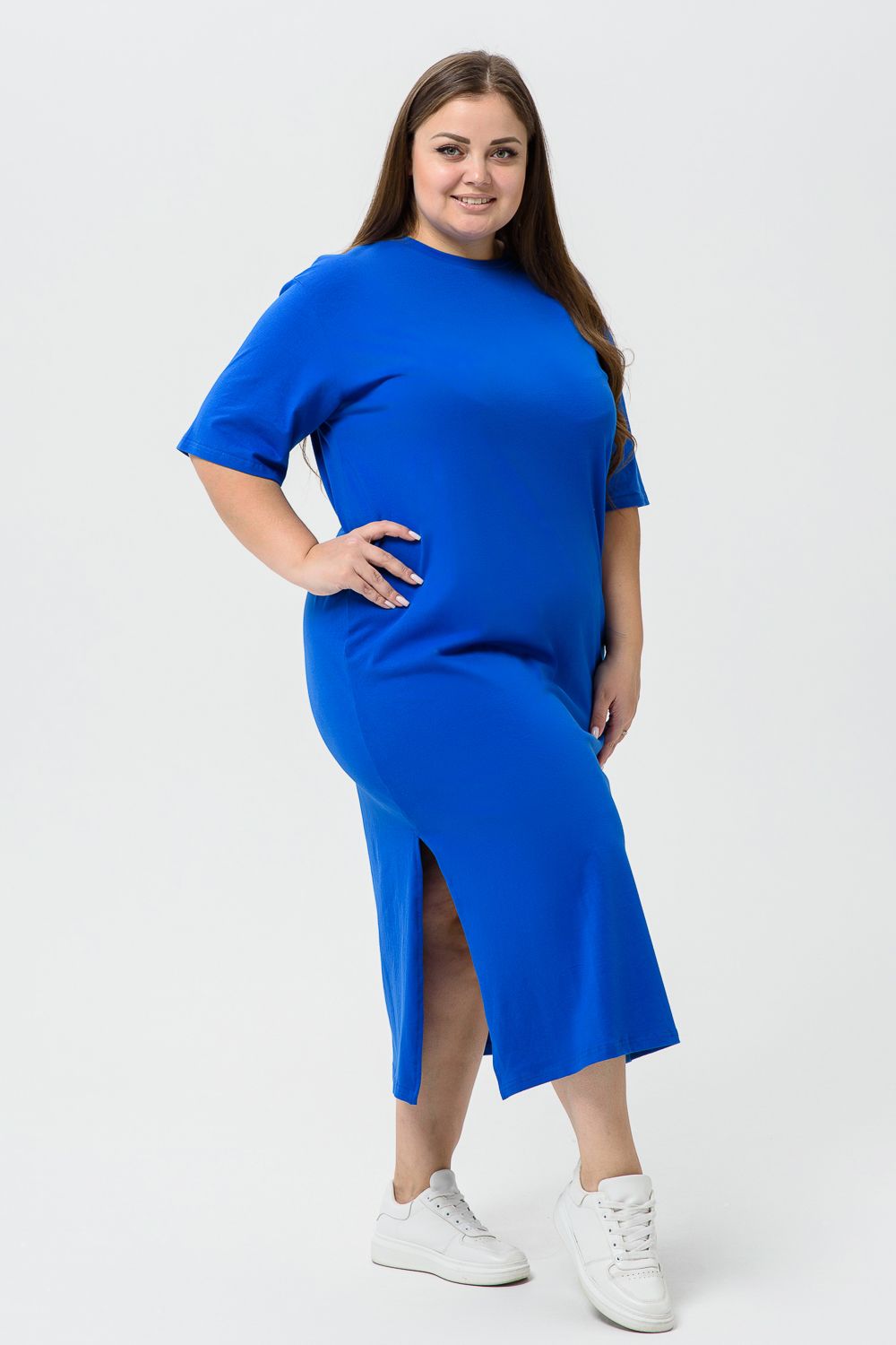 Платье-футболка - хит сезона! Свободное и комфортное - идеально решение для любой фигуры. Изготовленное из натурального хлопка, оно не только приятно на ощупь, но и гарантирует легкость и прохладу даже в самые жаркие дни.