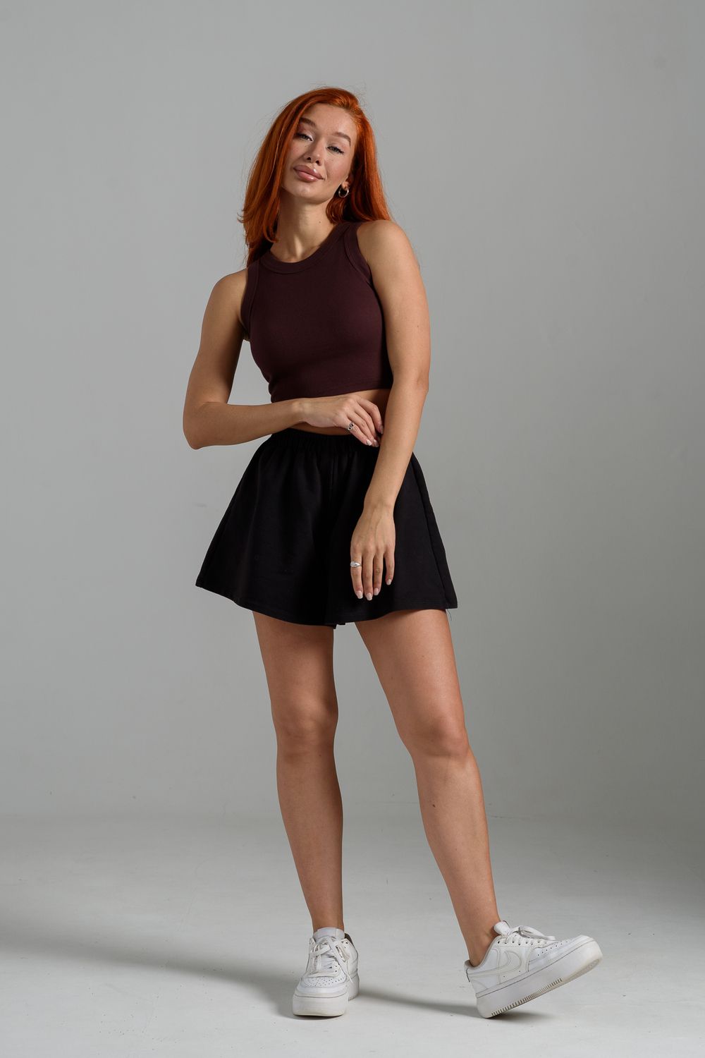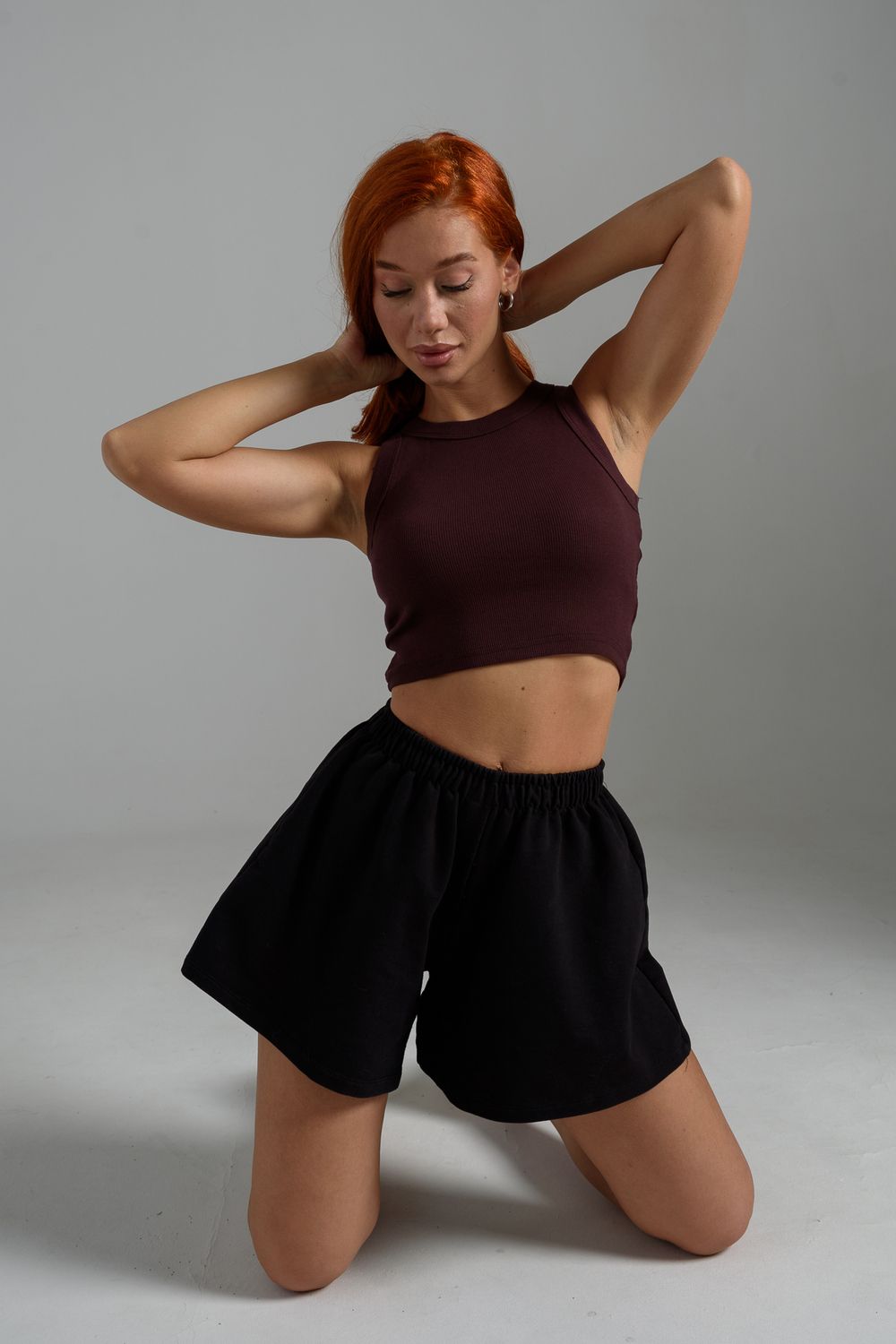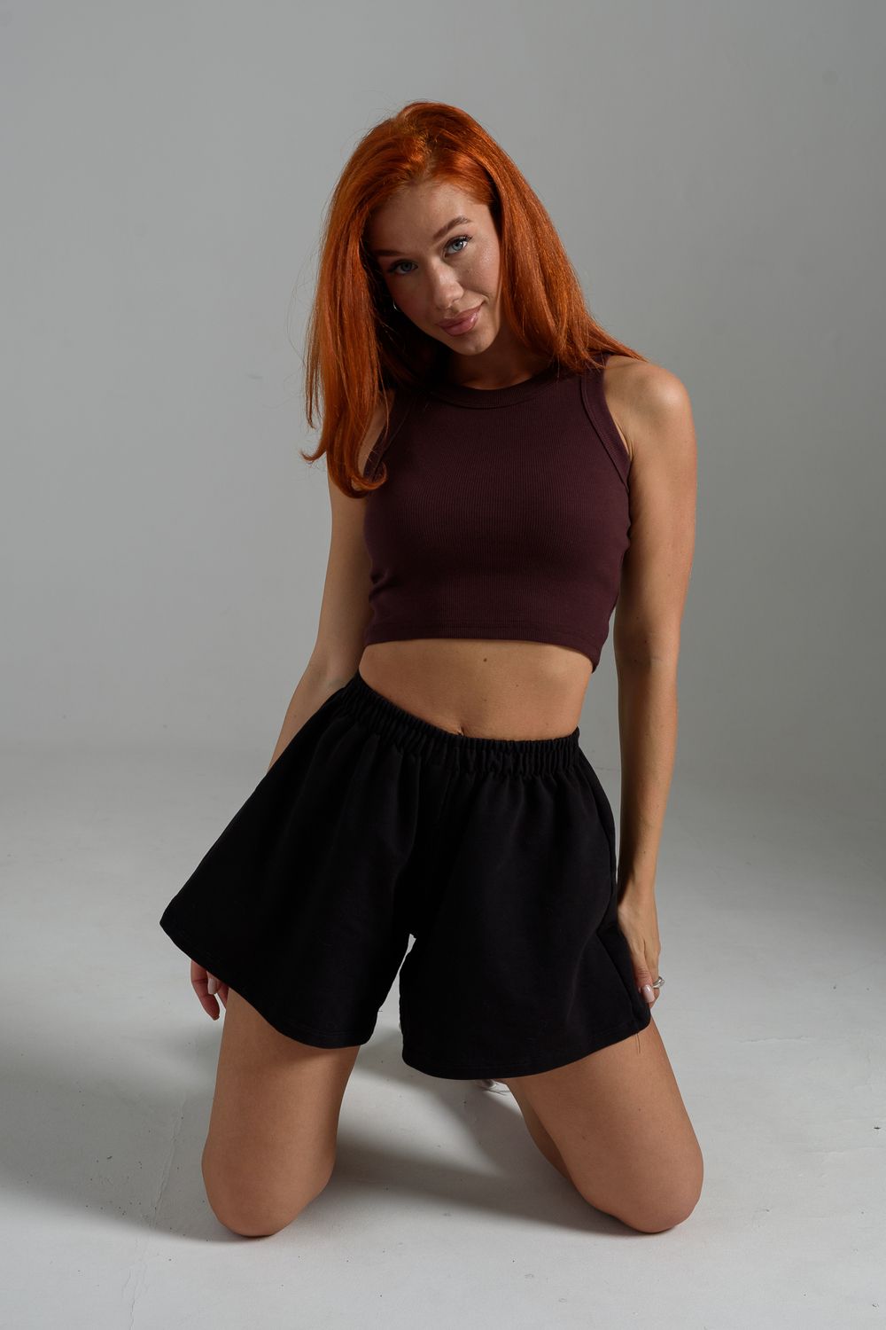 Базовый хлопковый топ укороченной длины. Выполнен из фактурной ткани в рубчик с добавлением лайкры, благодаря этому топ после стирки возвращается в прежнюю форму. Облегающий крой отлично садится по фигуре, подчеркивая её достоинства. Круглая горловина, широкие бретели, не просвечивает, топ максимально комфортный в носке.