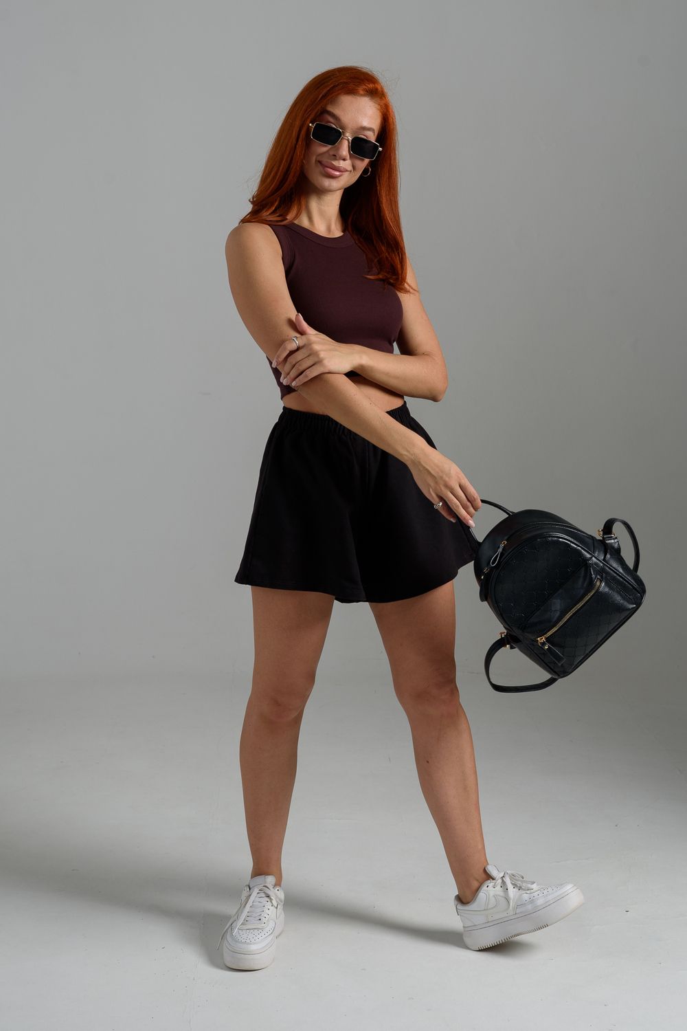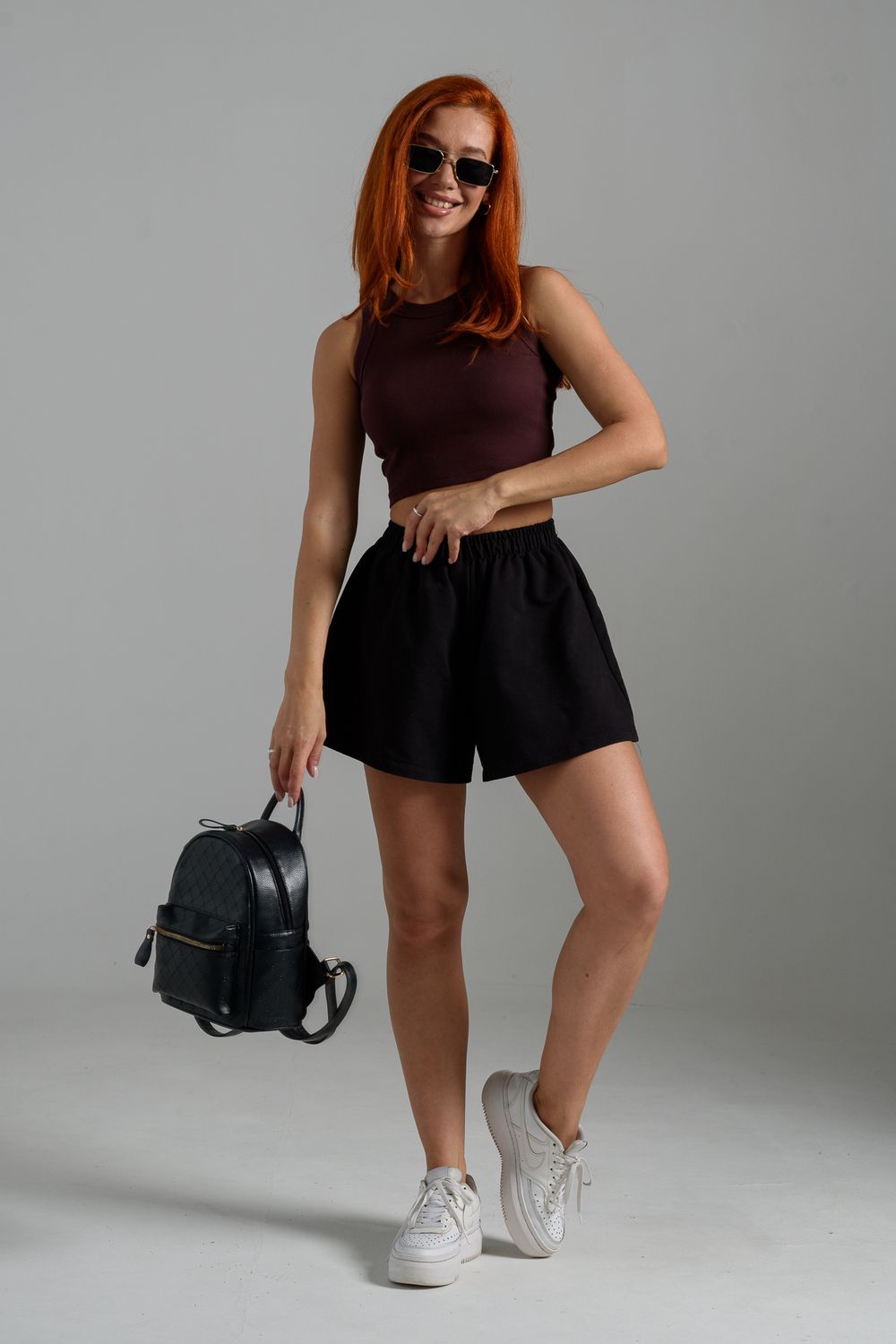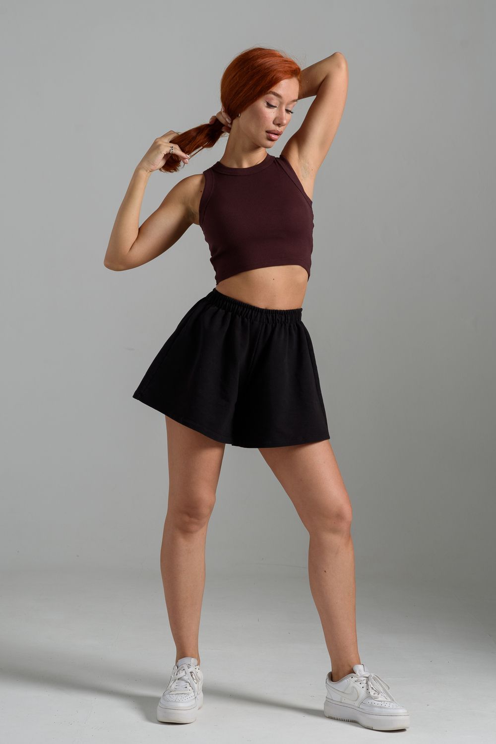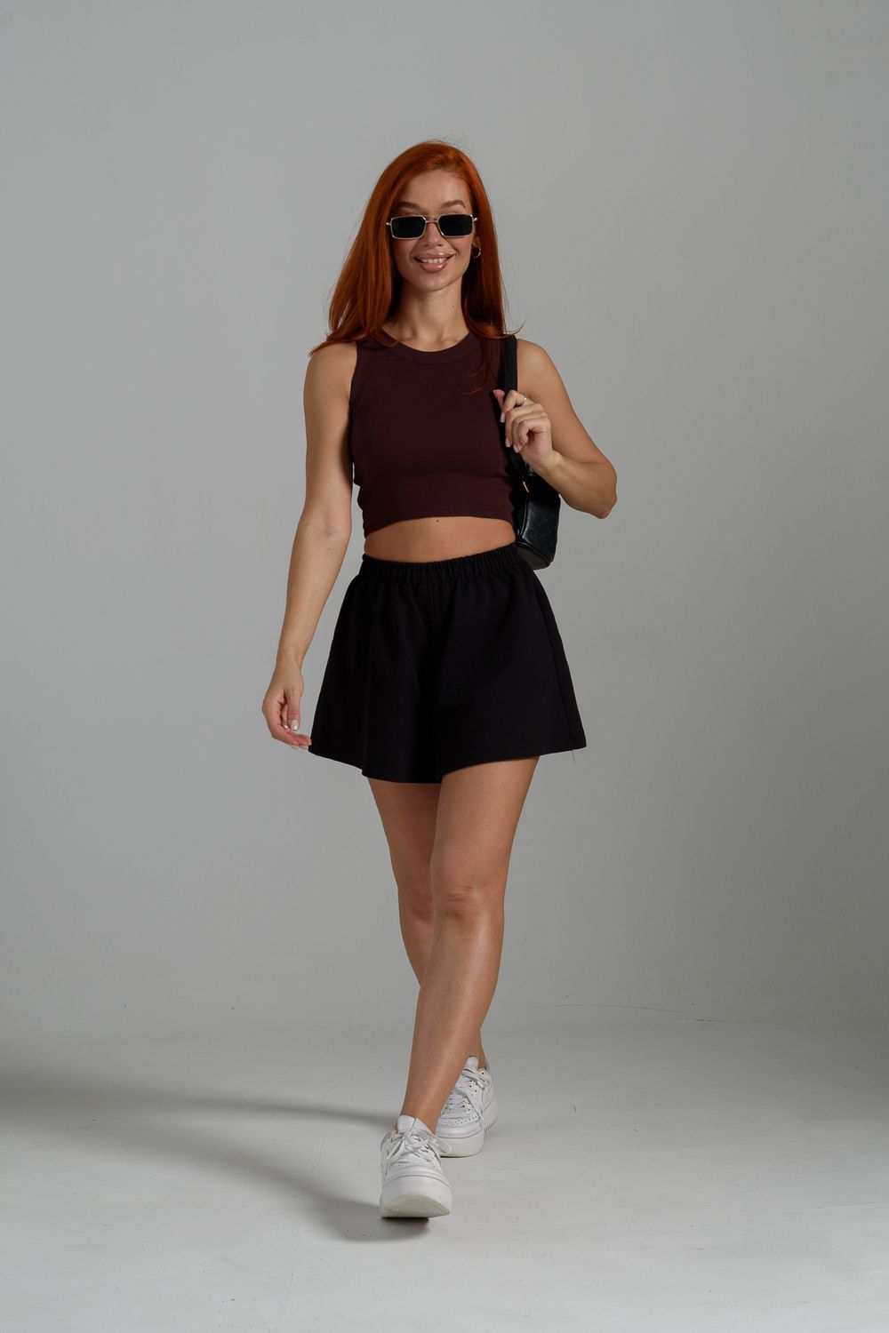 Базовый хлопковый топ укороченной длины. Выполнен из фактурной ткани в рубчик с добавлением лайкры, благодаря этому топ после стирки возвращается в прежнюю форму. Облегающий крой отлично садится по фигуре, подчеркивая её достоинства. Круглая горловина, широкие бретели, не просвечивает, топ максимально комфортный в носке.