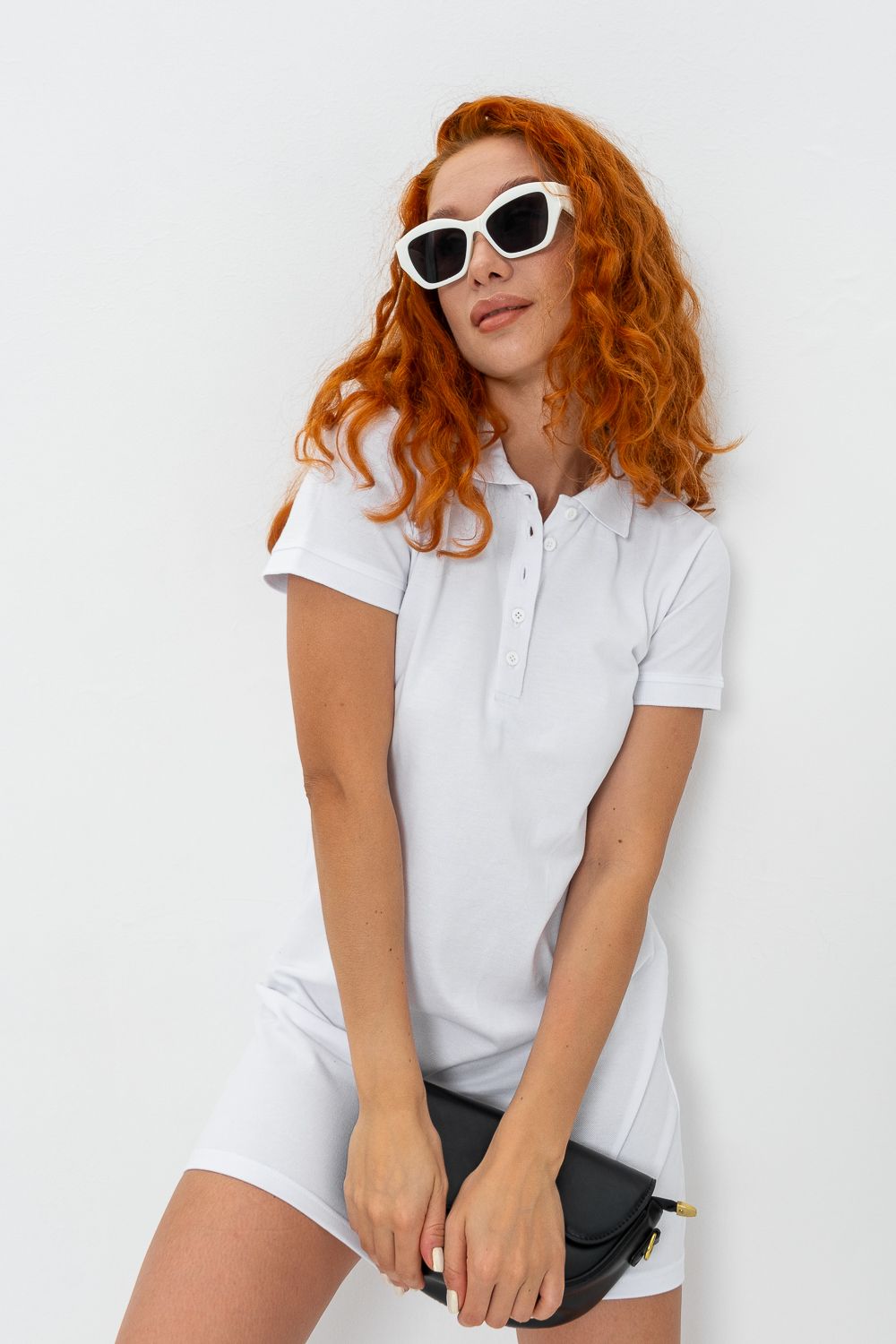 Отличный вариант для жаркого лета - модное платье-поло. Платье имеет отложной ворот и короткий рукав. Кроме того, вверху имеются акцентные пуговицы в цвет платья. Комфортная длина чуть выше колена и прямой крой делает это платье универсальным. Стильное и модное платье подойдет женщинам и девушкам разных возрастов. Хлопок обладает свойствами воздухопроницаемости, что так необходимо в жаркую весеннюю или летнюю погоду. Это изделие прекрасно сочетается как со спортивной обувью, так с классическими туфлями и балетками. На более прохладную погоду можно создавать многослойные образы, сочетая платья с другой одеждой. Это отличный вариант на повседневную основу на работу в офис, прогулки или учебу. Благодаря достаточному свободному не обтягивающему прилеганию в области талии оно является максимально удобным и комфортным. Плотность 190гр/куб.м.