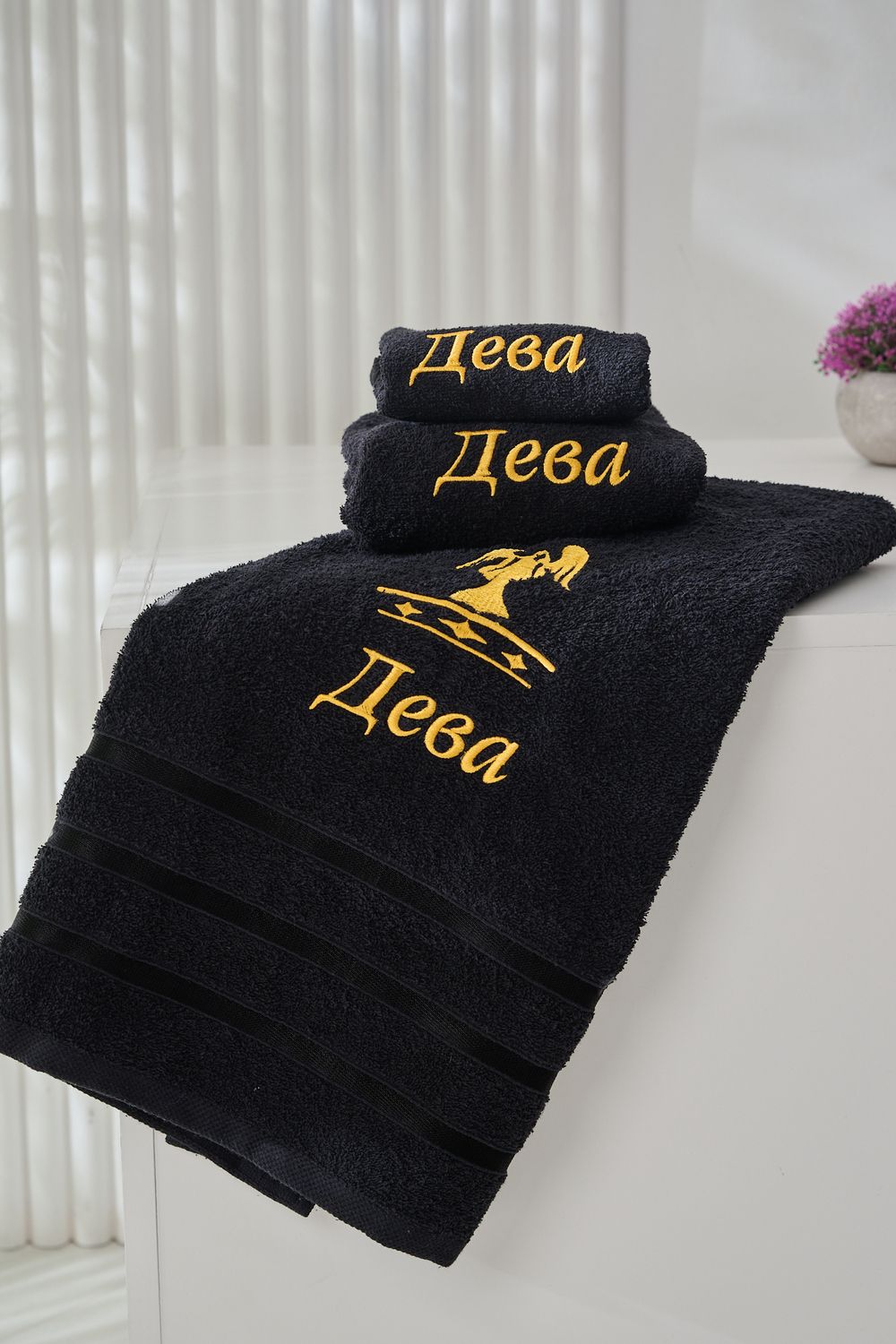 14418/10 Знаки зодиака полотенце махровое плотность 350гр - черный+дева
