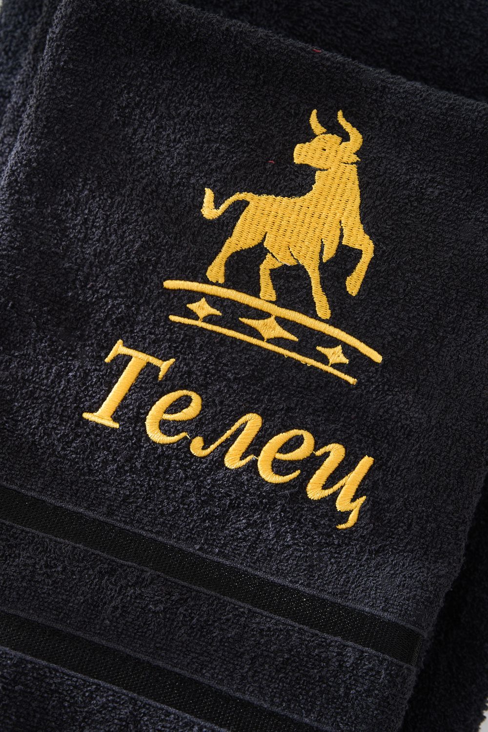 14418/10 Знаки зодиака полотенце махровое плотность 350гр - черный+телец