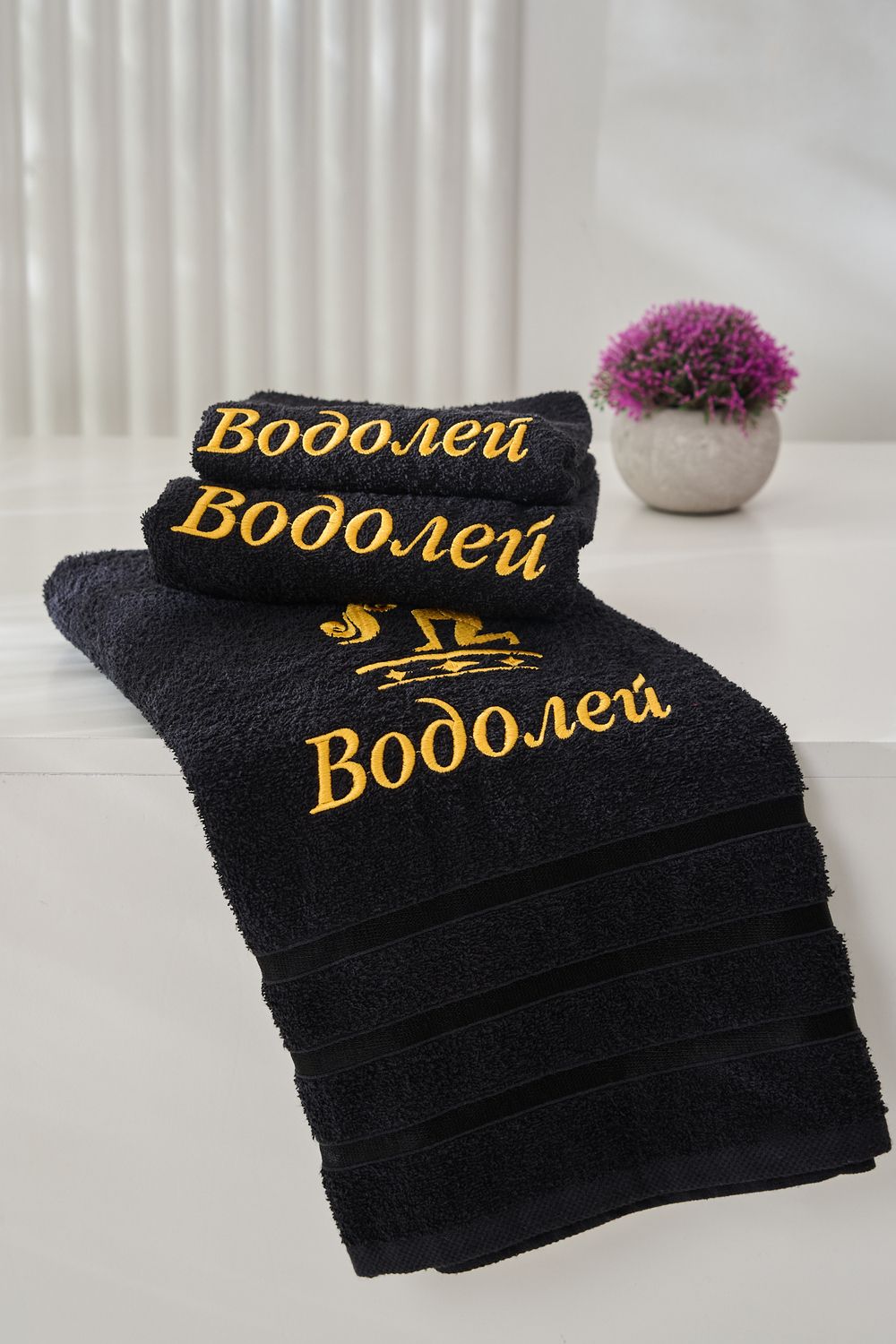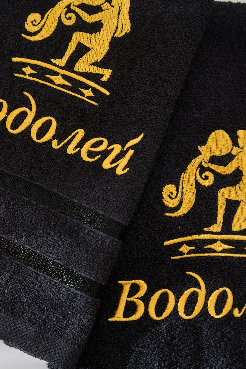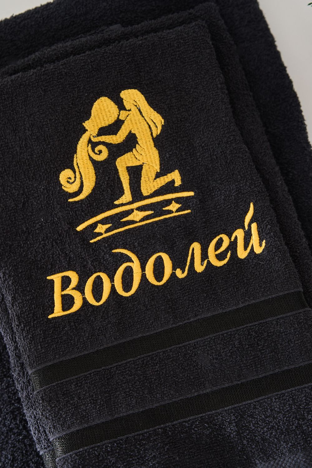 14418/10 Знаки зодиака полотенце махровое плотность 350гр - черный+водолей