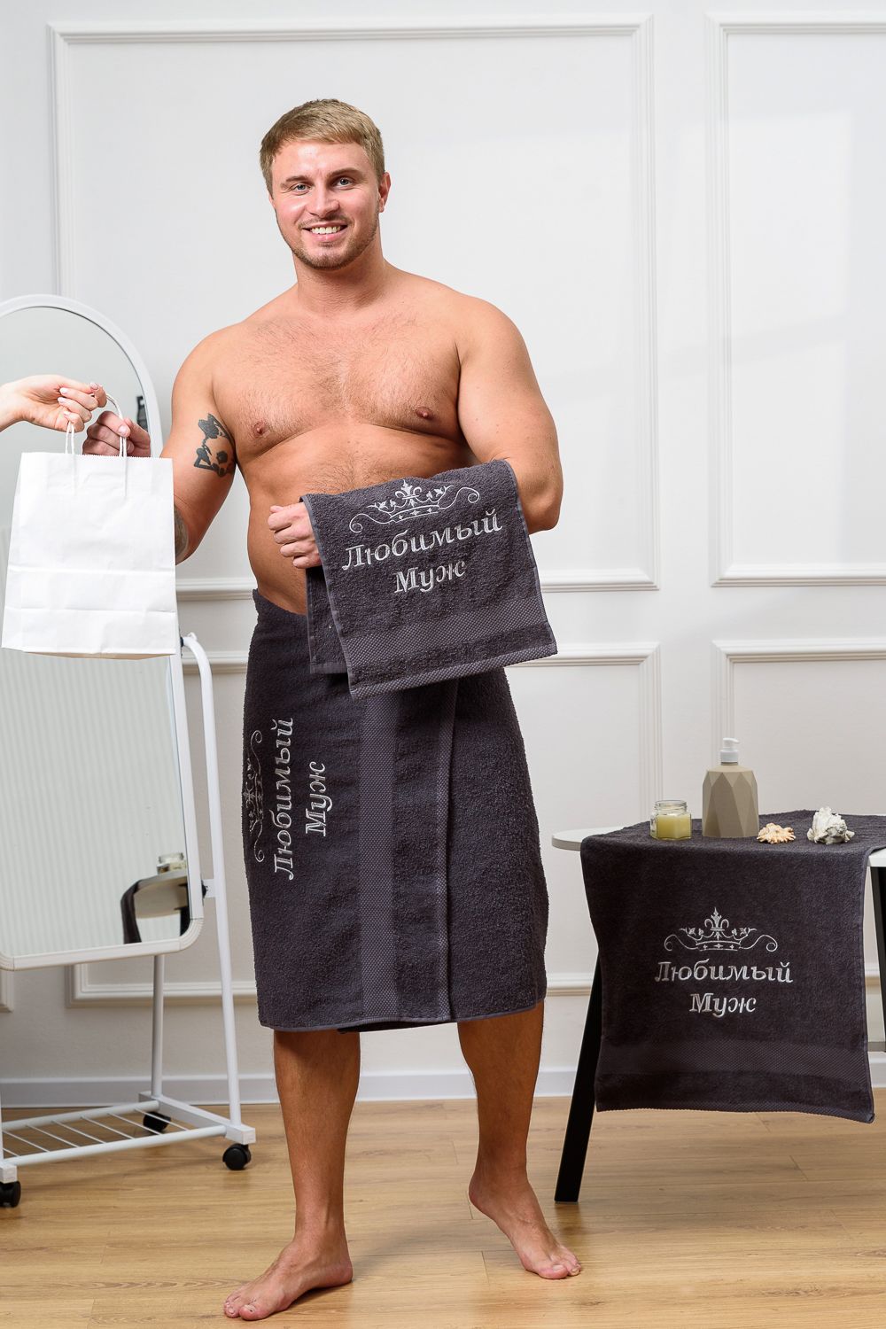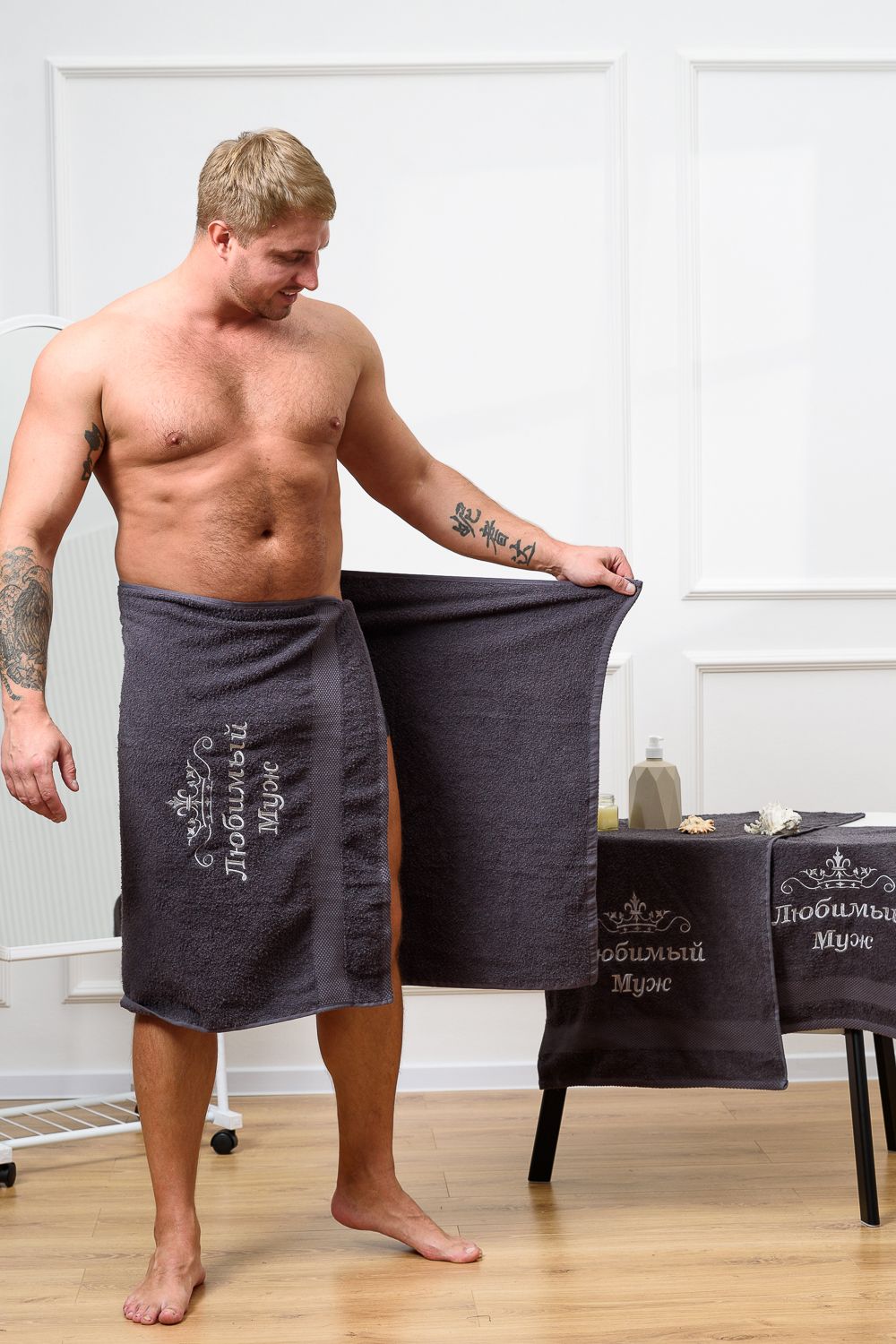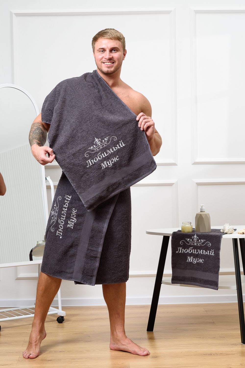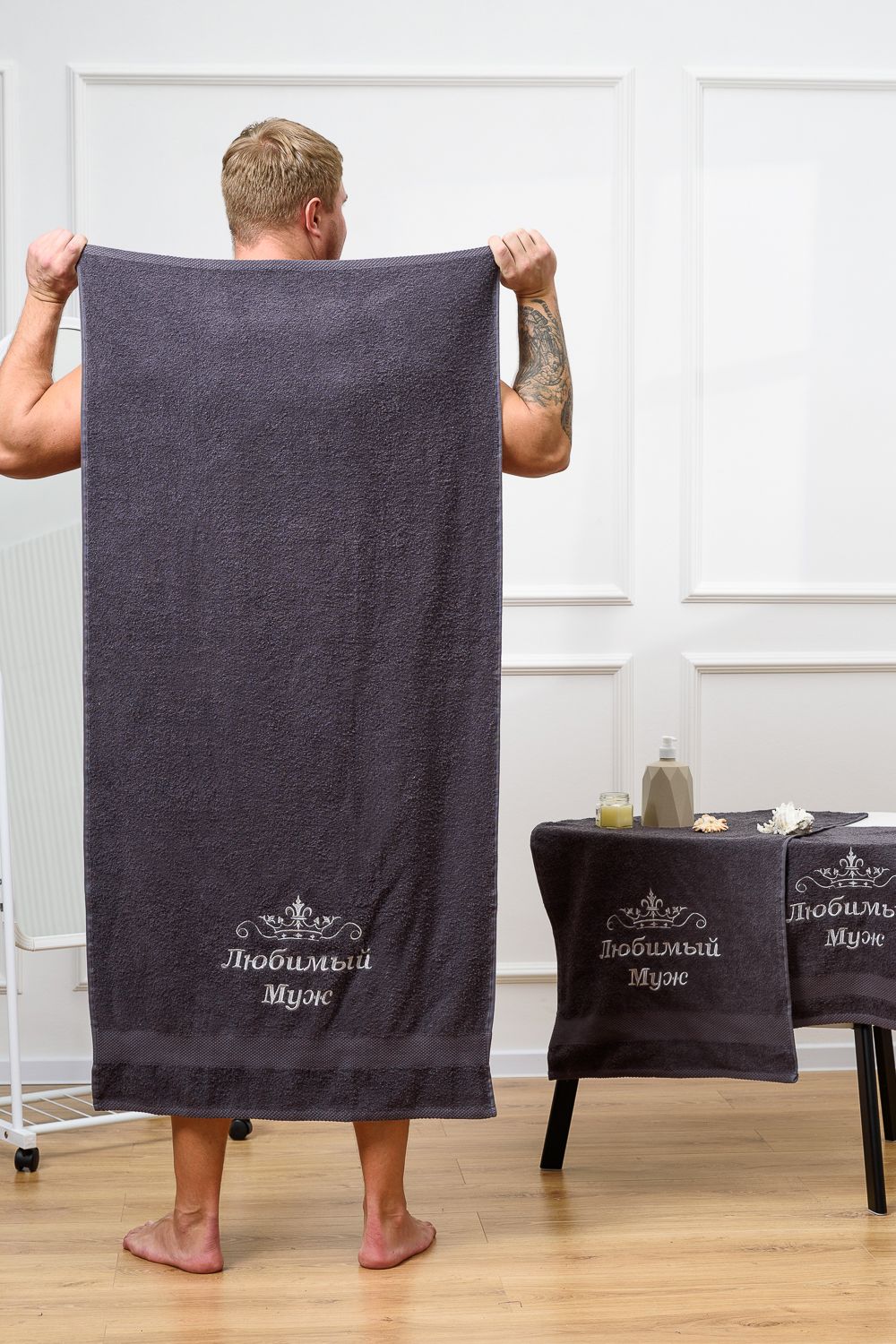 14419/3 Любимый муж полотенце махровое плотность 400гр - графит