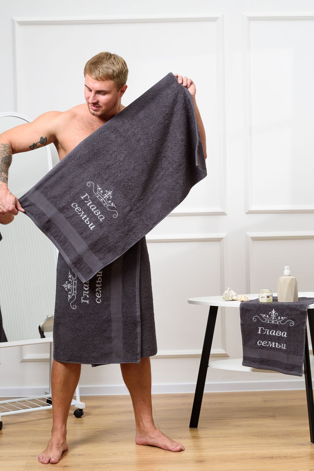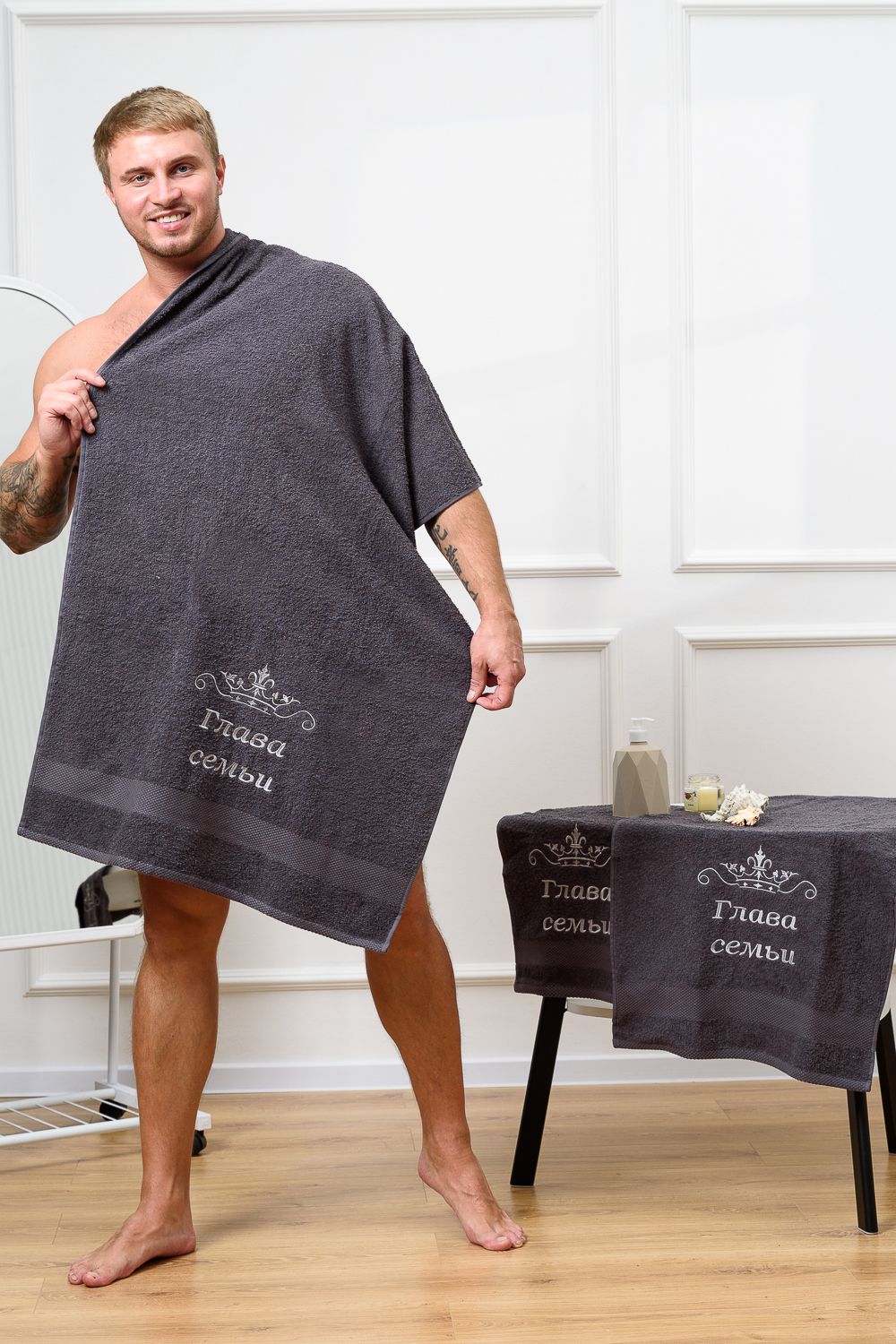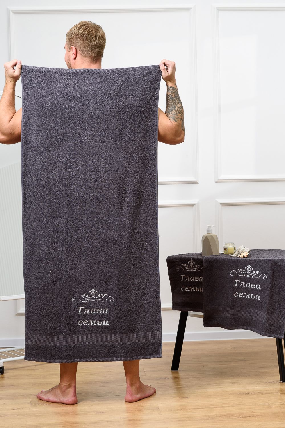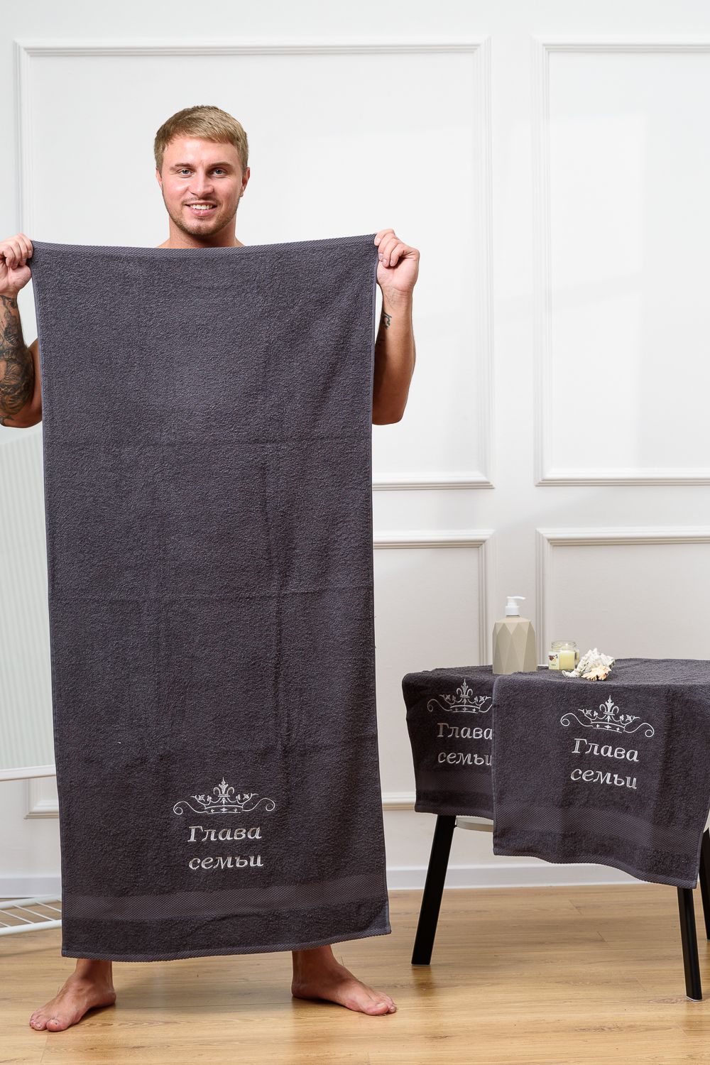 14419/4 Глава семьи полотенце махровое плотность 400 гр - графит