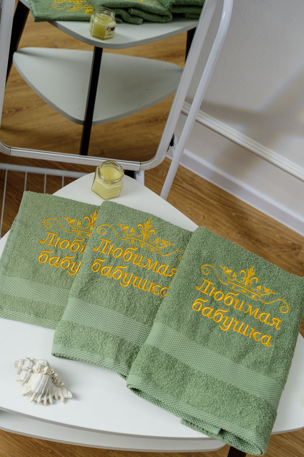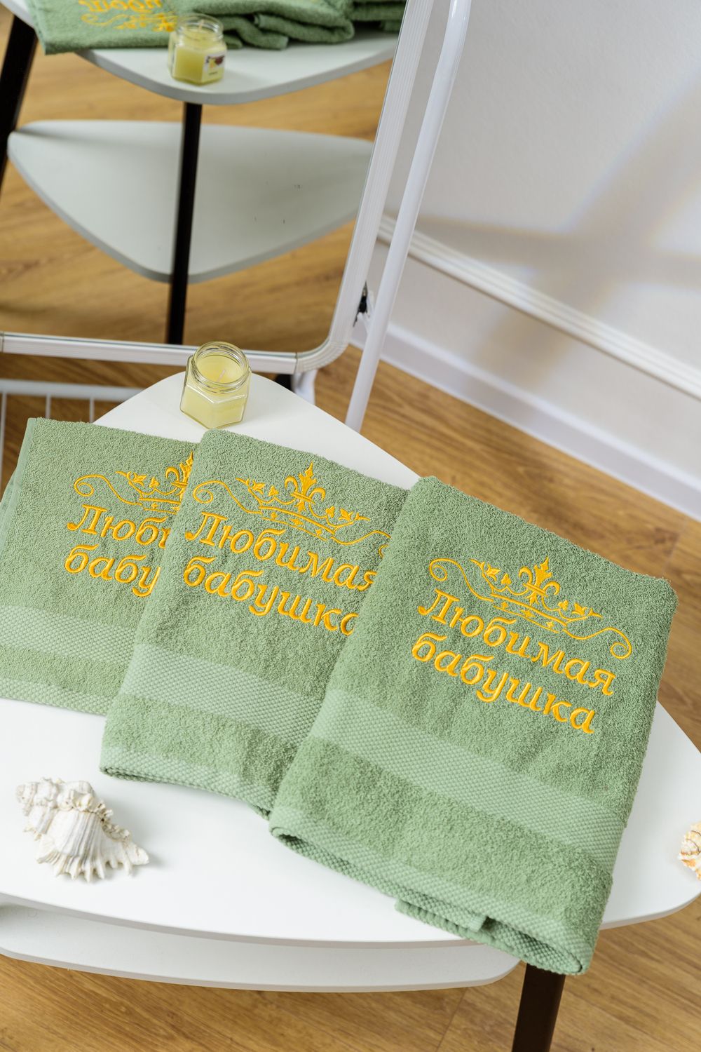 14419/5 Любимая бабушка полотенце махровое плотность 400гр - хаки