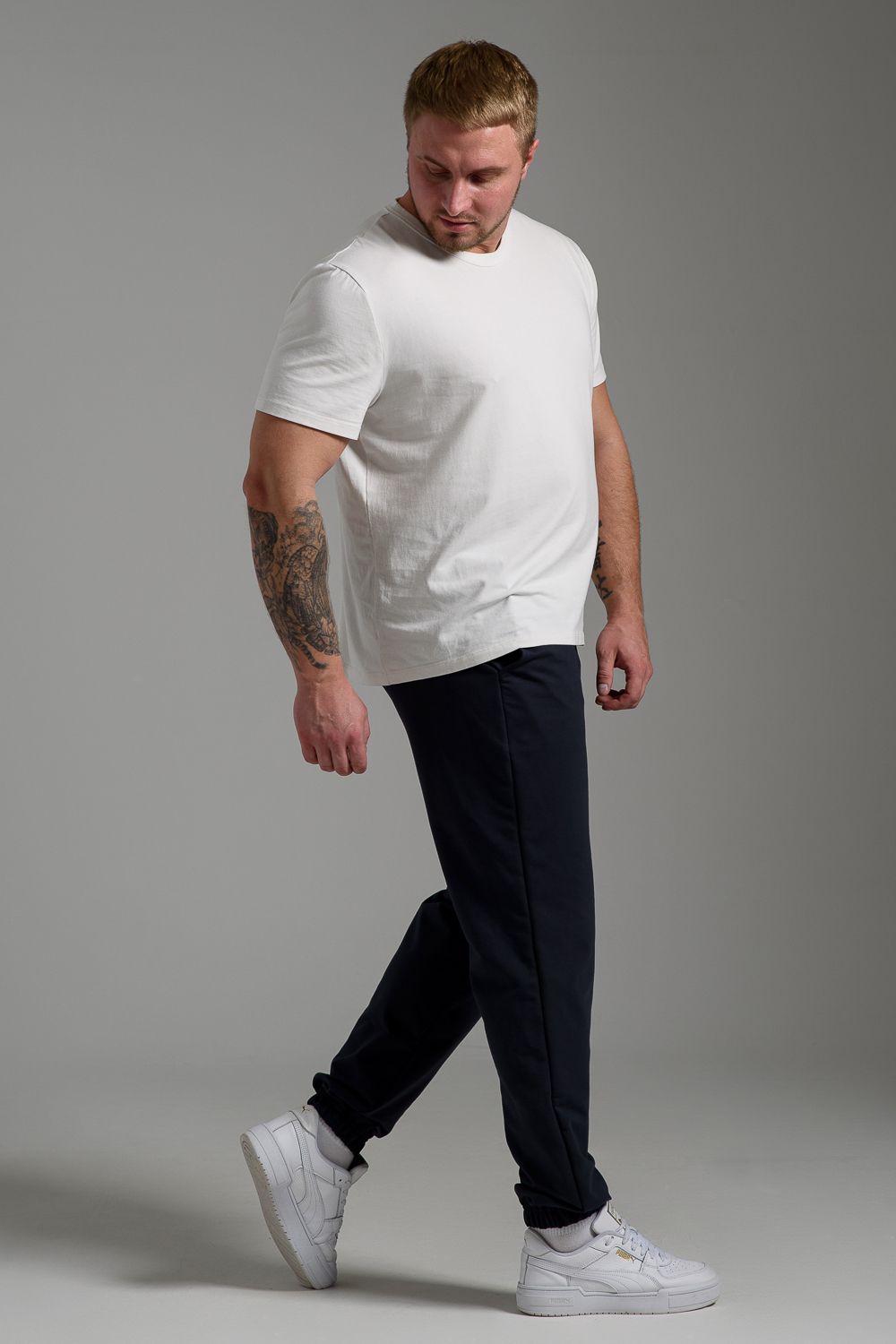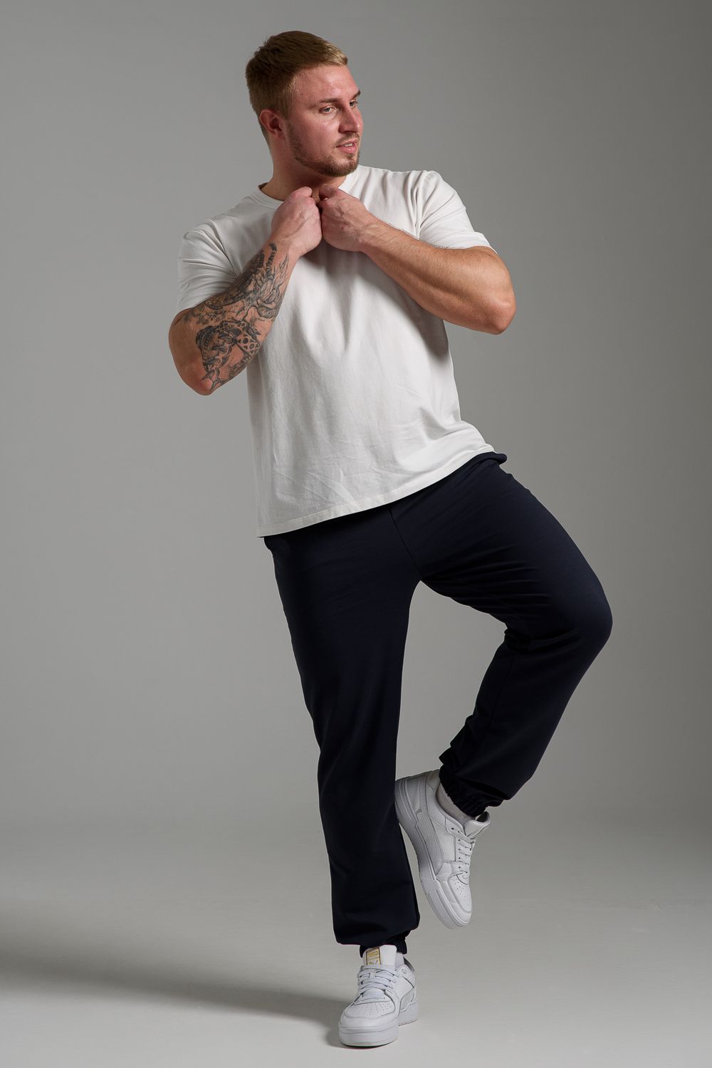 Мужские спортивные штаны — смелый выбор для тех, кто привык быть на волне моды и комфорта. Эти штаны не просто одежда, а настоящий вызов скучной повседневности. Сделаны из качественного хлопка, они сочетают в себе плотность, мягкость и отличную воздухопроницаемость. Этот материал не скатывается, не вытягивается и всегда выглядит как новый — готов выдержать любые ваши приключения. Их свободный крой сверху с зауженными манжетами внизу создает стильный силуэт, который подчеркнет вашу уверенность и индивидуальность.