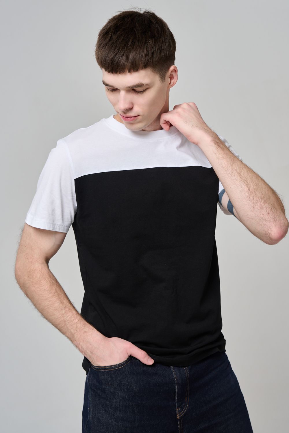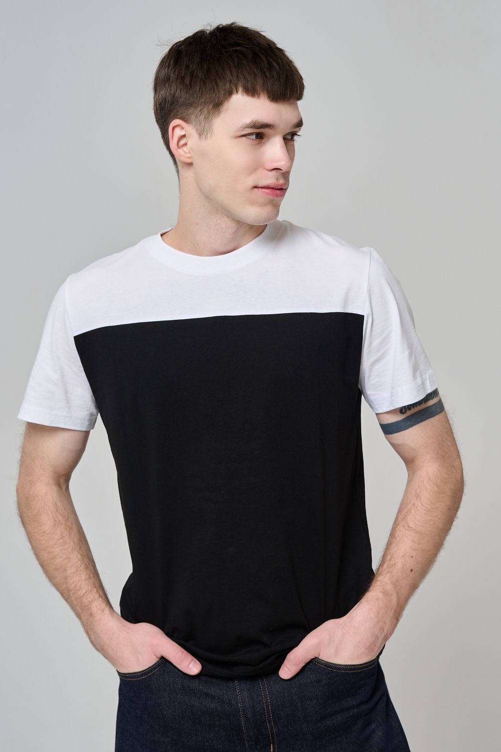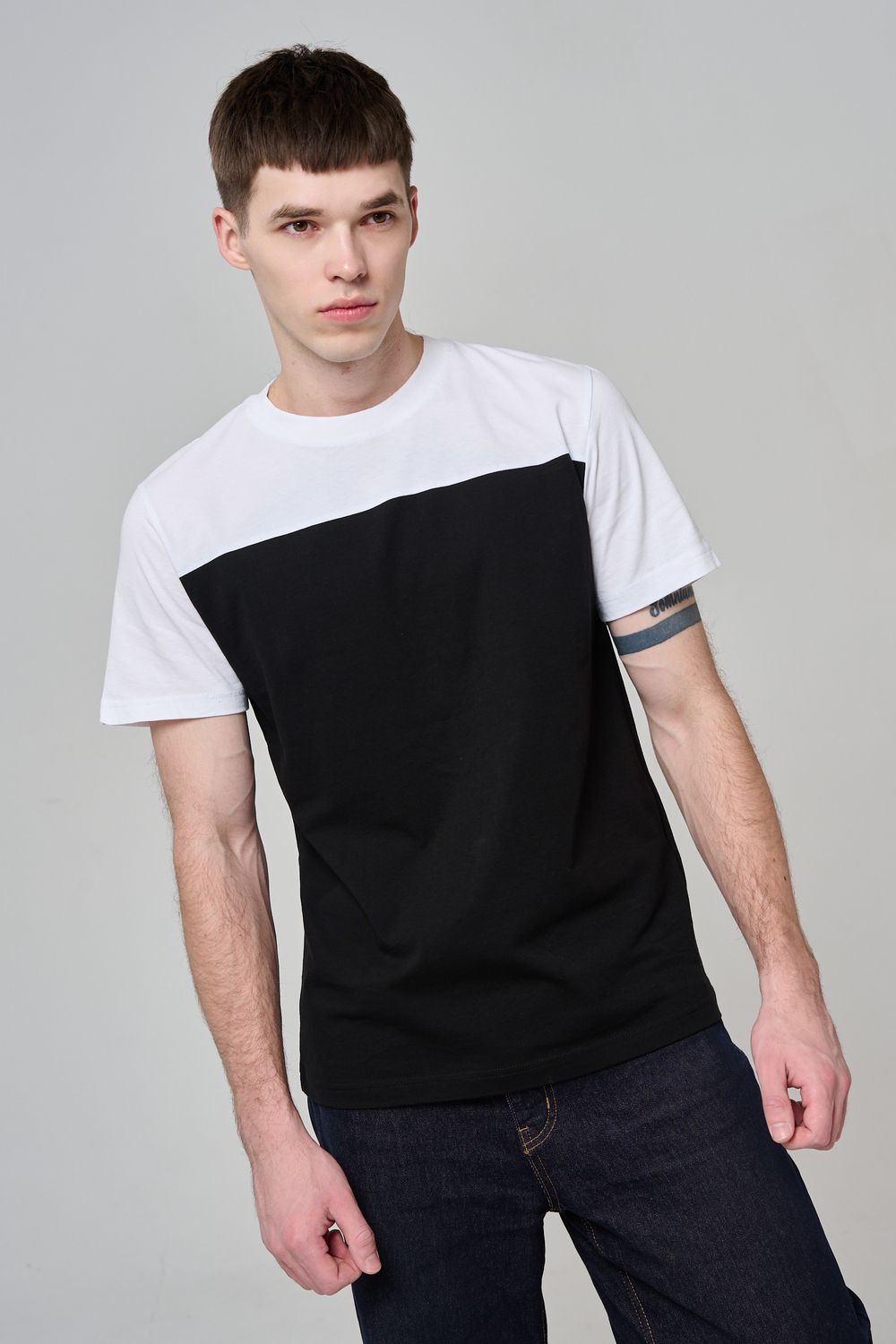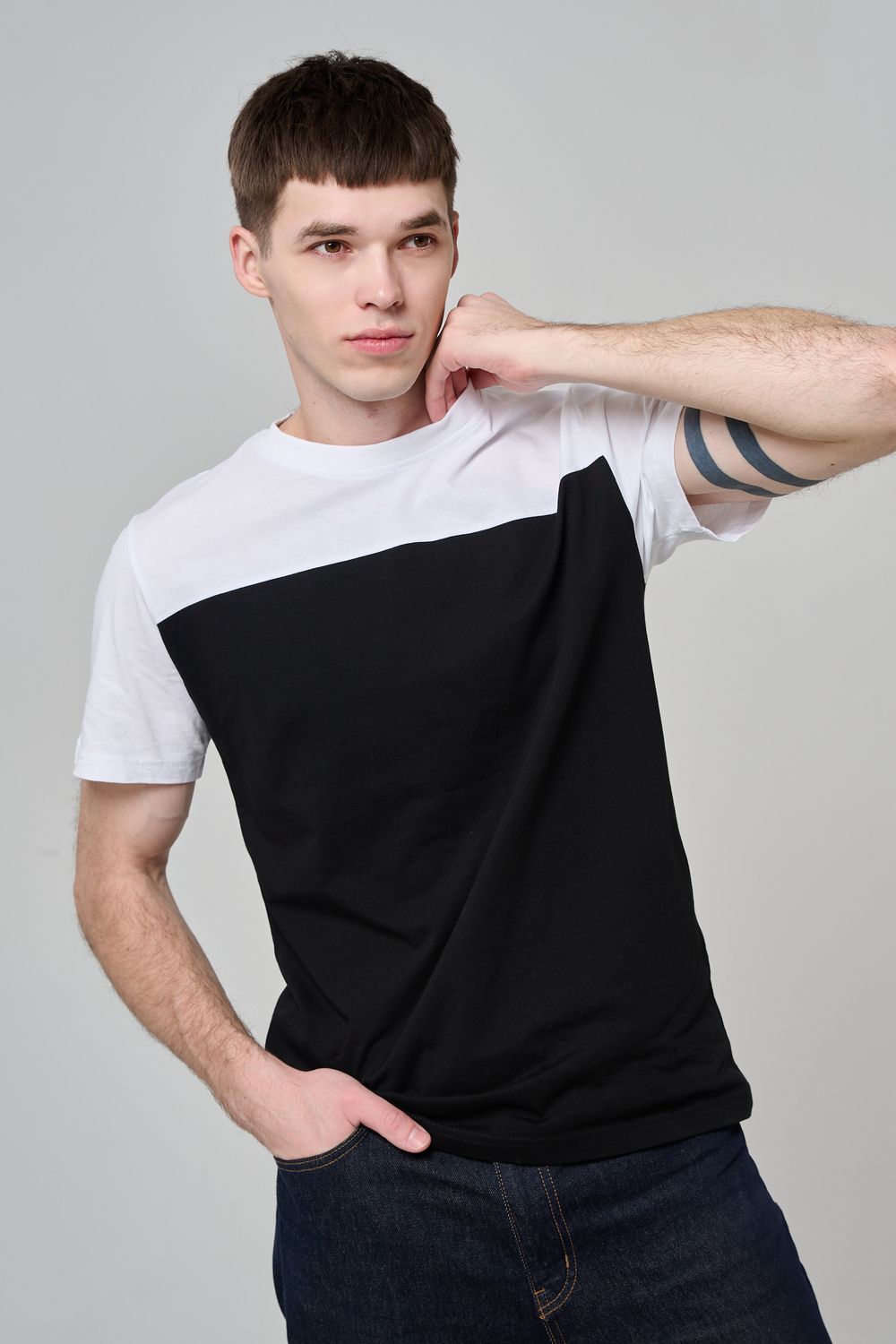 14482 футболка мужская - белый+черный