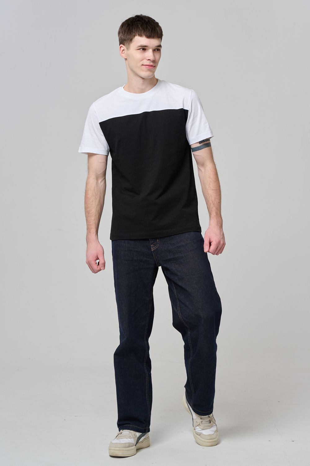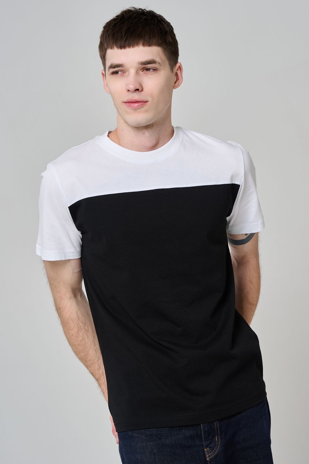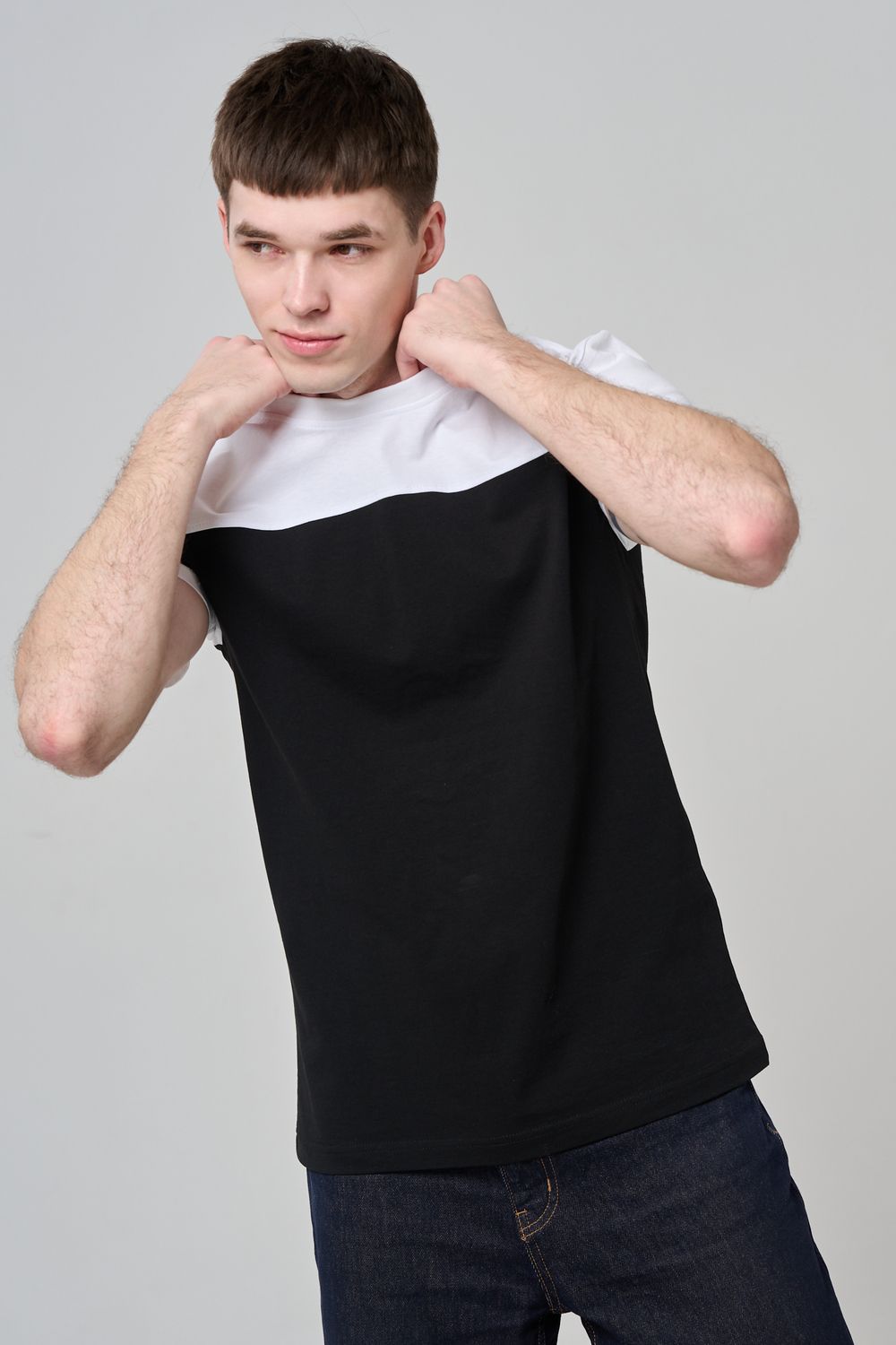 Современные мужские футболки прямого кроя, выполненные из мягкой и приятной на ощупь ткани. Двухцветный дизайн с контрастной вставкой на плечах и рукавах придаёт моделям стильный и динамичный вид. Классический круглый вырез горловины обеспечивает комфорт посадки. Идеальный выбор для повседневного гардероба, легко сочетаются с джинсами и брюками, подойдут как для активного отдыха, так и для городской прогулки.