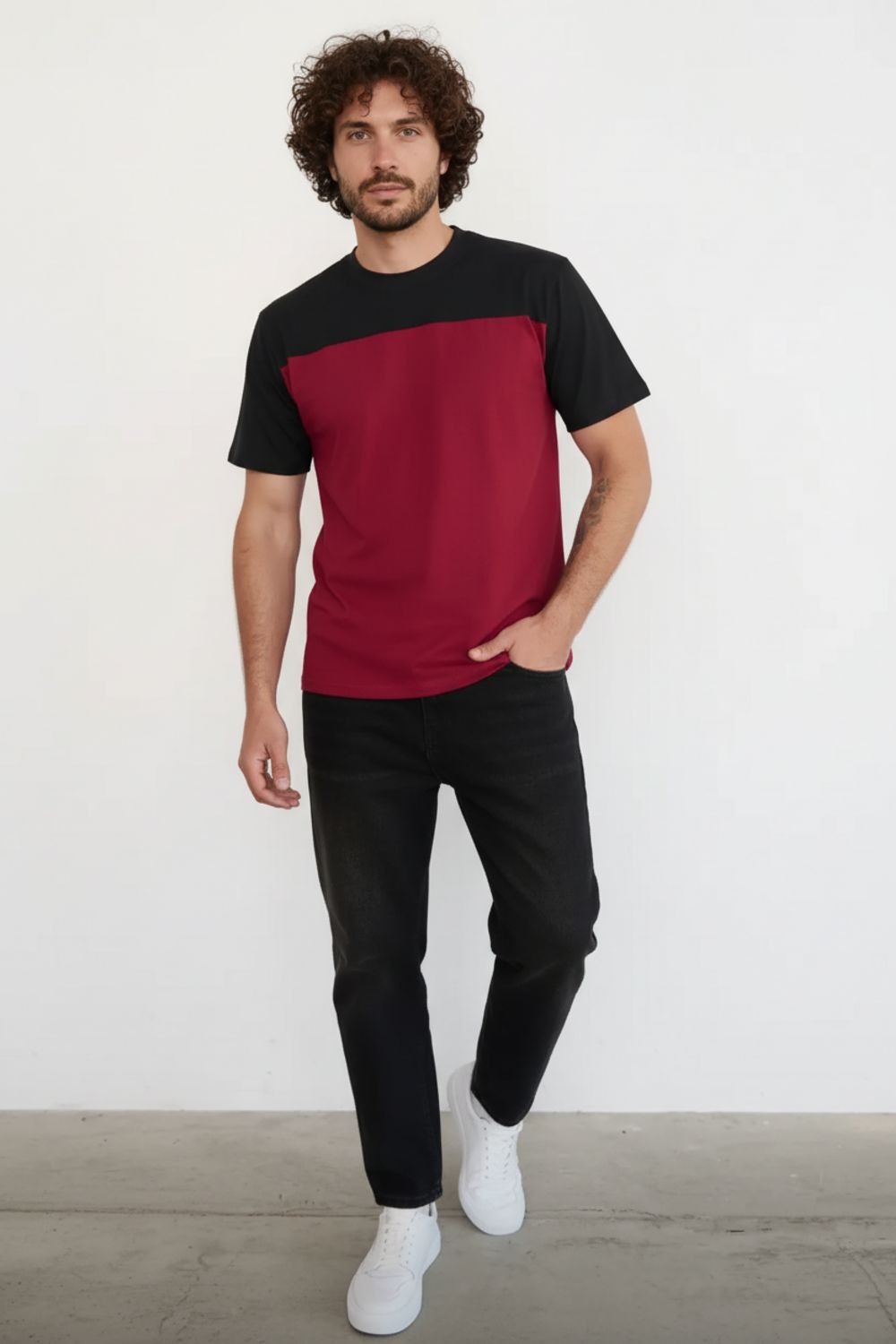 14482 футболка мужская - бордо+черный