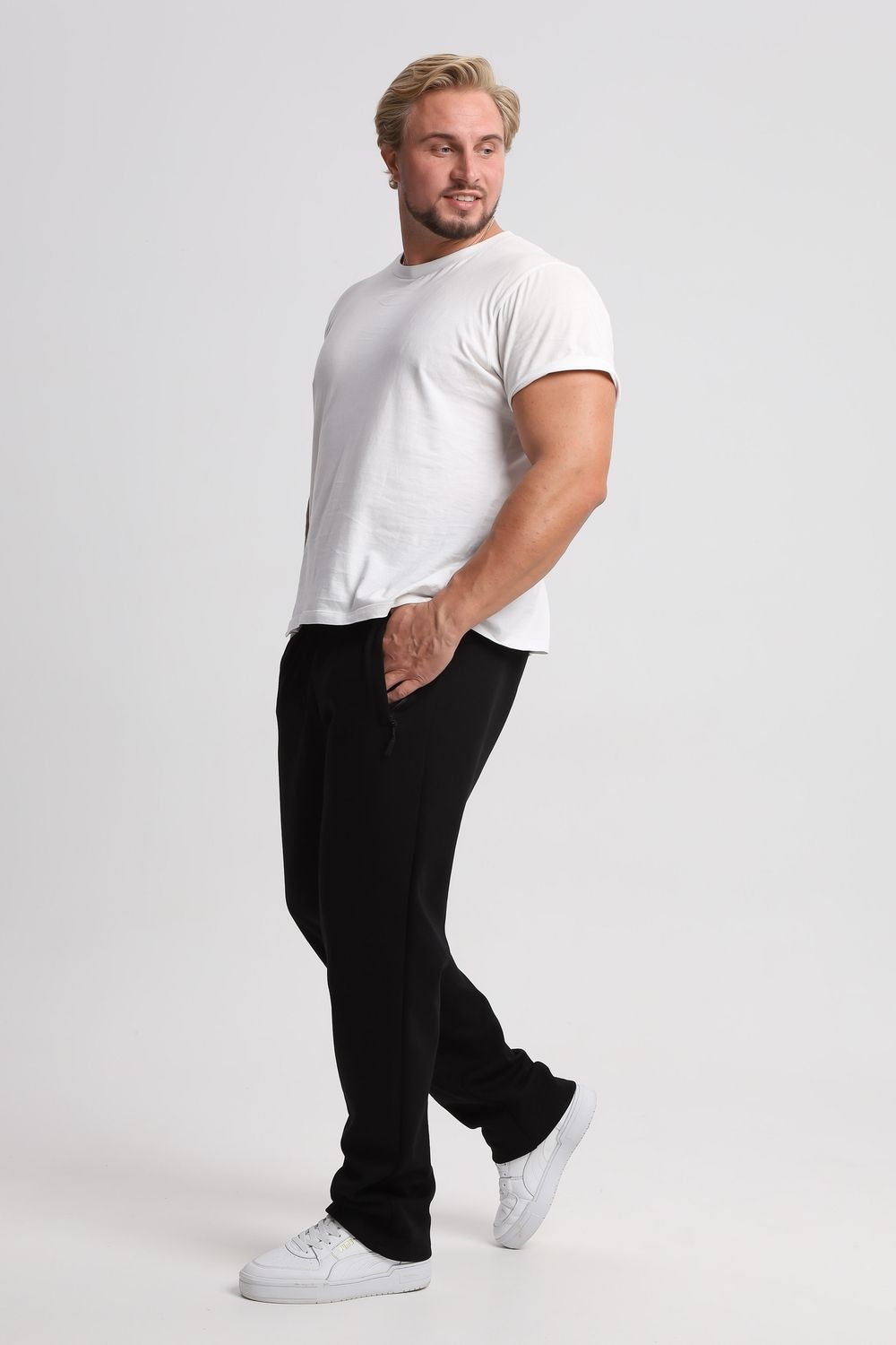 Утепленные мужские брюки из трикотажа с начесом, выполнены из качественного материала. Пояс на резинке со шнурком, что позволяет регулировать объем и посадку, карманы по бокам на молнии. Свободный силуэт не сковывает движения, а плотный начес согреет даже в самые холодные дни. Штаны свободного кроя - отличное решение для тех, кто предпочетает удобство и современный актуальный дизайн. Брюки отлично подойдут для прогулок, отдыха, дома.