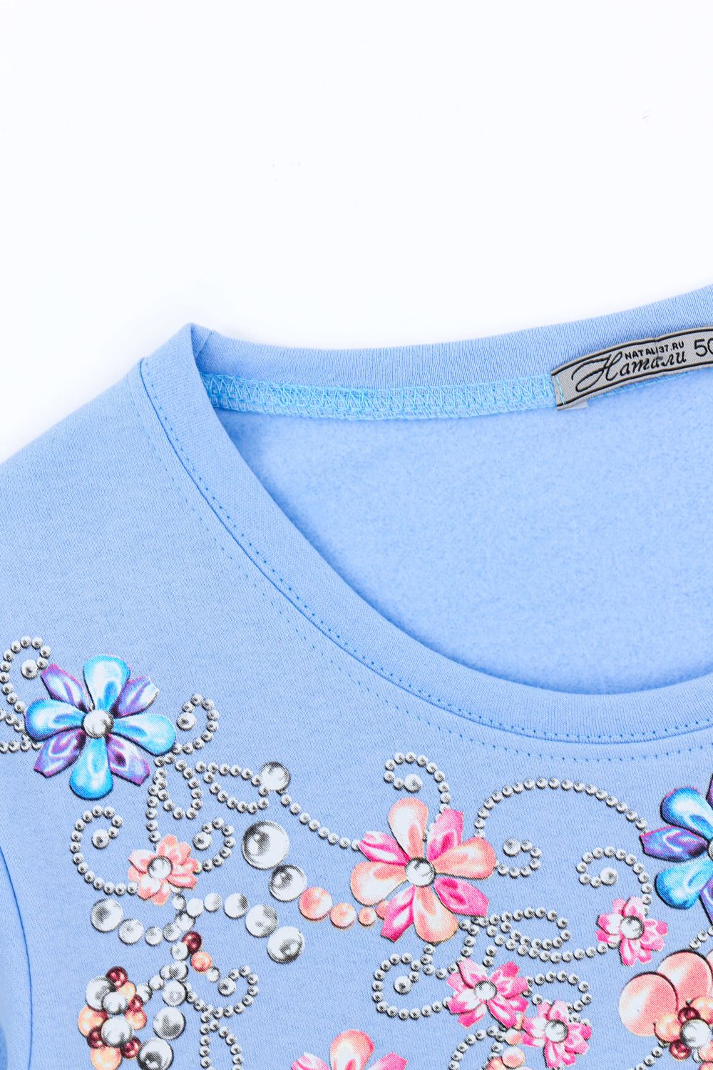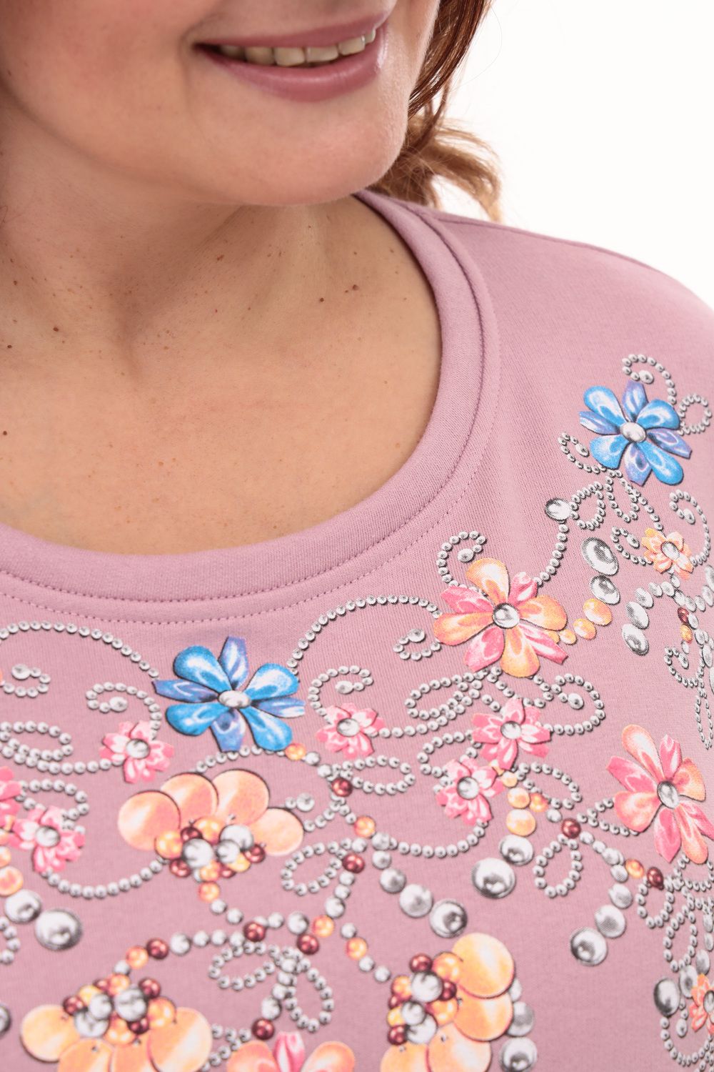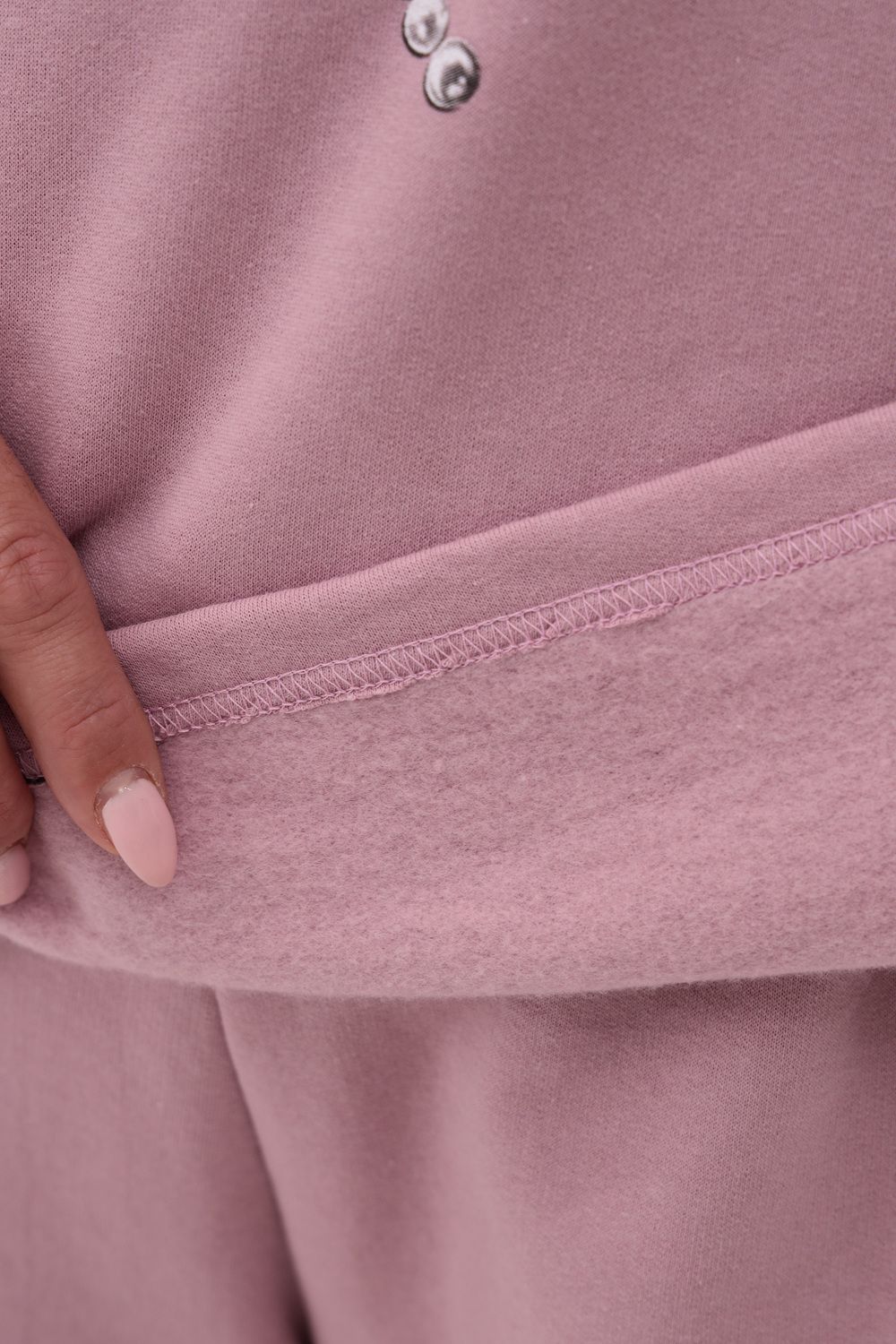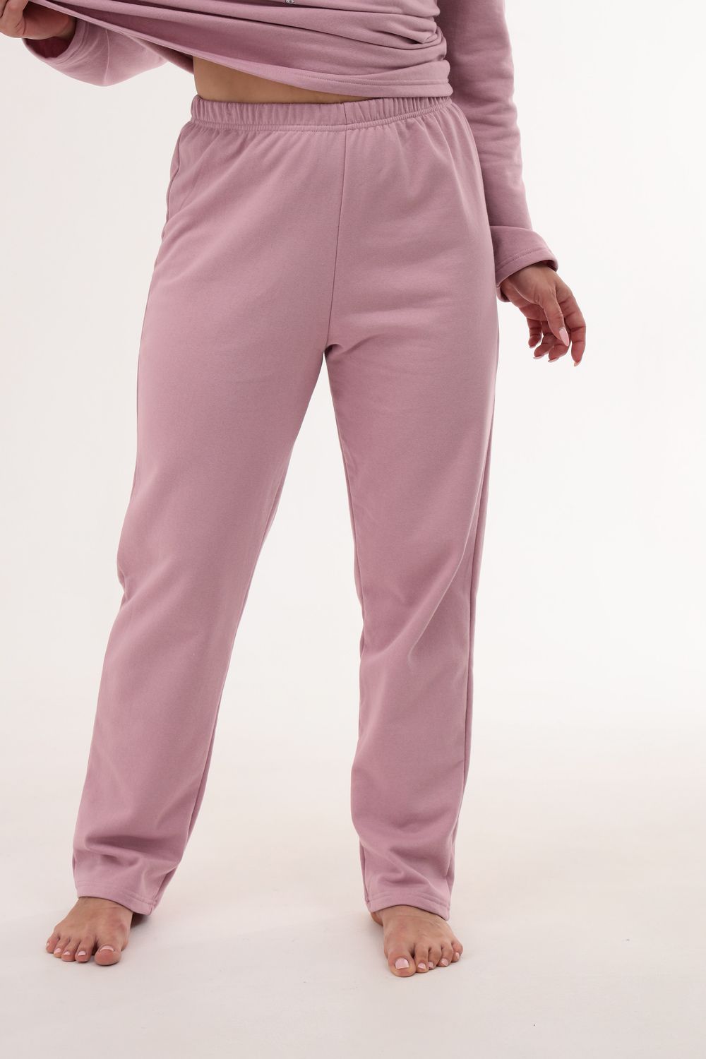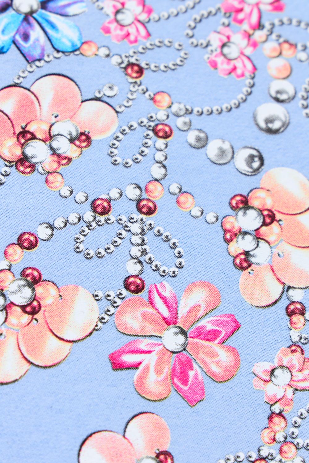 Женская пижама из футера 2-х нитки с начёсом. Дизайн позволяет использовать данную модель как пижаму для сна, так и в качестве костюма для дома. Брюки и лонгслив свободного кроя. Нежный изящный принт в виде россыпи жемчуга и цветов. В измерениях обхвата талии указан размер резинки, которая растягивается без проблем до стандартных измерений фигуры. Очень удобная высокая посадка брюк. Длинные рукава для уюта и тепла.