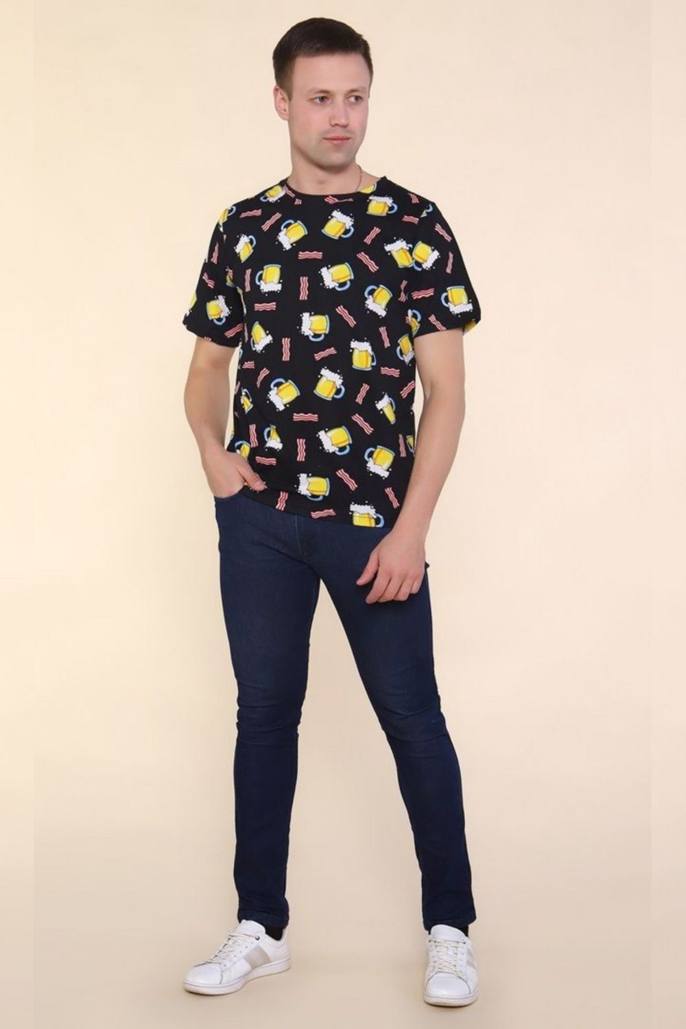 Мужская футболка с рисунком «Пиво» (100% хлопок, набивная кулирка)