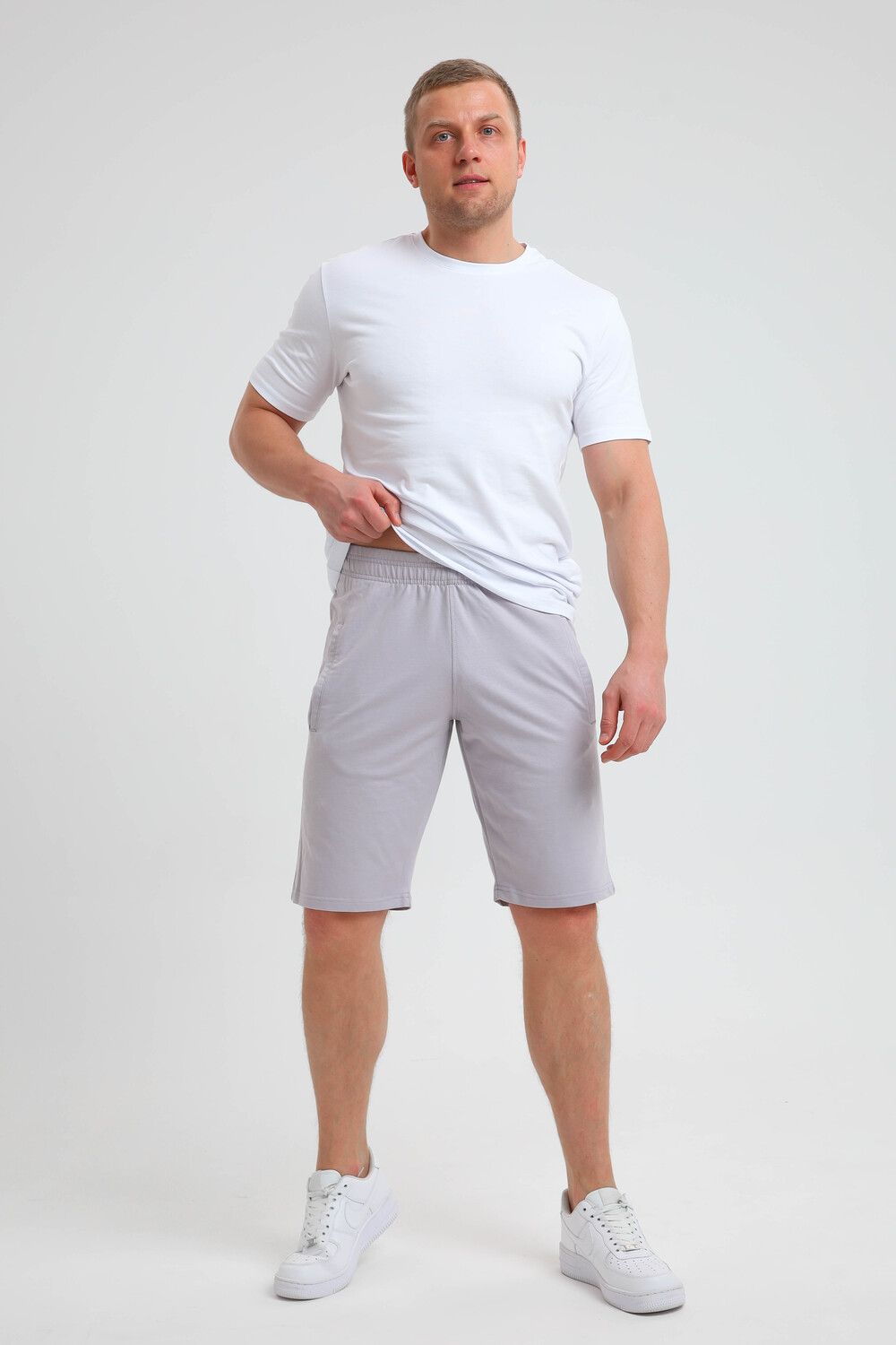 Мужские трикотажные шорты выполнены из хлопка, чтобы обеспечить комфортное ощущение при каждом движении, прекрасно сидят благодаря своему большому размеру и регулируемой посадке, по бокам два кармана с отрезным бочком. Легкая и приятная к телу ткань. Подойдут для повседневной носки, спорта и прогулок.