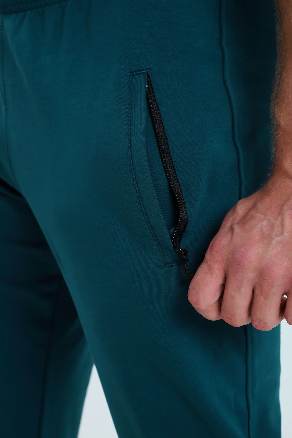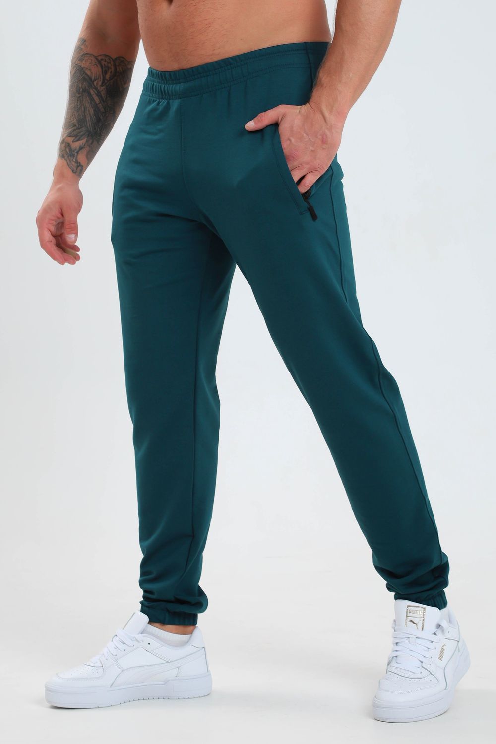 Мужские спортивные брюки, выполнены из качественного, приятного к телу трикотажа. Пояс на резинке, по бокам два кармана на молнии с брелком, низ на резинке. Зауженные штаны незаменимая вещь в гардеробе любого мужчины. Эти удобные брюки подойдут для занятия спортом, для ношения дома или в качестве повседневной одежды.