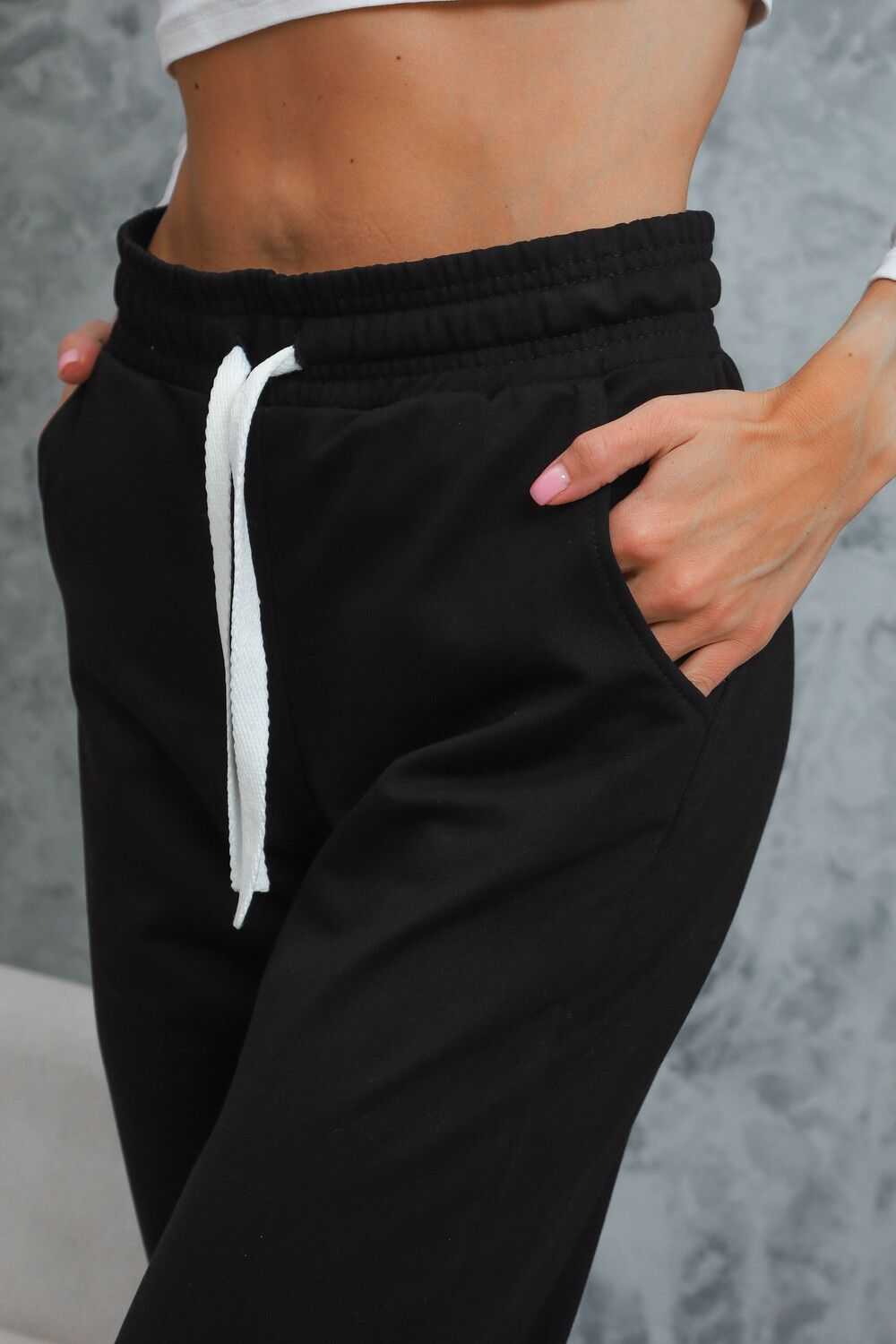 Спортивные женские брюки прямого кроя, удобные, легкие, отлично садятся по фигуре. Пояс на резинке с вставным регулирующимся шнурком. Штаны выполнены из качественного турецкого материала. Отлично подойдут для спорта, прогулок. Очень комфортные в повседневной носке дома.