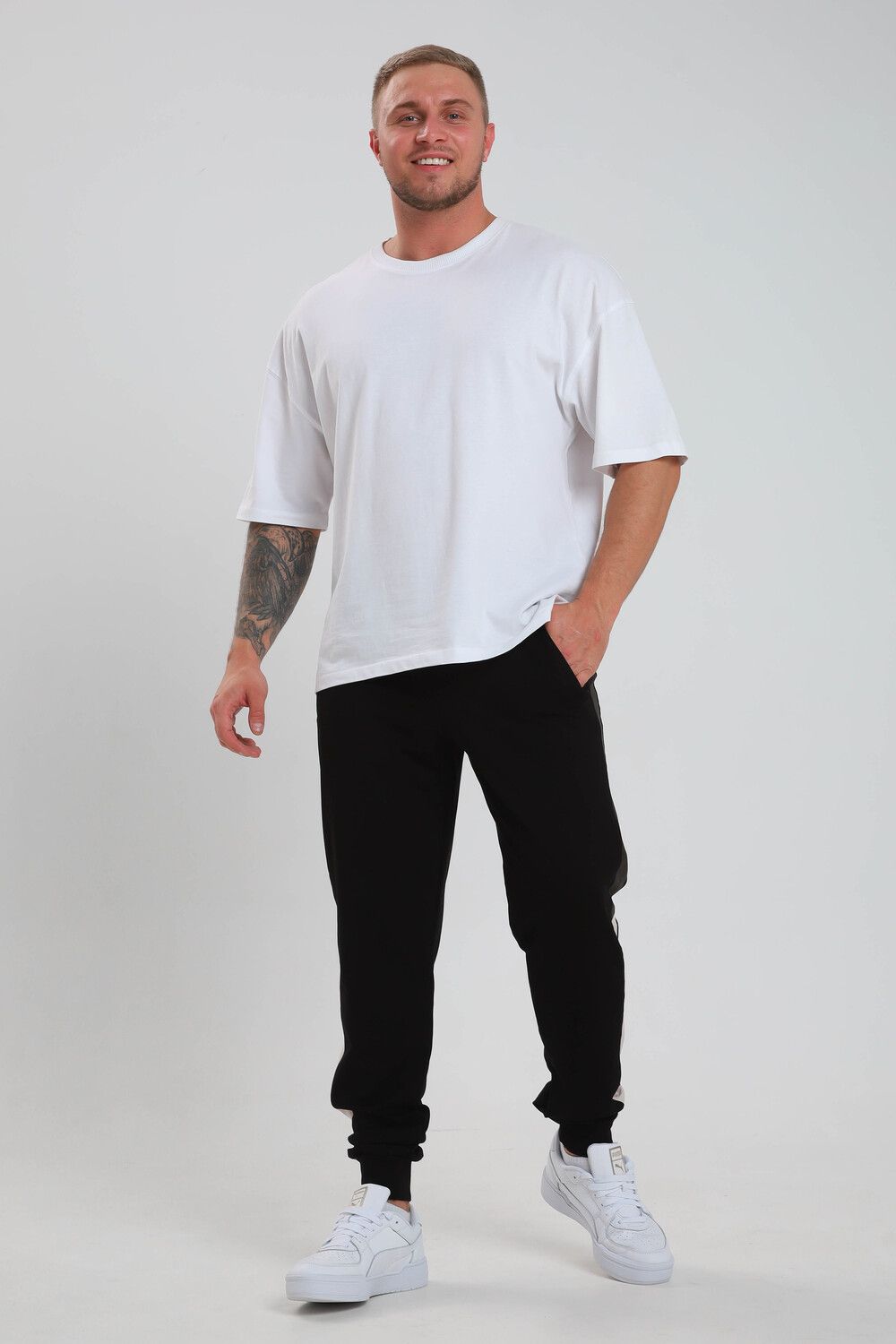 Спортивные стильные брюки с лампасами, высокого качества из турецкой ткани. Пояс на резинке, по бокам два кармана на молнии, низ на манжетах. Отлично подходят для домашней и спортивной носки, сохраняя форму и не скатываясь после многочисленных стирок.