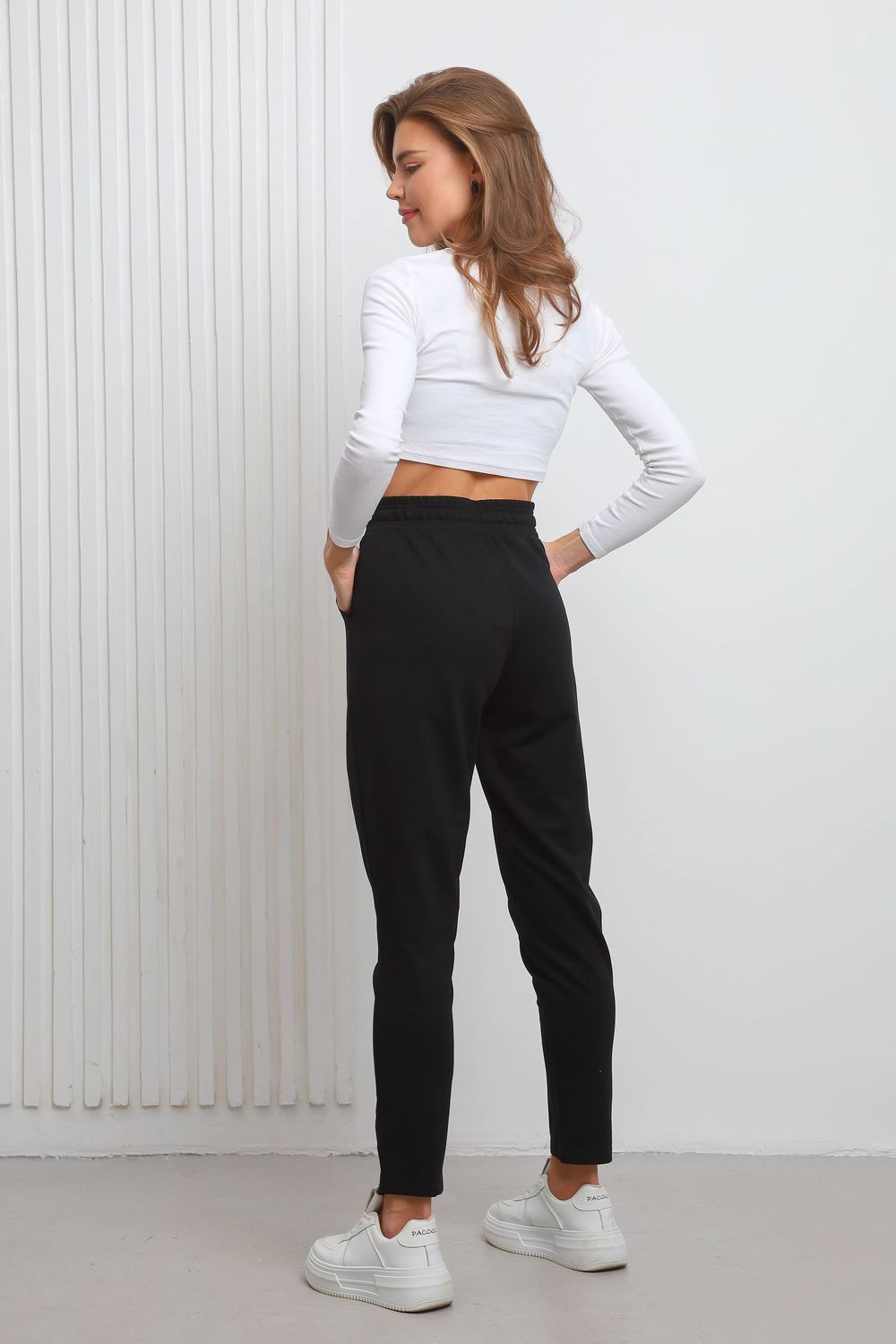 Спортивные женские брюки зауженные - идеальный выбор для активных девушек, которые ценят комфорт и стиль. Почувствуйте удобство и подчеркните свою индивидуальность с этой модной и функциональной моделью. Они выполнены из высококачественного турецкого материала. Брюки с высокой талией на резинке с внутренним шнурком, по бокам два кармана, также спереди декоративный шов. Штаны отлично подойдут для занятий спортом, прогулок или просто активного отдыха.