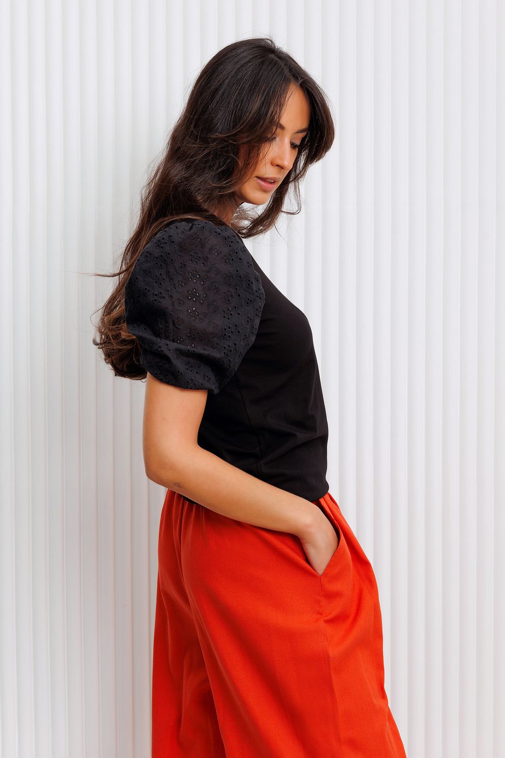 Женская футболка премиум качества из мягкого трикотажа свободного силуэта. Горловина округлая. Изюминкой эту модель делают объемные и рукава из перкали с шитьем, создавая кружевной эффект. Такая модель - отличная база для создания брендовых луков в стиле casual. Приобретите легкость, комфорт и свободу на каждый день, ведь эта вещь полюбится Вами с первого прикосновения. Рекомендуем сочетать с брюками и джинсами пастельной цветовой гаммы. Все товары бренда Raposa производятся в России (Иваново), используются только ткани премиального качества. Ограниченная коллекция только для этой весны!